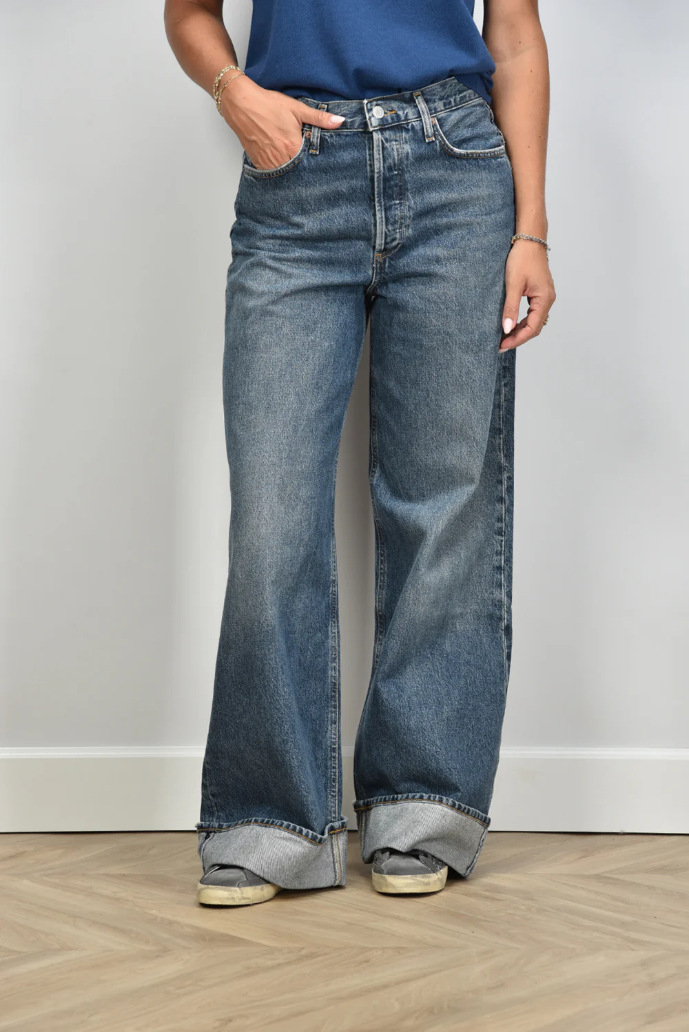 Zie hier de Agolde jeans Dame blauw, een tijdloos en veelzijdig item. Gemaakt van 100% katoen voor optimaal comfort en duurzaamheid. Dit product heeft een normale pasvorm. Lise draagt maat 38/M/28 bij een lengte van 1,73m. Koud wassen aanbevolen om de kwaliteit te behouden. Artikelnummer: A9159-1206-CONT-Control.