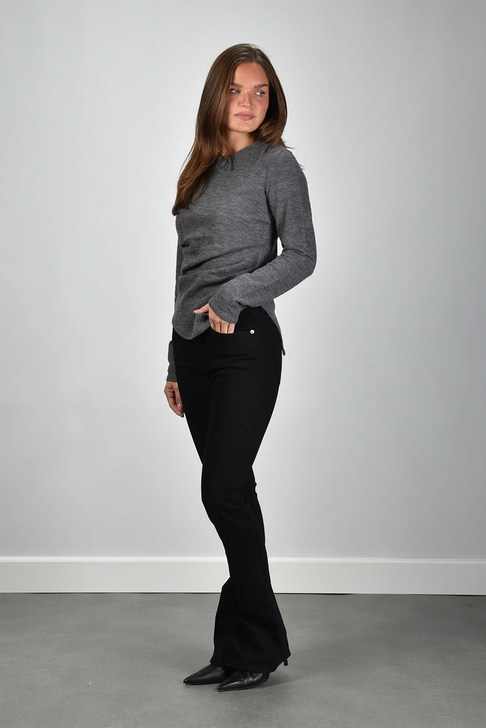 De jeans Ingram immersion van Agolde heeft die stoere, donkere denimkleur waar alles mee begint. De diepe zwarte tint oogt strak en stevig, terwijl de flared pijpen vanaf de knie een moderne twist geven aan het klassieke silhouet. De lengte valt royaal over de schoen, wat die nonchalante elegantie extra versterkt. Dankzij de mix van katoen met een beetje elastane voelt de jeans soepel en stevig tegelijk. De pasvorm valt normaal op maat en sluit mooi aan rond de heupen en bovenbenen. Combineer hem met de Jerome Dreyfuss handtas Lucky Bowling Mini voor een sterke, actuele set.