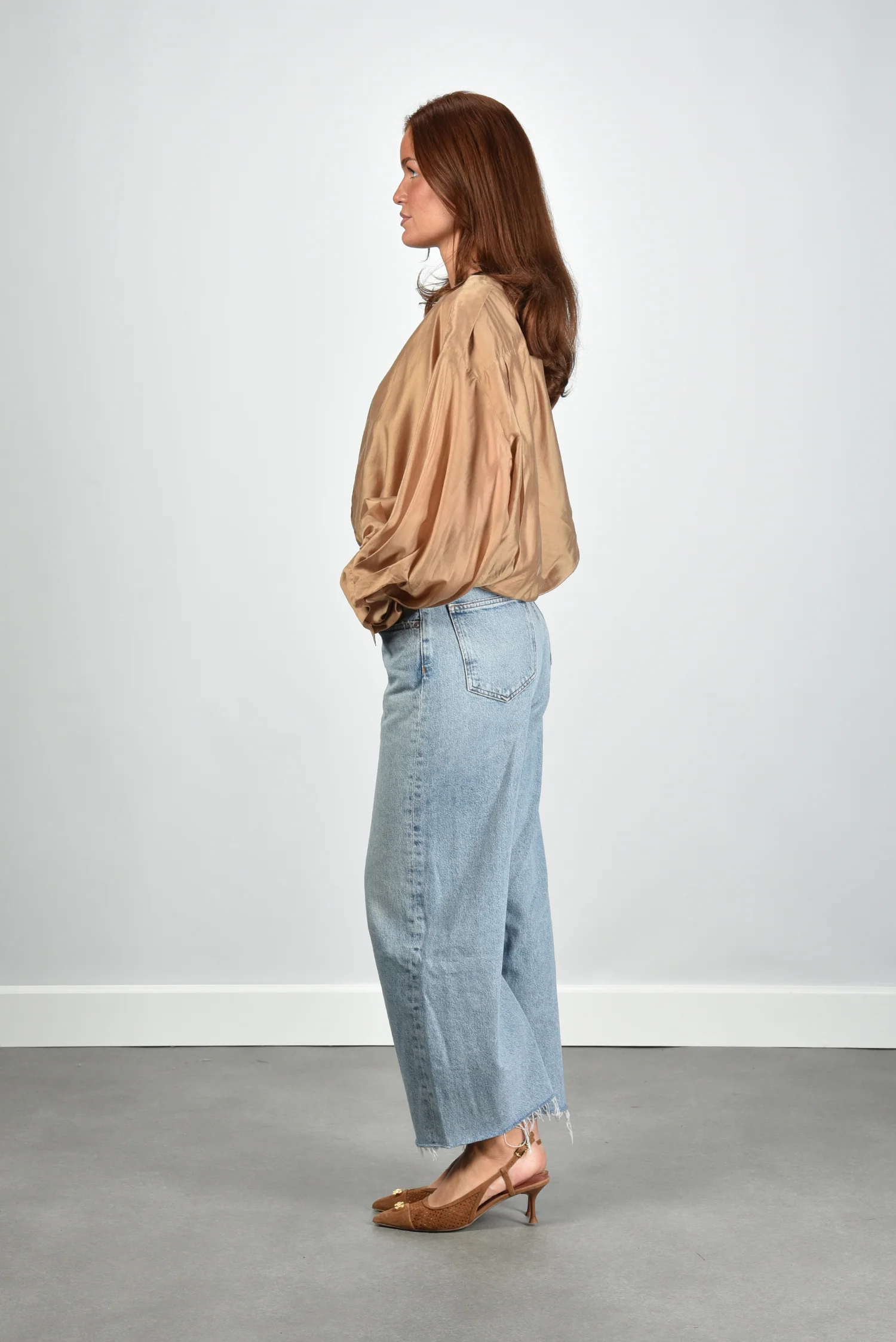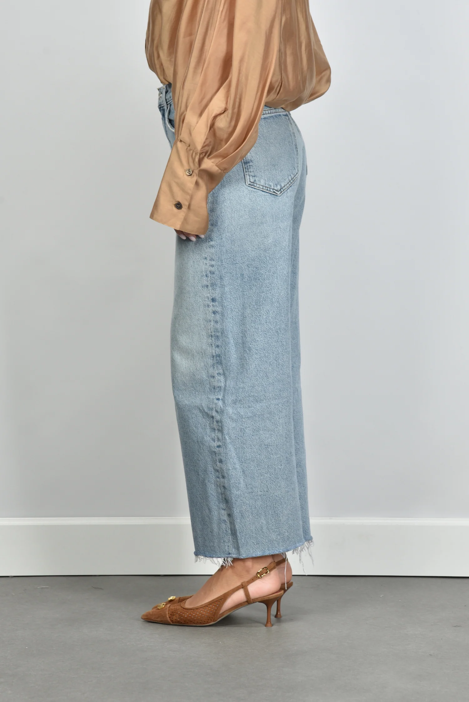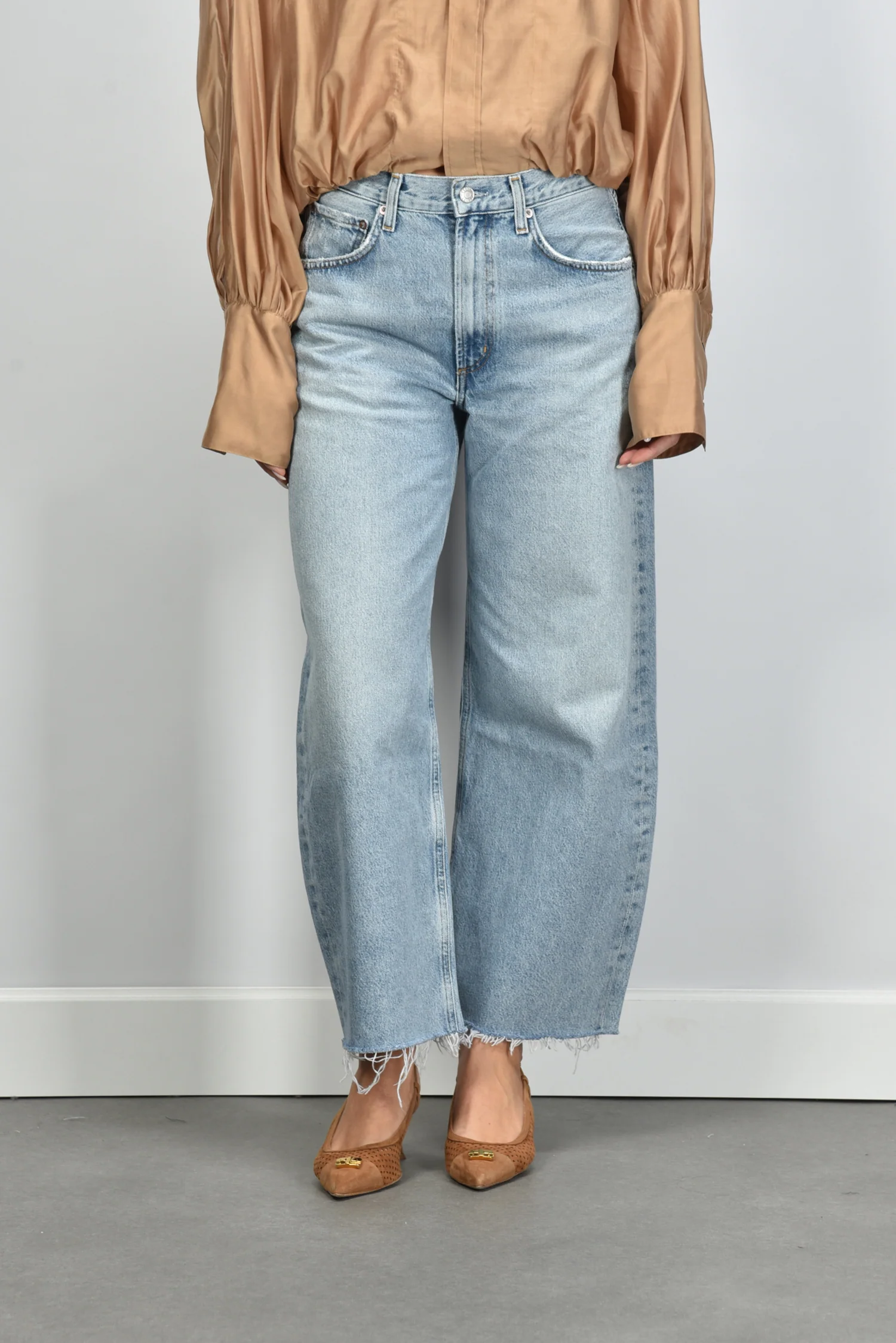 De jeans Low Curve Fray van Agolde heeft een ontspannen lengte die goed past bij een casual stijl. De lichte wassing valt egaal over het duurzame katoenen denim en benadrukt het stoere karakter. De broekspijpen vallen recht en iets wijder, met onderaan een onafgewerkte zoom die een rauw effect geeft. De ritssluiting draagt bij aan de klassieke uitstraling, terwijl de cropped lengte mooi uitkomt op sneakers of hakken. Deze jeans valt normaal op maat, dus je kunt uitgaan van je eigen maat. Combineer hem voor een rustige balans met de The Latest blouse Diana in nude.