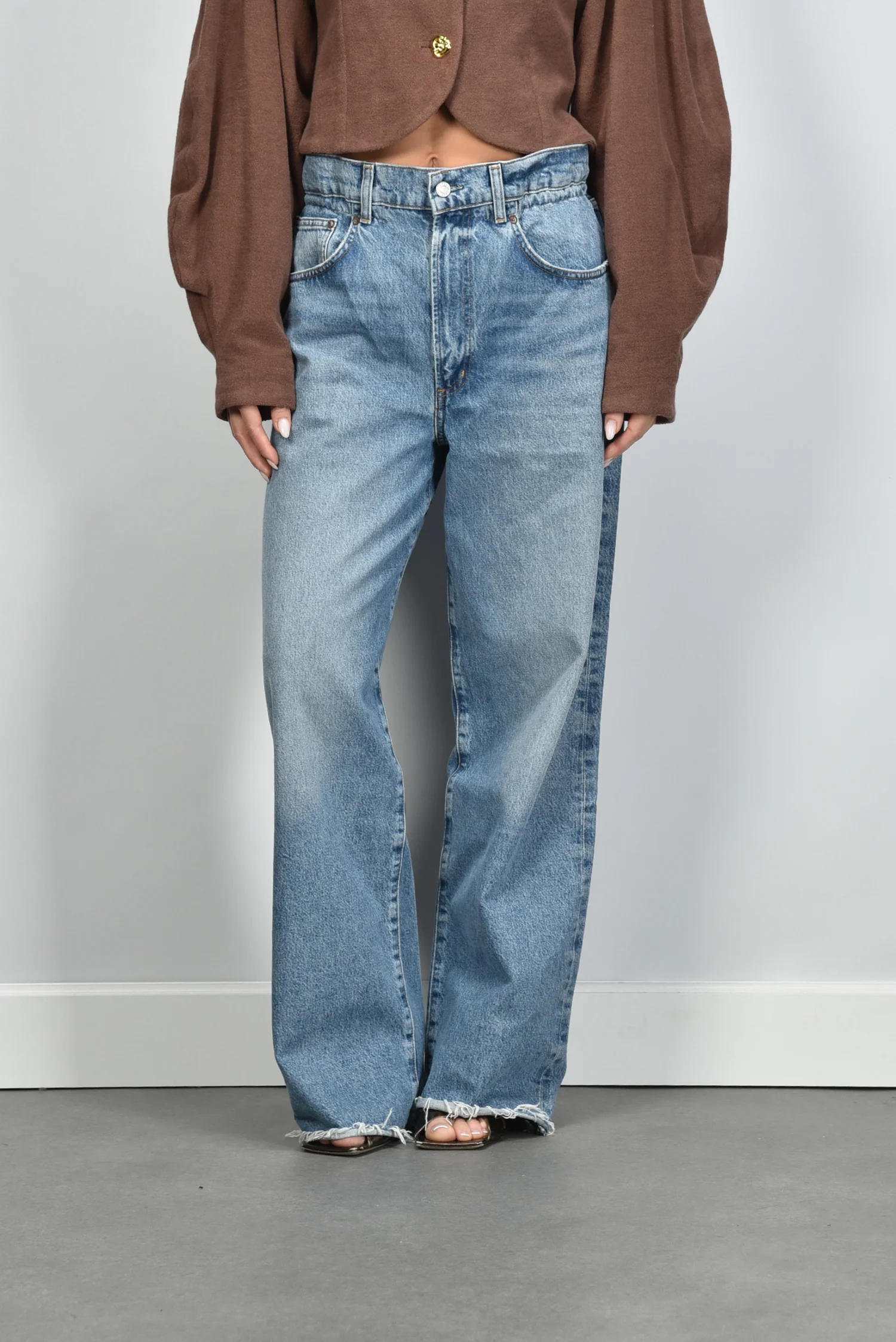 De jeans Lyonne outbreak van Agolde is een model dat meteen opvalt door zijn rechte pijp en stoere, onafgewerkte zoom. De lichte vervaging op de bovenbenen en knieƫn geeft de denim een informele uitstraling die goed past bij het merk. De fit is recht en valt normaal op maat, met een elastische taille die prettig aansluit. Gemaakt van 78% katoen en 11% lyocell voelt de stof zacht en stevig tegelijk. Combineer de Jeans Lyonne outbreak met het Sage & Ivy jack Lena in badstof chocolate voor een sterke, alledaagse set. Agolde komt uit Los Angeles en staat bekend om denim met karakter en een zorgvuldige afwerking, wat duidelijk terugkomt in deze straight jeans.