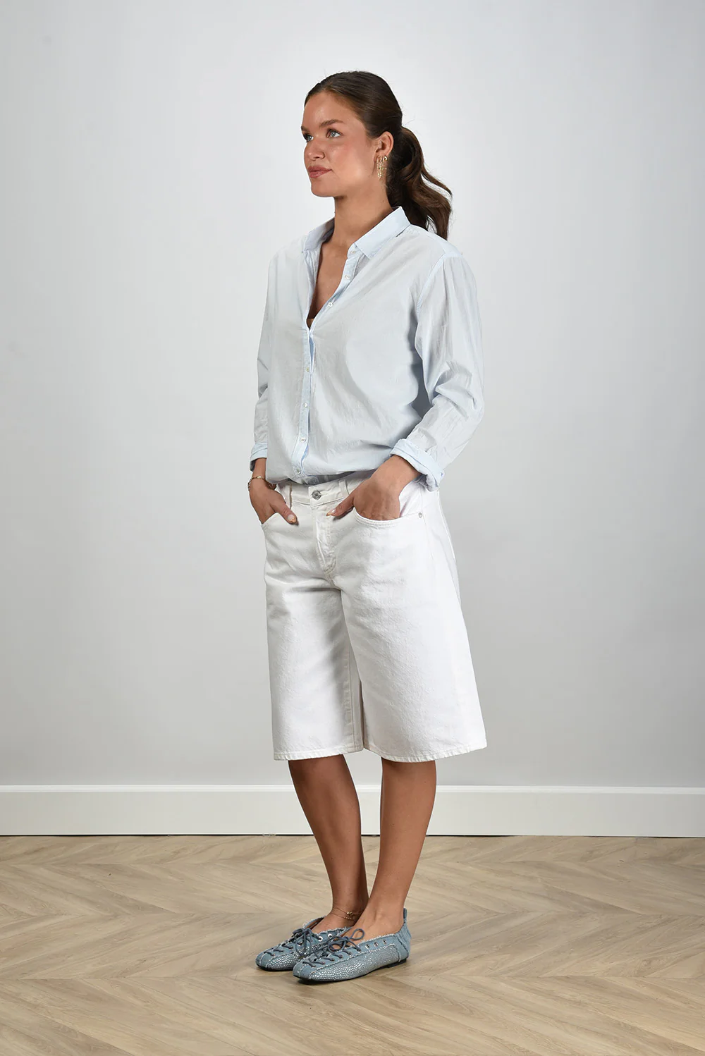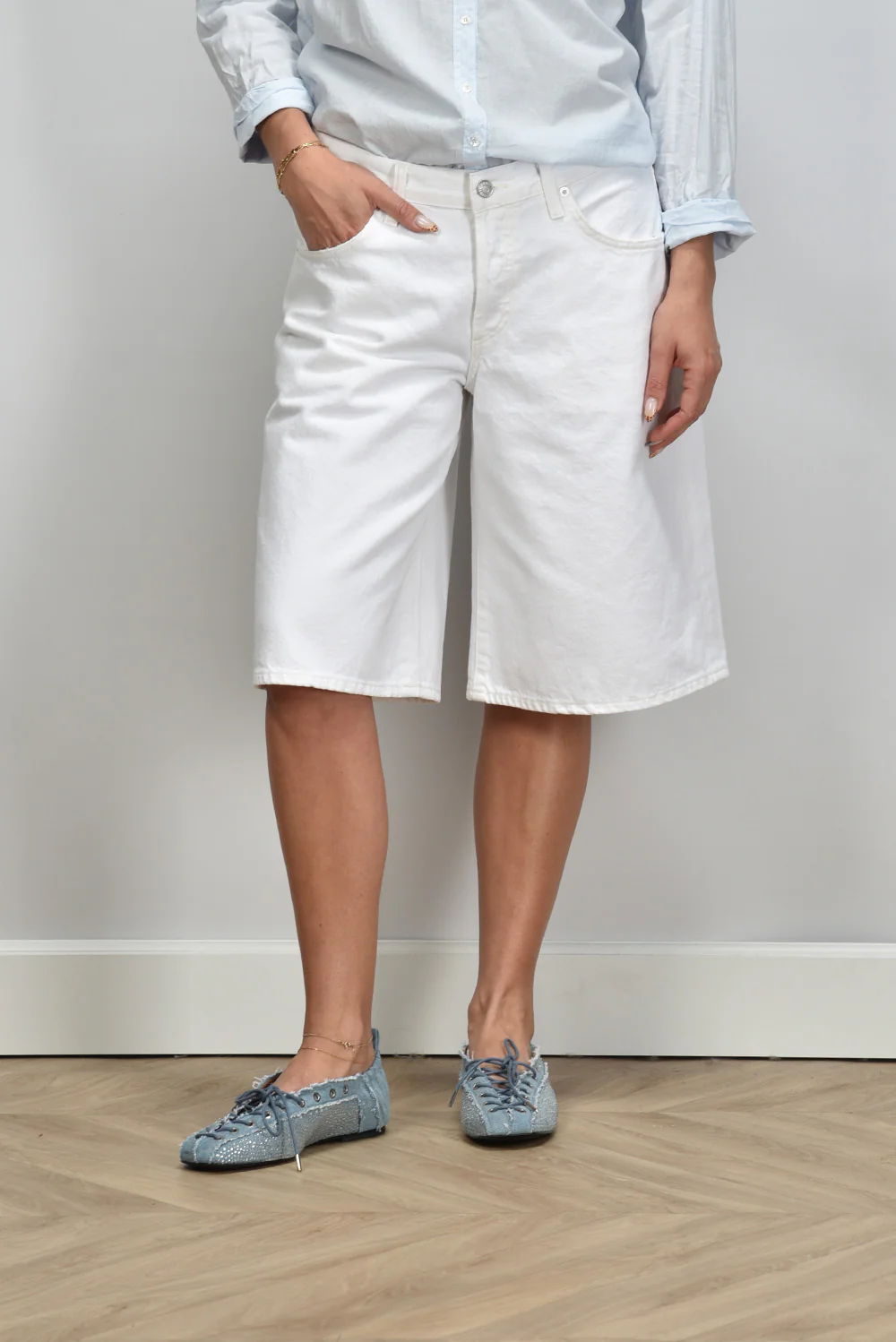 De Baggy V short milkshake van Agolde heeft een ontspannen silhouet en een frisse witte tint. De short valt los tot net boven de knie en heeft die lichte vorm die fijn is op warme dagen. Gemaakt van 100 procent katoen voelt de stof stevig maar soepel aan. Een short met karakter, zoals je van het denimlabel uit Los Angeles mag verwachten. Combineer de Baggy V short milkshake bijvoorbeeld met de Xirena blouse Beau X5CTP111 skylight voor een licht en zomers geheel. De short valt normaal; bestel gerust je eigen maat.