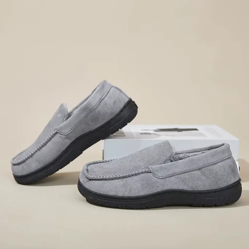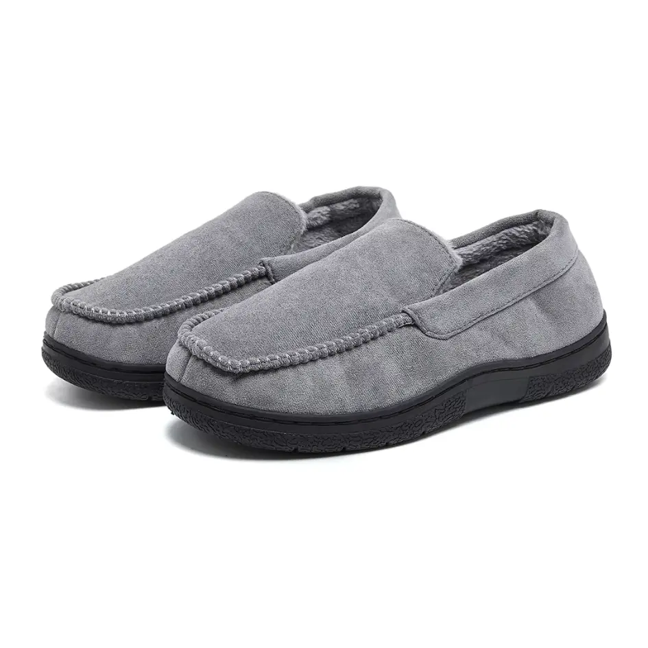 Deze heren pantoffels combineren een zachte voering met een suède-look bovenwerk, waardoor ze aangenaam dragen en toch stijlvol ogen. Het gesloten model zorgt dat de voeten goed omsloten blijven en extra warmte vasthouden.