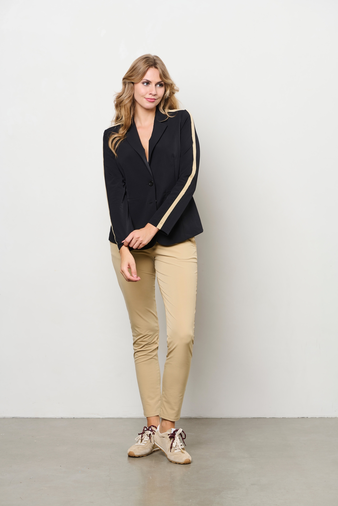De diepe zwarte kleur en het sportieve biesdetail langs de mouwen geven de blazer een moderne en trendy uitstraling. De klassieke reverskraag en knoopsluiting zorgen voor een tijdloze afwerking. Combineer de &Co Woman Pammy Travel Blazer eenvoudig met een bijpassende travelstof broek of een jeans voor een complete en stijlvolle outfit. Perfect voor werk, een afspraak of een elegante casual look.