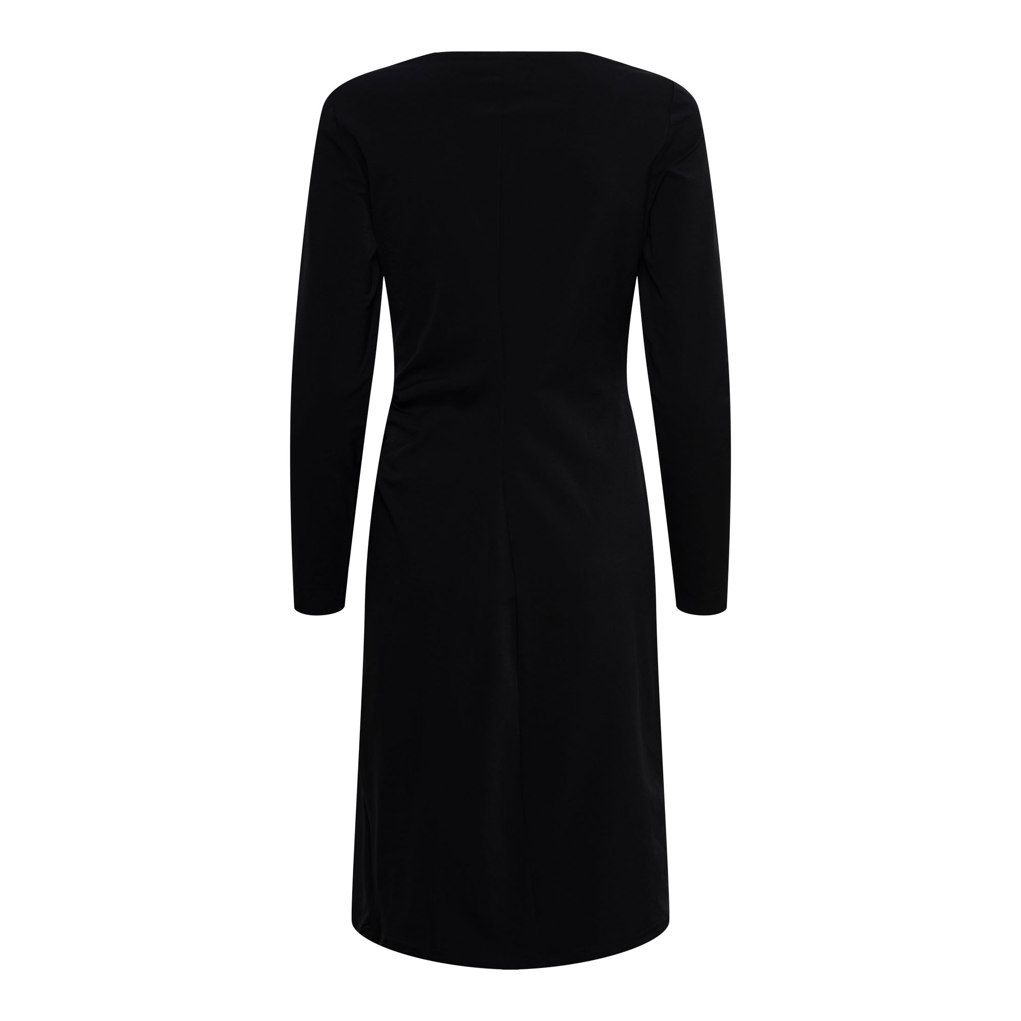 De subtiele plooidetail aan de zijkant geeft de jurk een flatterend silhouet en zorgt voor een stijlvolle en moderne uitstraling. De tijdloze zwarte kleur maakt deze jurk veelzijdig en geschikt voor verschillende gelegenheden. Combineer de &Co Woman Pia Travel met een blazer of elegante accessoires voor een complete en verzorgde look.