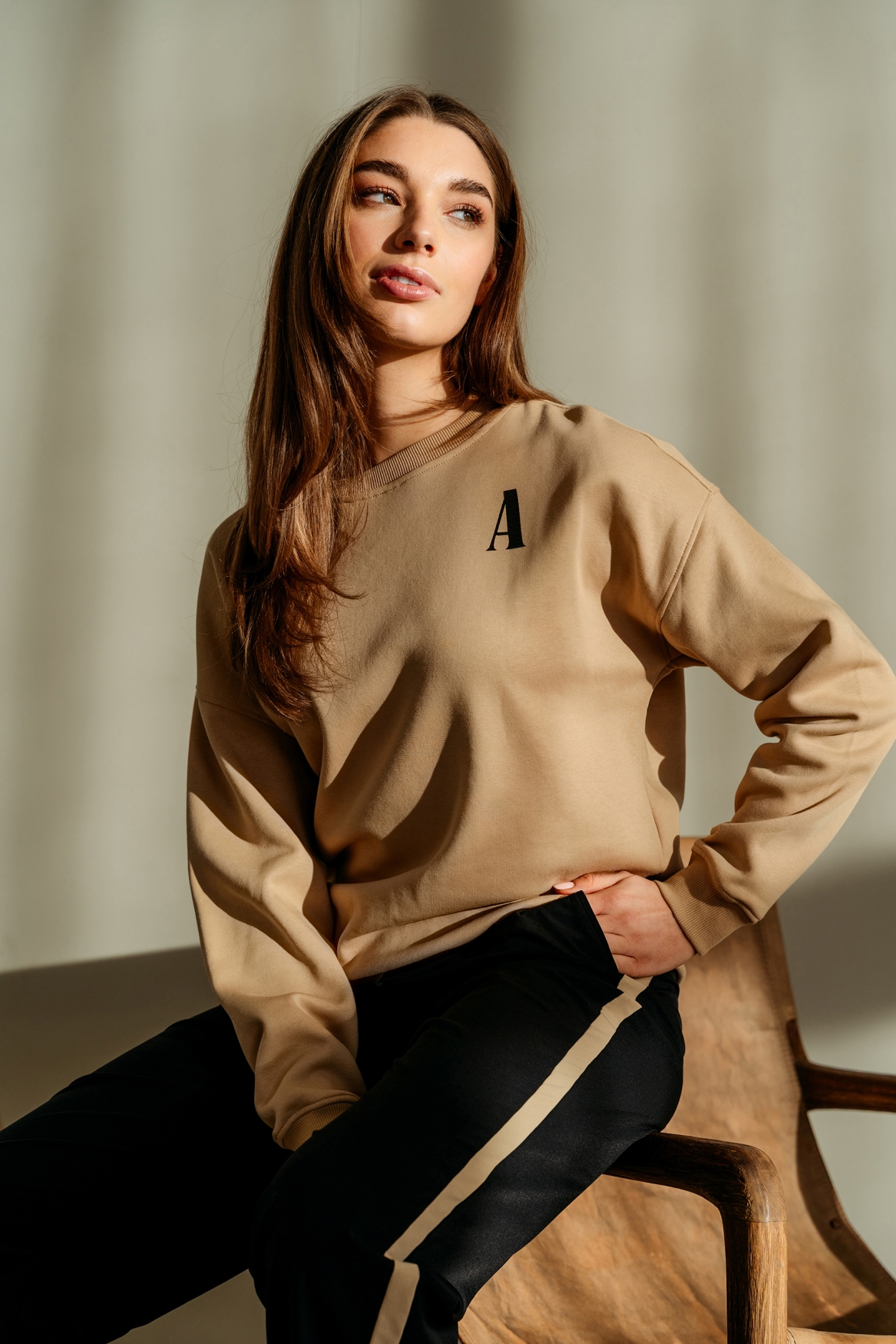 - Details: Subtiel letterdetail op de borst