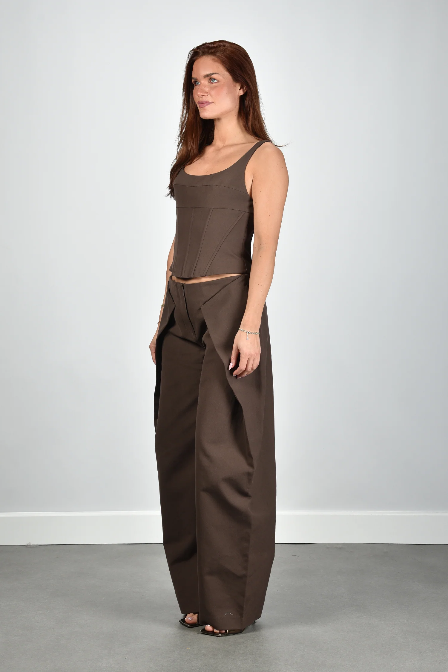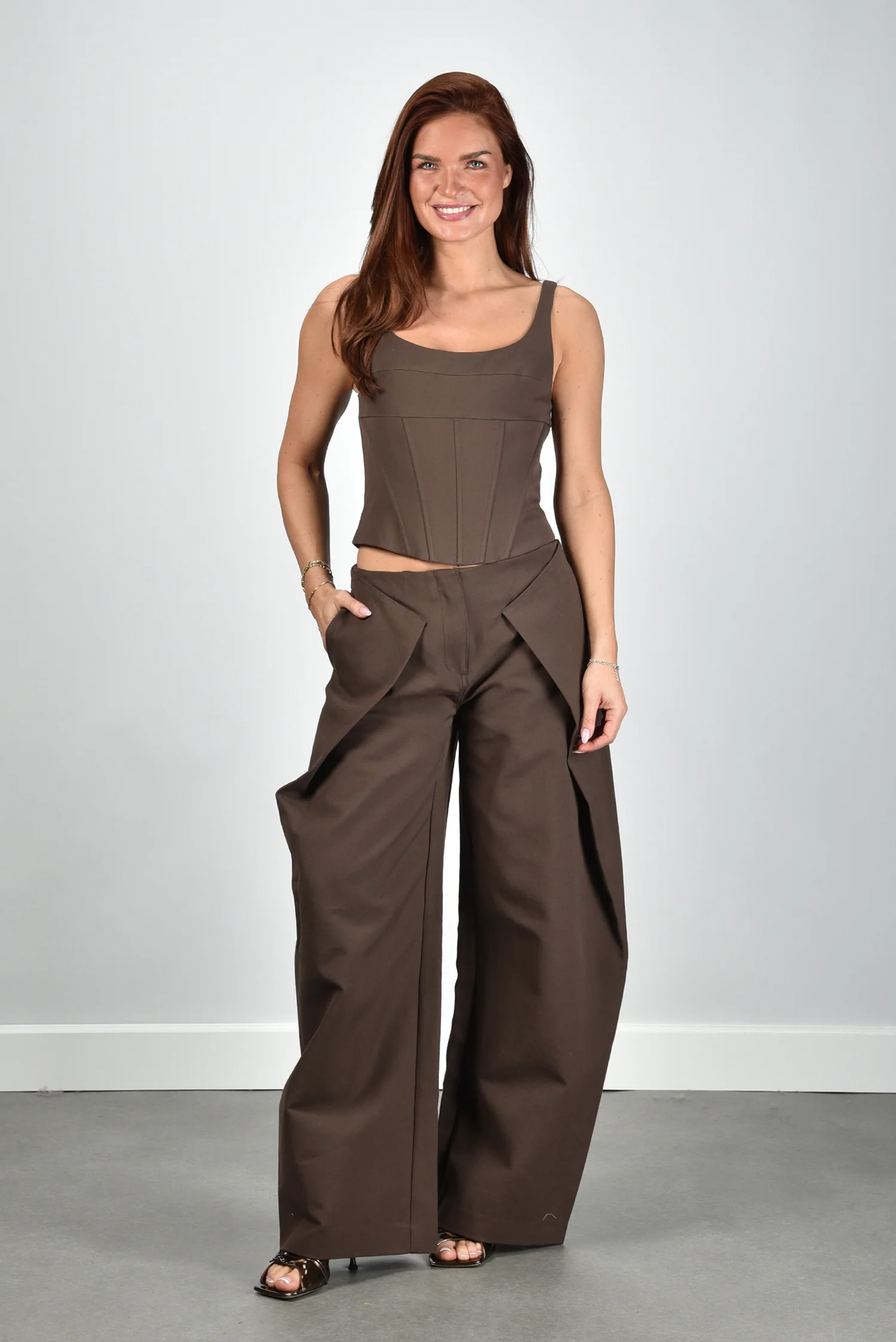De cropped top Olive van Cult Gaia heeft een strakke, vrouwelijke lijn. De bruine tint, door het merk luwak genoemd, geeft diepte aan deze zomerse basic. De verticale naden accentueren de pasvorm subtiel, terwijl de lage ronde hals en dunne bandjes zorgen voor een luchtig silhouet. De ritssluiting achter maakt het geheel netjes afgewerkt. Gemaakt van zacht katoen met een beetje polyamide voor structuur en comfort. Mooi te dragen op de bijpassende Cult Gaia broek Arden in dezelfde kleur. Deze top valt normaal op maat, dus je kunt je gebruikelijke maat nemen.