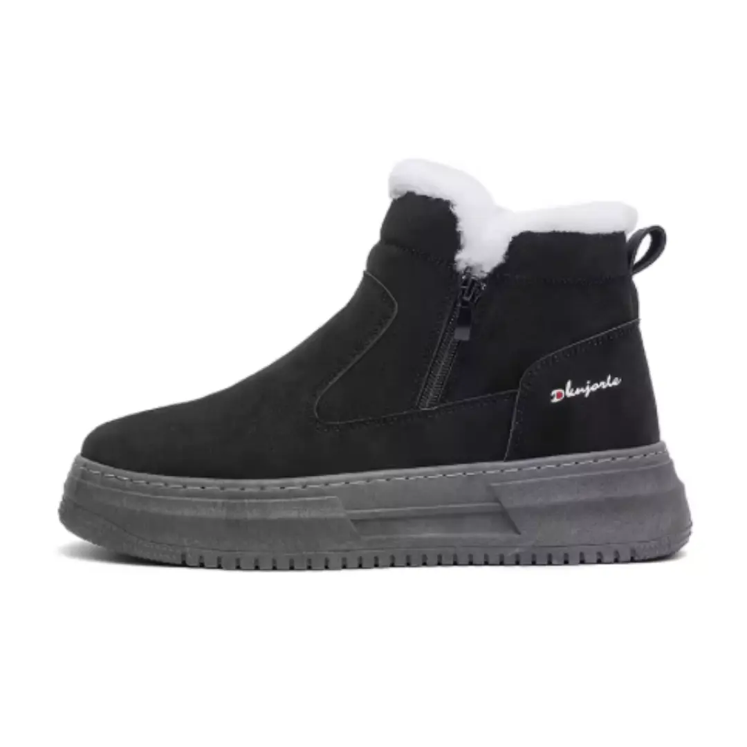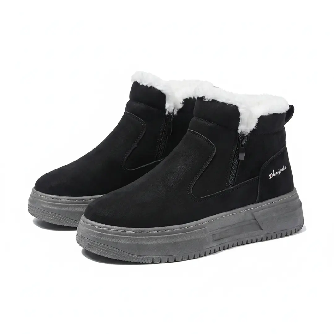 Deze warme winterboots geven je voeten direct comfort dankzij de zachte pluche voering die prettig aanvoelt bij het aantrekken. Het kunstleren bovenwerk voelt stevig aan en biedt een fijne, ondersteunende pasvorm voor dagelijks gebruik in de koude maanden.