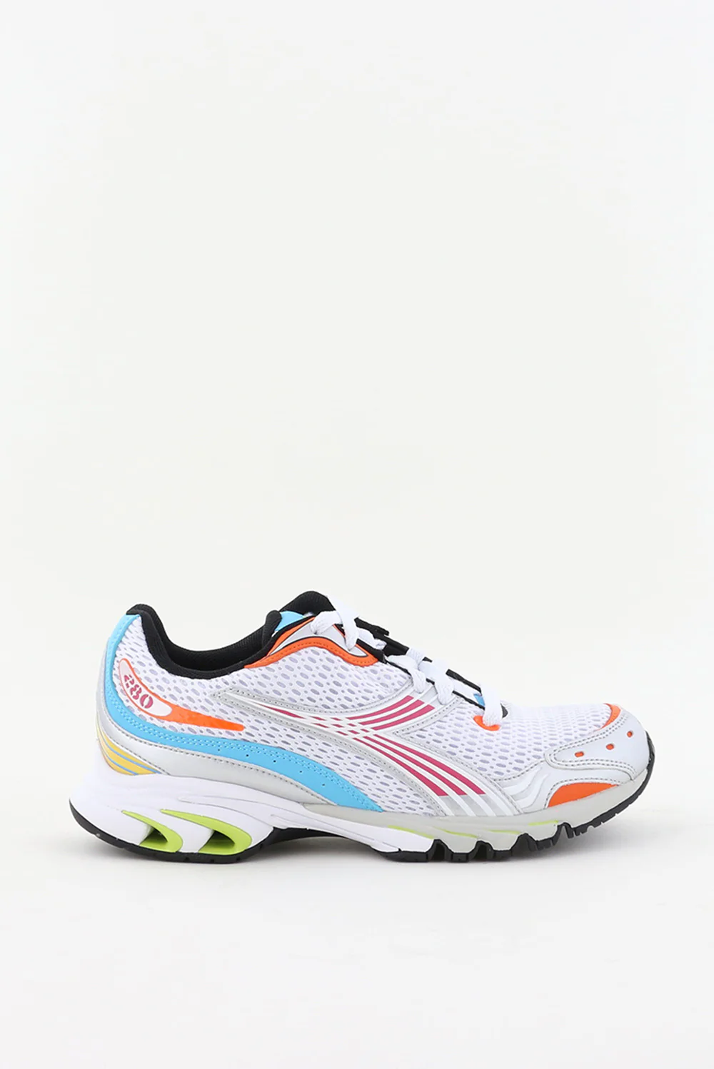 Sportieve sneakers van Diadora Heritage, model Mythos Propulsion in de kleur white/ cabaret/ daiquiry green. De sneakers zijn voorzien van een sportieve, comfortabele zool met een hakhoogte van 3 cm. Tot slot hebben ze een uitneembaar voetbed. Draag deze toffe sneakers onder je favoriete jeans. Let op, deze sneakers vallen 1 maat kleiner.