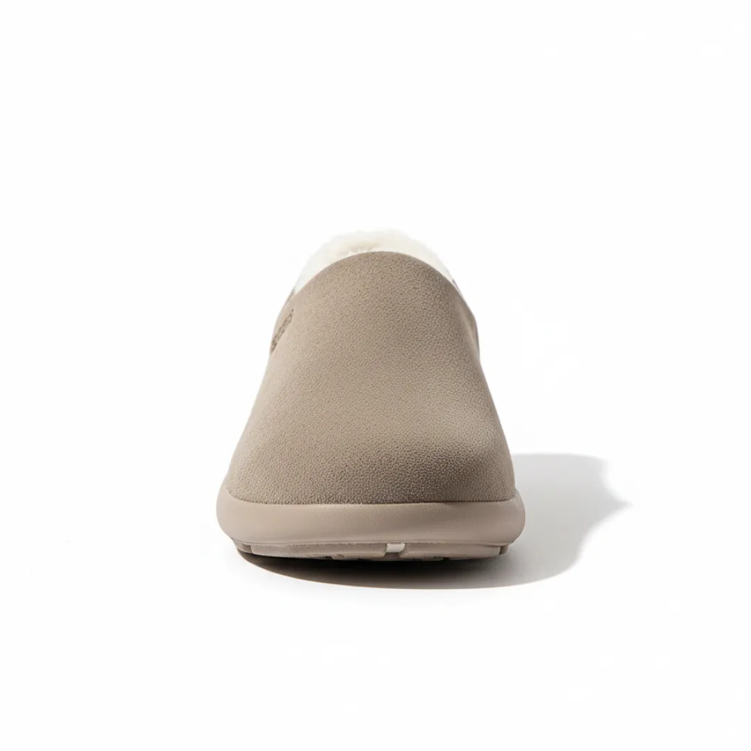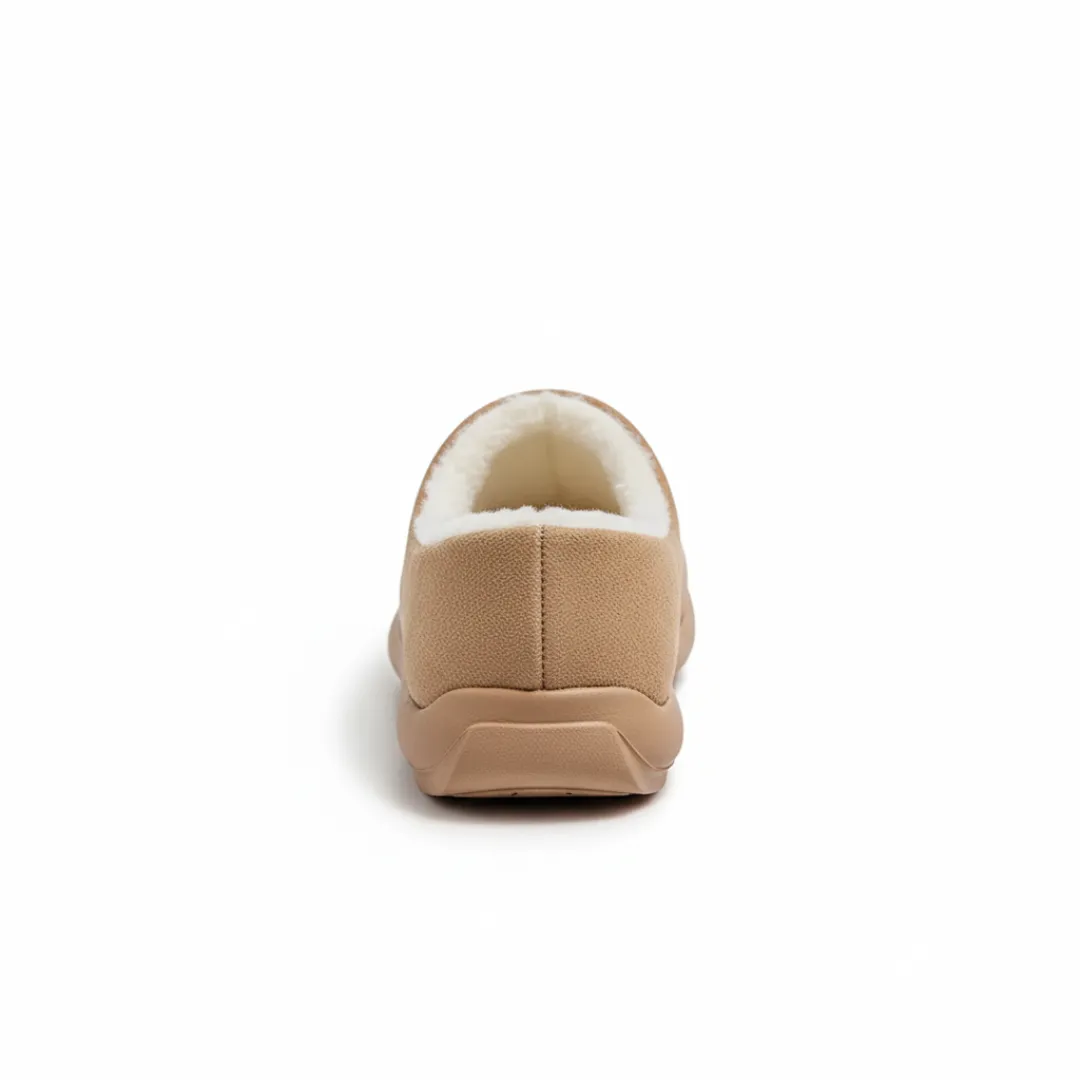 De stevige antislipzool biedt betrouwbare grip op gladde vloeren, waardoor je met zekerheid kunt bewegen in huis. De buitenkant van vegan leer geeft deze sloffen een moderne en verzorgde uitstraling, perfect voor wie comfort én stijl belangrijk vindt.