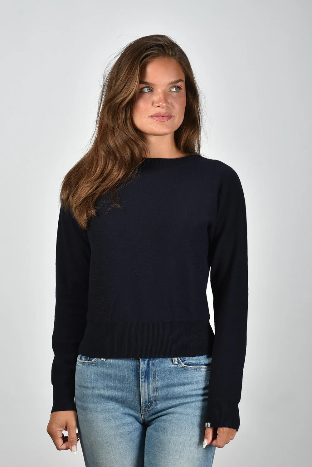 De trui Belle van Extreme Cashmere is een mooie cropped variant in een diepe navy tint. De hoge, ronde halslijn en de brede aansluitende boord geven dit model een heldere, moderne vorm. Gemaakt van een rijke mix met 88% cashmere voelt de trui soepel en zacht aan, terwijl de toevoeging van nylon en spandex zorgt dat hij goed in model blijft. Door het one size ontwerp valt hij bij iedereen net anders, wat het karakter van het merk goed laat zien. Combineer de Belle eenvoudig met de Mother jeans Weekender Fray voor een ontspannen maar verzorgde look.