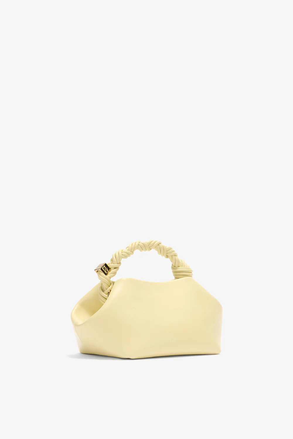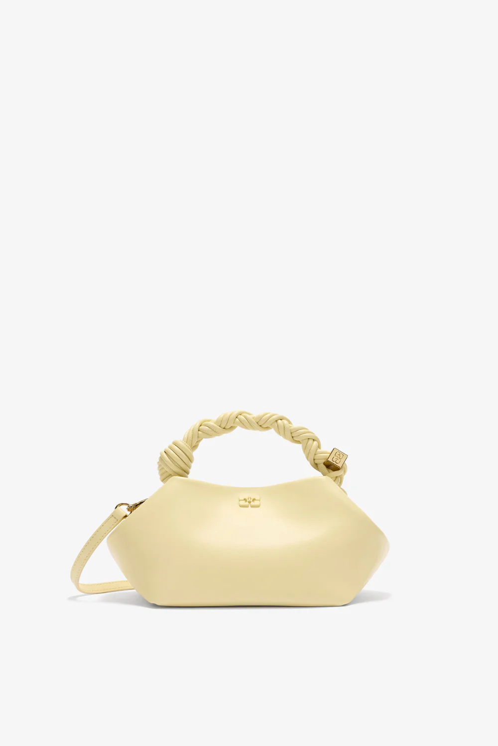 De Bou Small yellow cream van Ganni is een compacte crossbody met een frisse, zachte kleur die direct opvalt. Het getwiste handvat geeft het tasje een speels silhouet, terwijl het metallic logo subtiel aanwezig blijft. De extra schouderband maakt het praktisch en veelzijdig in gebruik. Gemaakt van deels gerecycled leer, voelt het stevig en soepel tegelijk. Deze Bou Small yellow cream laat goed zien waar Ganni om bekendstaat: een moderne blik op Scandinavische stijl met speelse details. Combineer hem met de Bou Bag Small A6494 leopard voor een verrassend duo contrast.