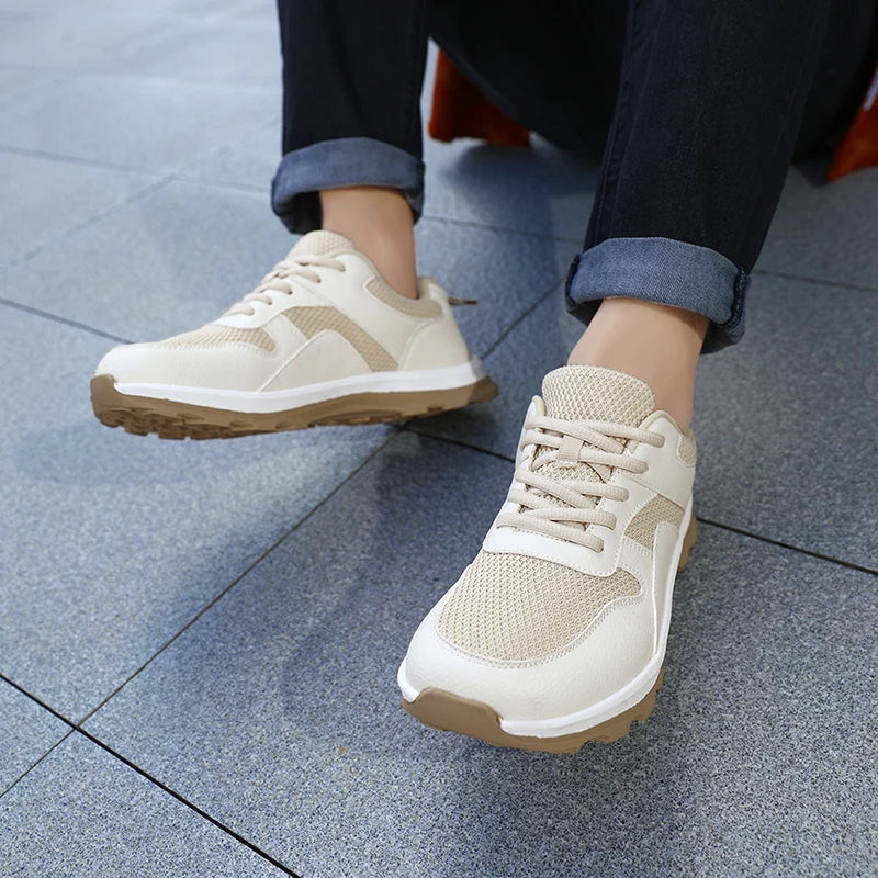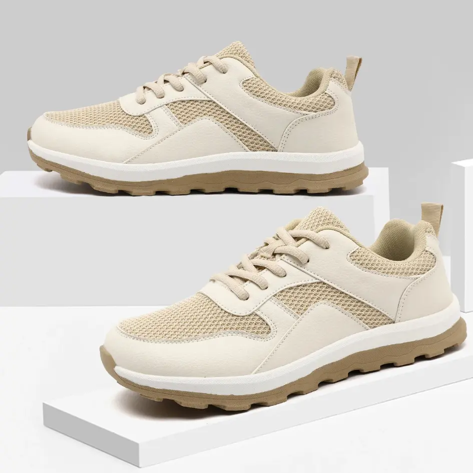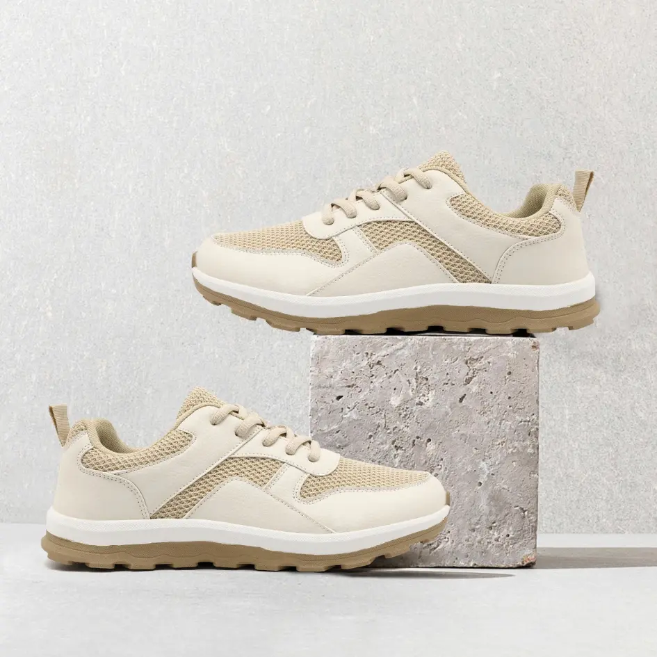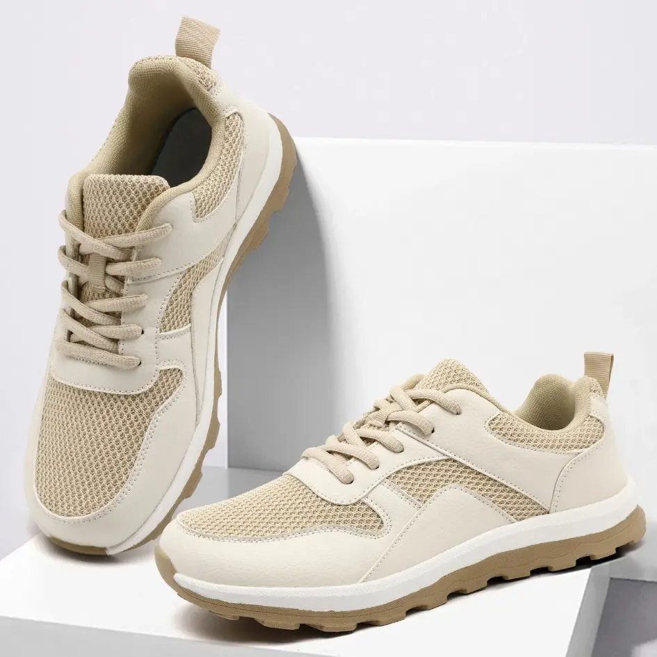 Deze heren sneakers combineren luchtig mesh met soepel kunstleer, waardoor de schoenen een ademend en stevig karakter krijgen. Dankzij de lichte EVA-zool voelt elke stap natuurlijk aan en wordt onnodige belasting voorkomen. De sneaker is ontworpen om de voet op een comfortabele manier te ondersteunen, zonder in te leveren op stijl.