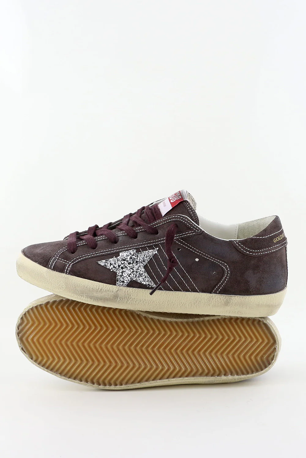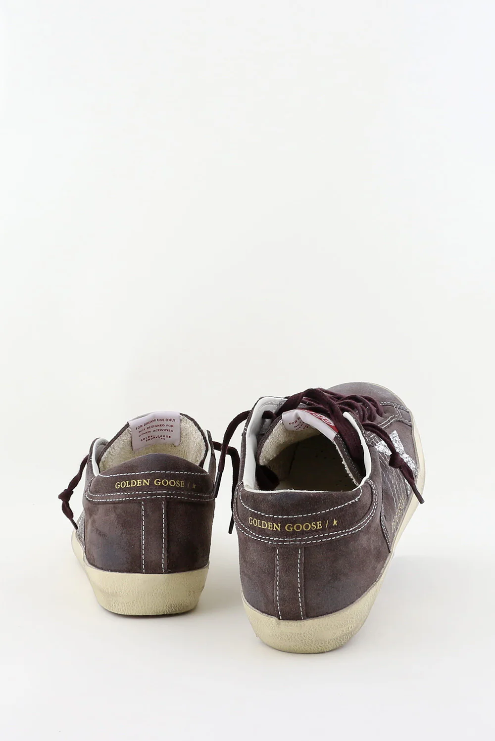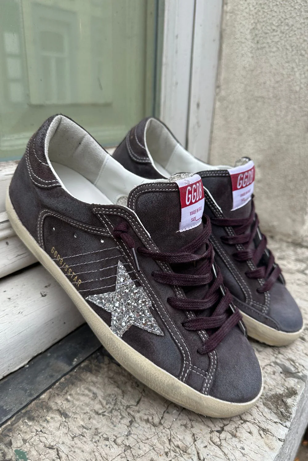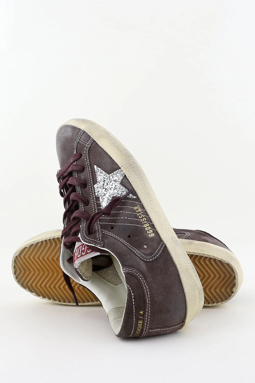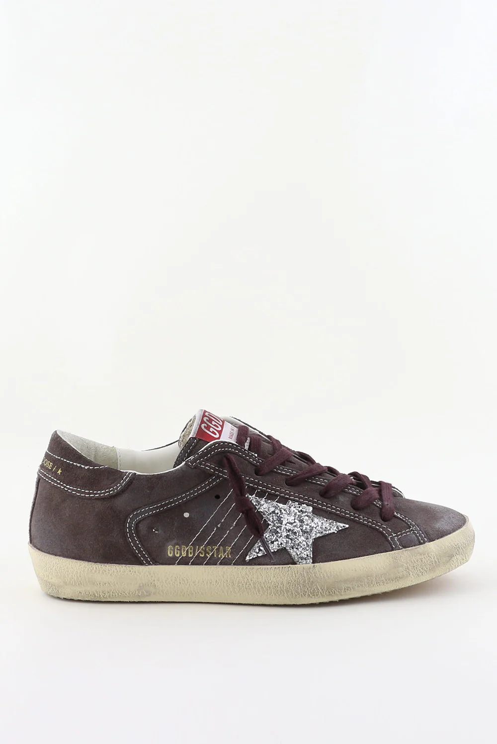De sneakers Superstar van Golden Goose trekken direct de aandacht door de zilverkleurige ster aan de zijkant. De grijstonen in suĆØde geven de schoen de kenmerkende, gedragen look waar het merk om bekendstaat. De donkerpaarse veters zorgen voor een stoer contrast, terwijl het rood-witte label met GGDB subtiel verwijst naar de Italiaanse roots. De zool is robuust en past bij de nonchalante stijl van het ontwerp. Deze sneakers vallen normaal op maat, dus je kunt jouw eigen maat bestellen. Combineer ze met de Golden Goose sneakers Superstar in optic white voor een frisse aanvulling op je collectie.