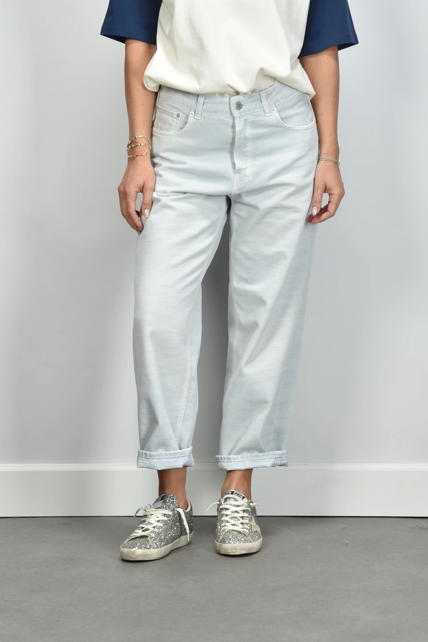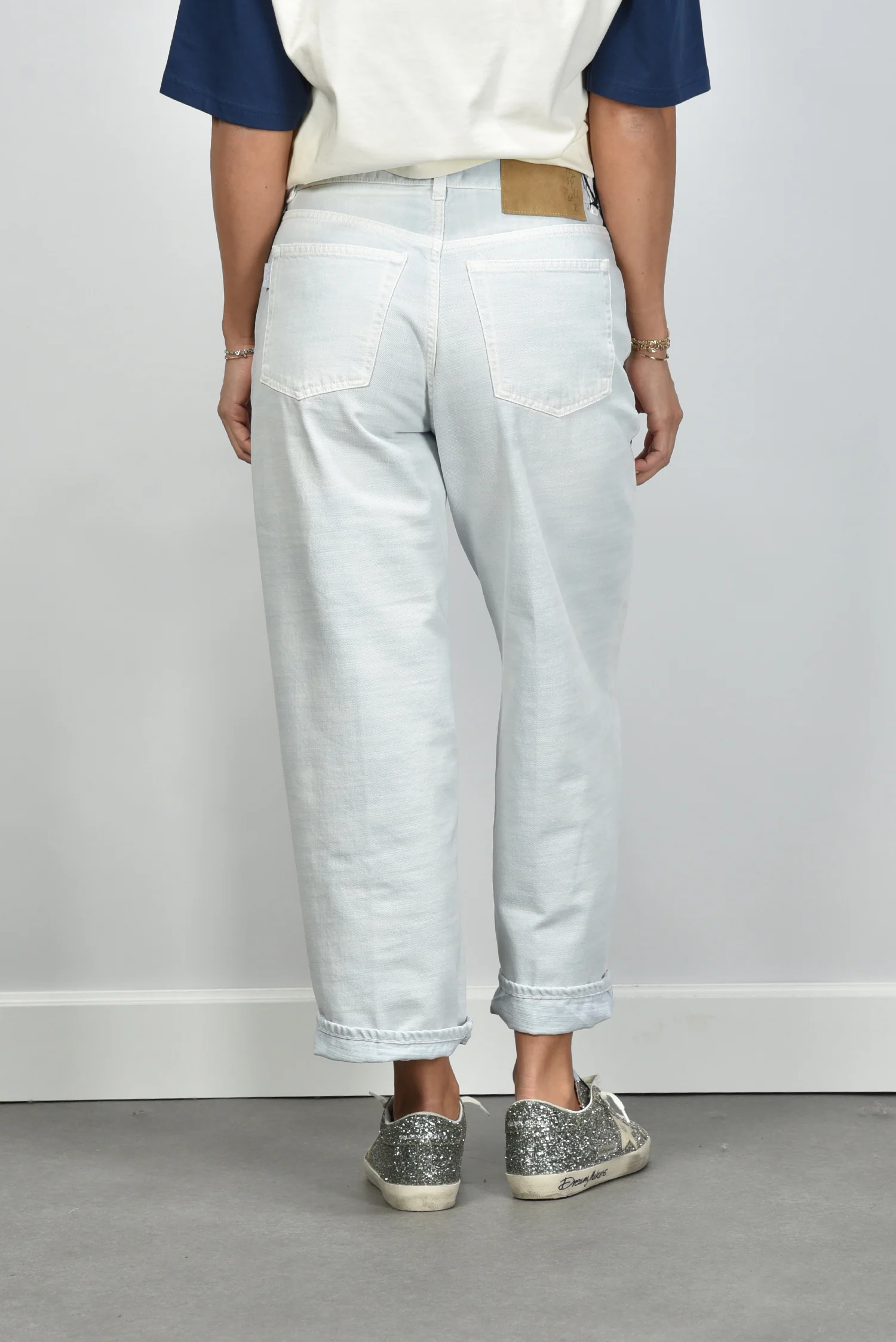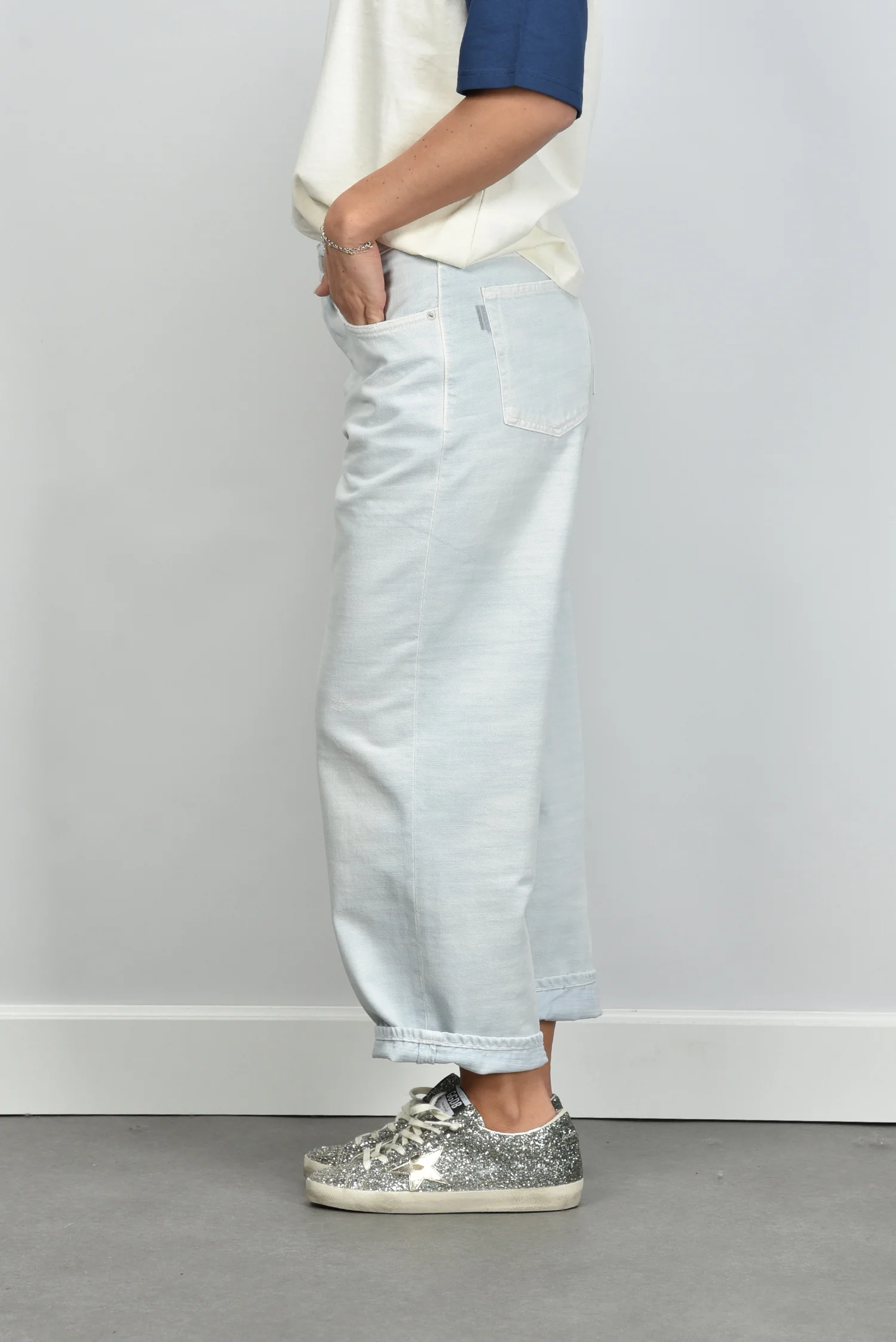 De jeans Betty Bull plein air van Haikure heeft een luchtige, rechte pasvorm met omgeslagen pijpen tot net boven de enkel. De lichte wassing geeft de denim een frisse toon die mooi aansluit bij het heldere katoen. Deze cropped jeans is gemaakt van 100% katoen, wat zorgt voor een stevige maar zachte stof die mooi in vorm blijft. Haikure staat bekend om zijn Italiaanse vakmanschap en duurzame productie, wat in deze jeans goed te zien is in de afwerking en snit. Combineer de Betty Bull met het Ami Paris t shirt UTS379.726 blanc creme/encre voor een ontspannen, elegante look. De broek valt normaal op maat, dus je kunt gerust je eigen maat bestellen.
