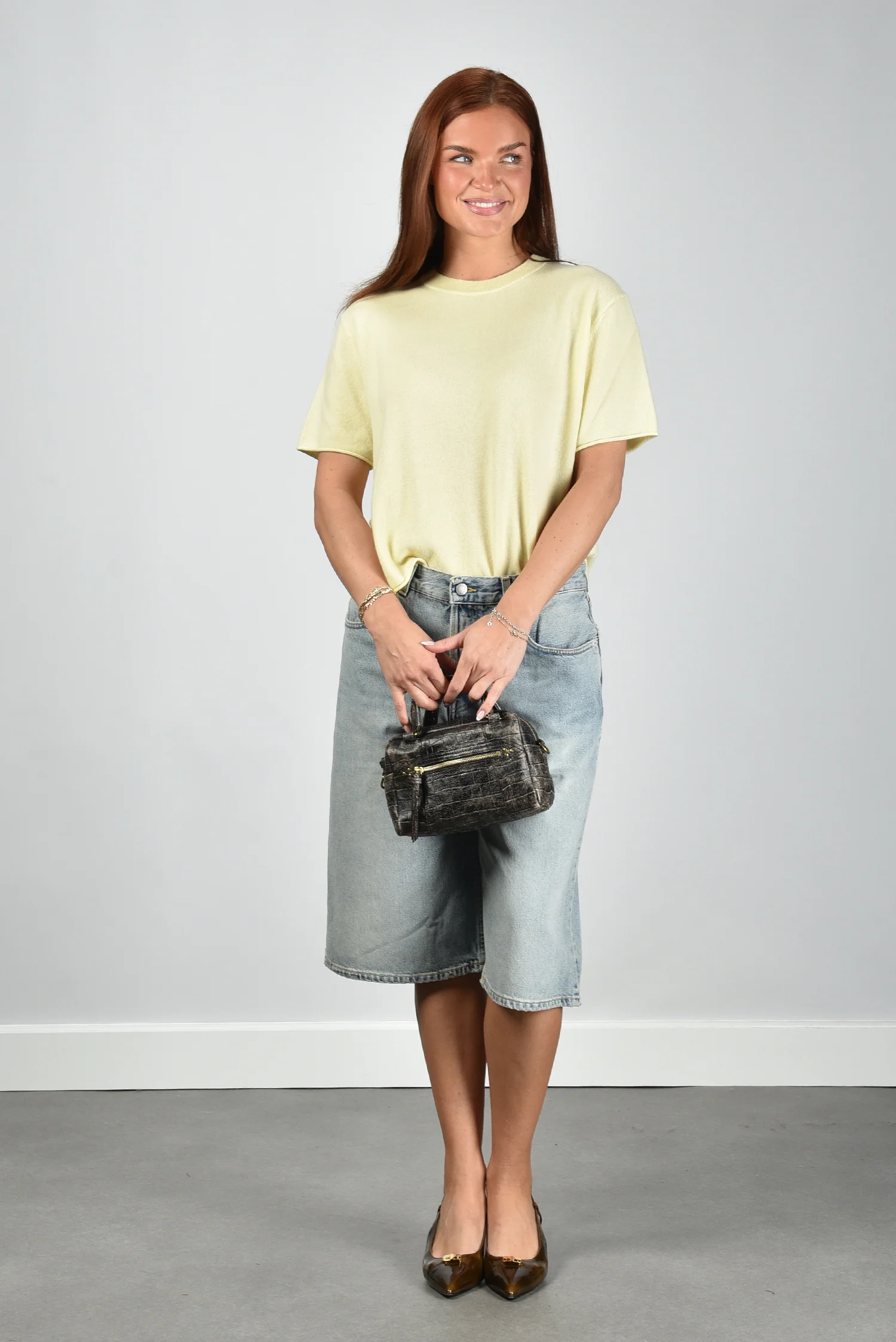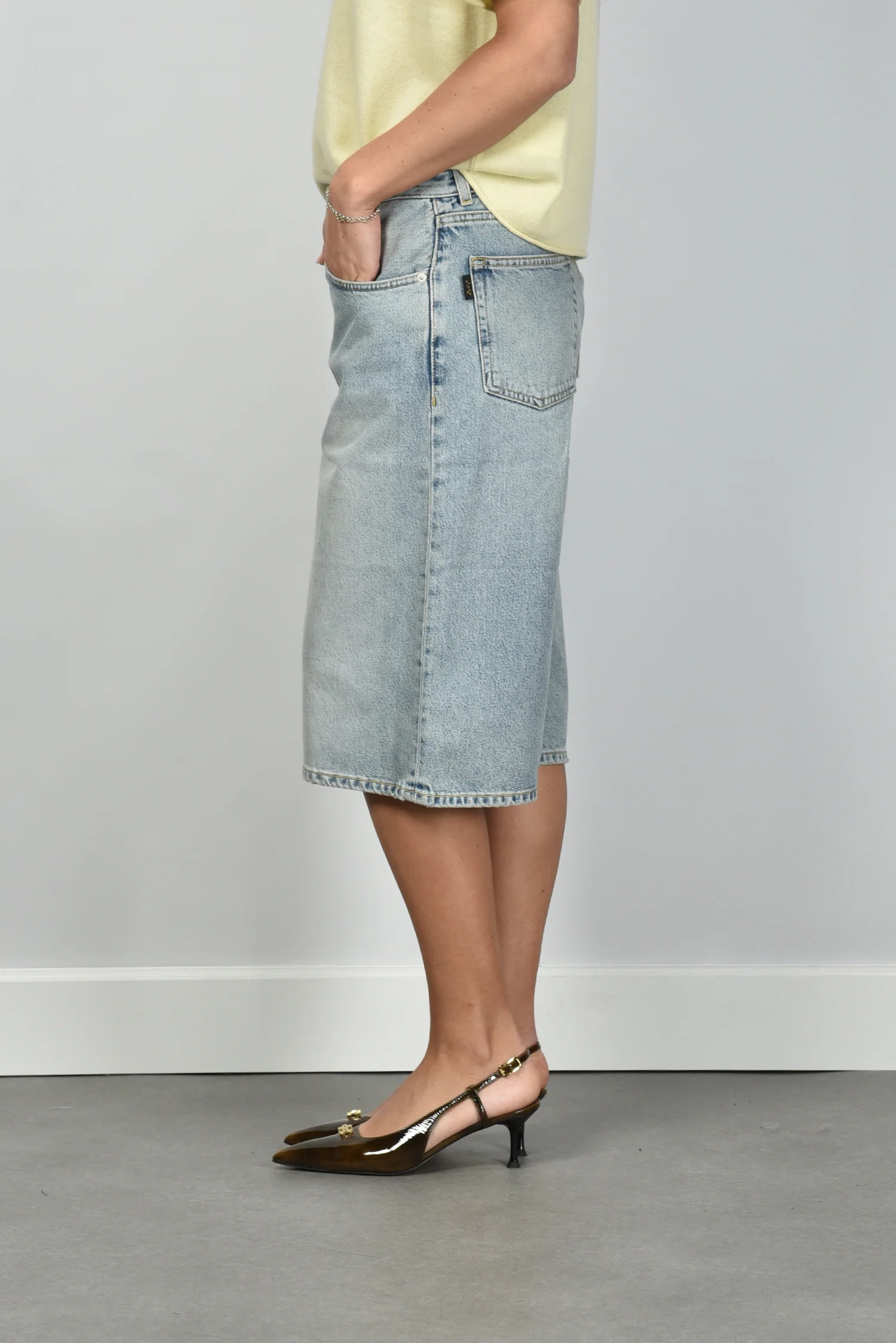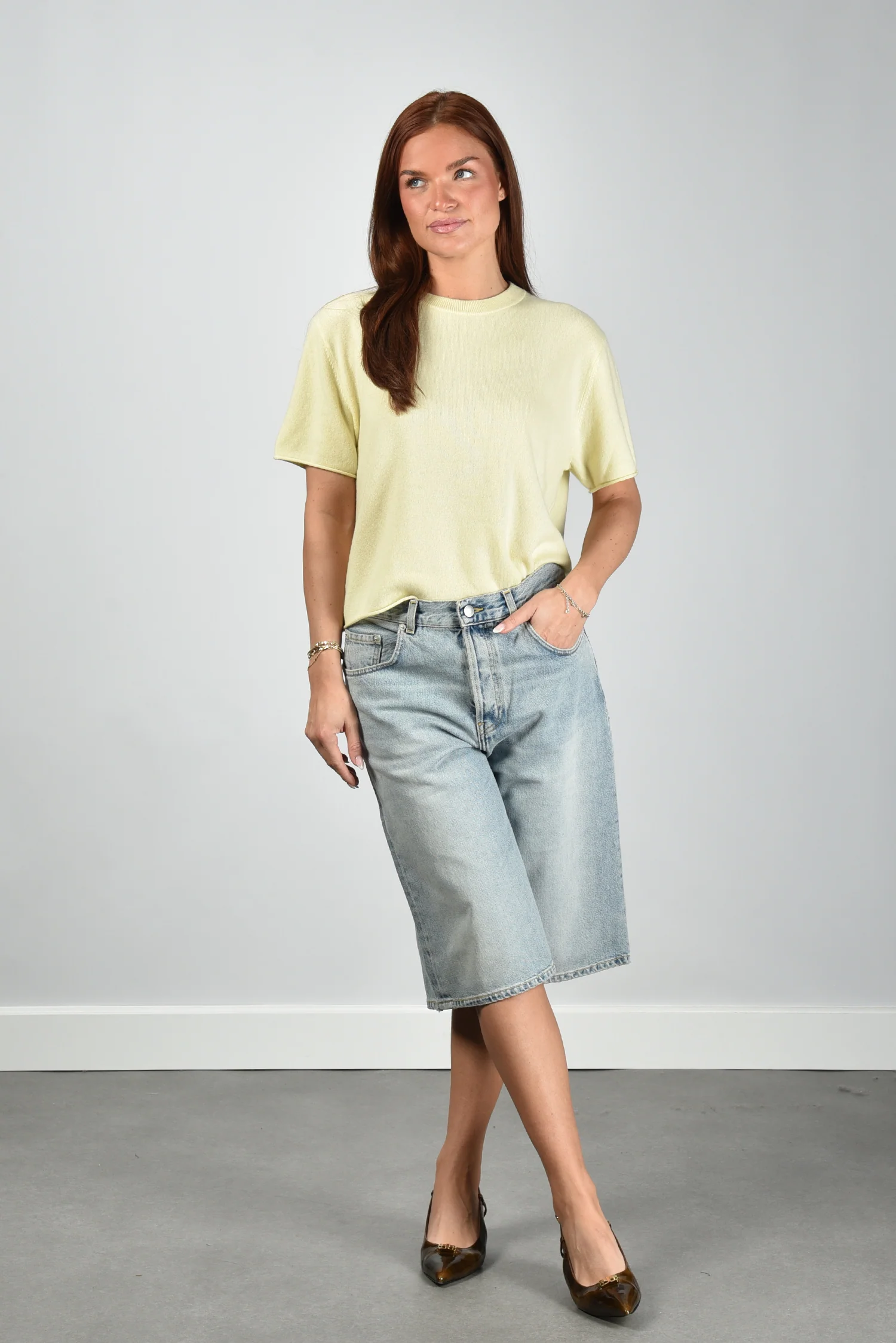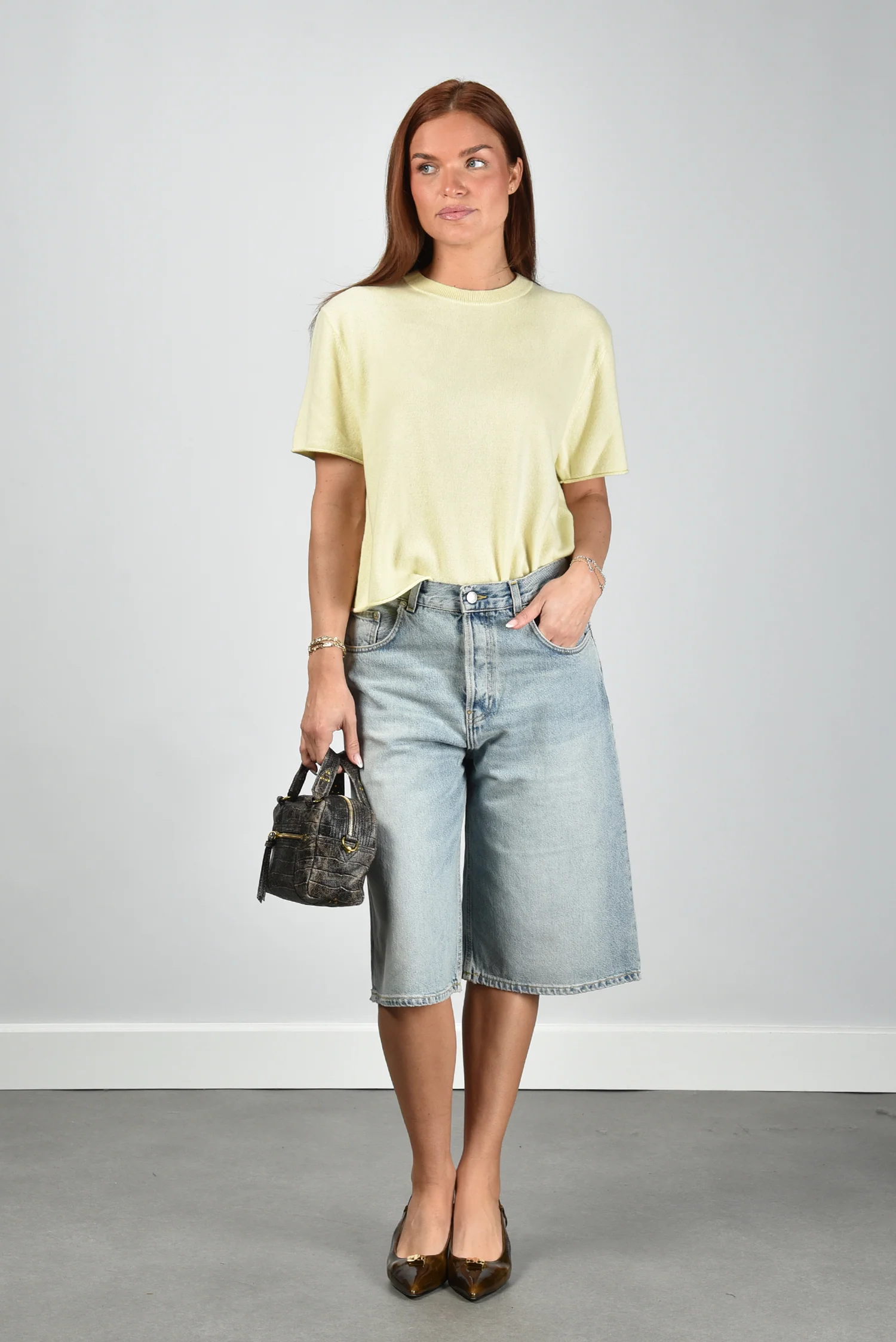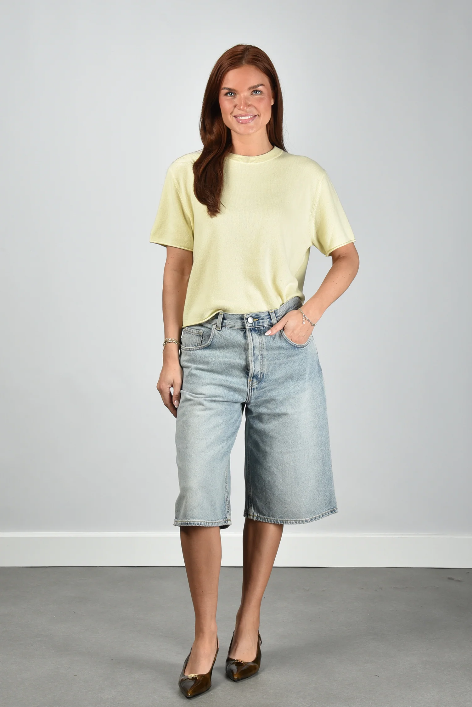 De jeans short New Becky van Haikure heeft een nonchalante pasvorm die direct prettig zit. Het model valt net over de knie en heeft wijde pijpen voor een ontspannen silhouet. De lichtblauwe authentic wash met subtiel versleten details geeft de denim een doorleefde charme. Gemaakt van 100% katoen waardoor de stof stevig aanvoelt en mooi in vorm blijft. Combineer hem op een zonnige dag met de L’Ame de Julie trui Joya in lemonade voor een frisse, moderne combinatie. Haikure staat bekend om zijn Italiaanse vakmanschap en duurzame denim, waarmee elke short modern en exclusief aanvoelt zonder moeite te doen.