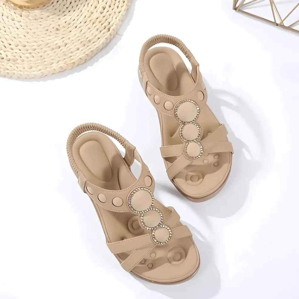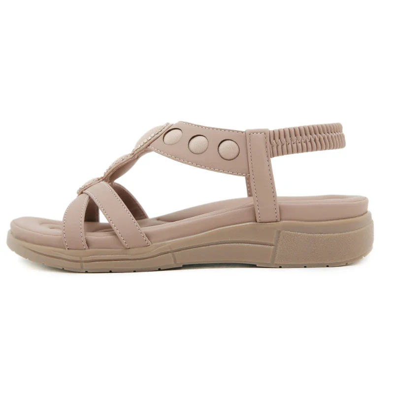 De Hazel Boho sandalen combineren eenvoud met een comfortabele pasvorm in een stijlvol en neutraal ontwerp. De elastische band zorgt voor een stevige, maar flexibele sluiting die niet knelt. Dankzij het zachte voetbed en de platte zool ervaar je natuurlijke ondersteuning. Lichtgewicht en luchtig, perfect voor zomerse dagen waarop je moeiteloos wilt bewegen, van stad tot strand. Ideaal voor dagelijks gebruik met een vleugje boho flair.
