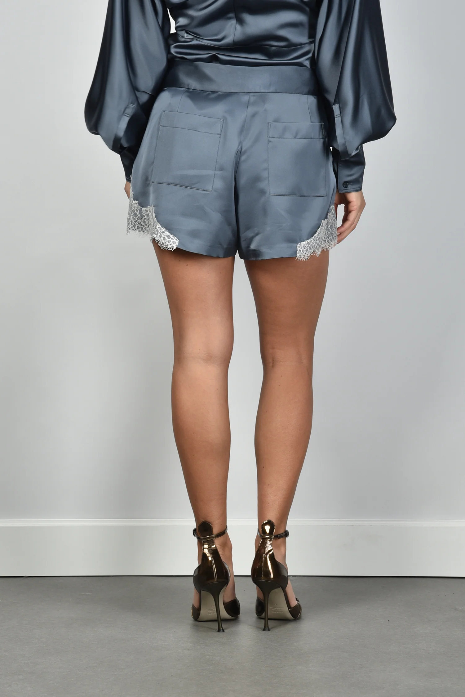 De short Nyna van IRO is een opvallend item met precies genoeg detail. De glanzende blauwe stof heeft een subtiele chic die meteen opvalt. De witte kanten rand langs de pijpen geeft een speels contrast, zonder dat het te zoet wordt. Het model valt kort en losjes, wat zorgt voor een luchtige uitstraling. De zijzakken en nette sluiting met rits en knoop maken het ontwerp praktisch en verzorgd tegelijk. Deze short van 100% polyester voelt licht en soepel aan, ideaal voor een zomerse dag in de stad of een avondje uit. Combineer de short Nyna met de IRO blouse Tyhoa in storm blue voor een elegante ton sur ton look met een stoere Franse twist.