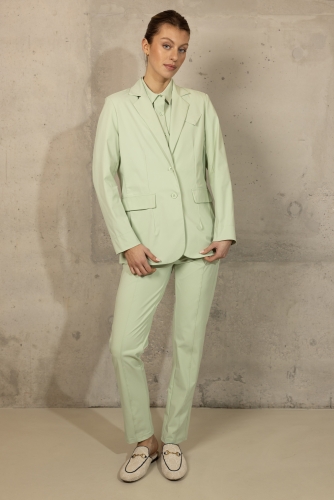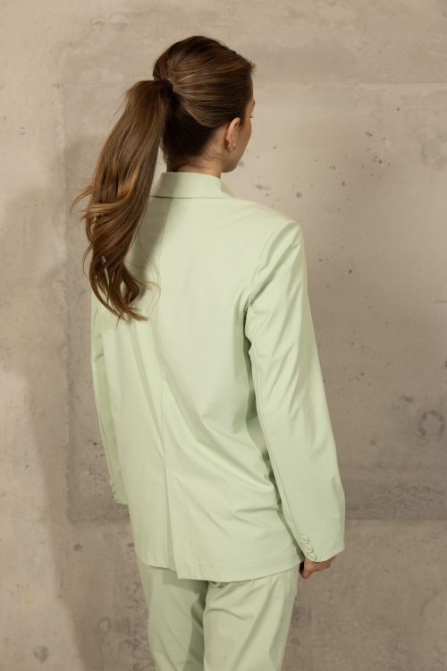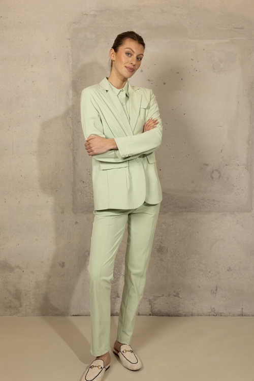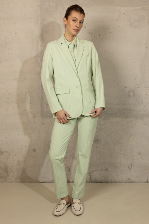 Ontdek de stijlvolle Chey Blazer in Jade, gemaakt van hoogwaardige travelstof. Deze blazer heeft een elegante uitstraling met twee knopen en twee voorzakken met kleppen. De lichte groene kleur zorgt voor een frisse en moderne look. De travelstof biedt comfort en flexibiliteit, ideaal voor zowel zakelijke als casual gelegenheden. Combineer de Chey Blazer met de bijpassende Lise Pants in Jade voor een complete en verfijnde outfit, of draag hem met de Ezie Pants in Jade en een andere top uit onze collectie voor een veelzijdige en modieuze look.