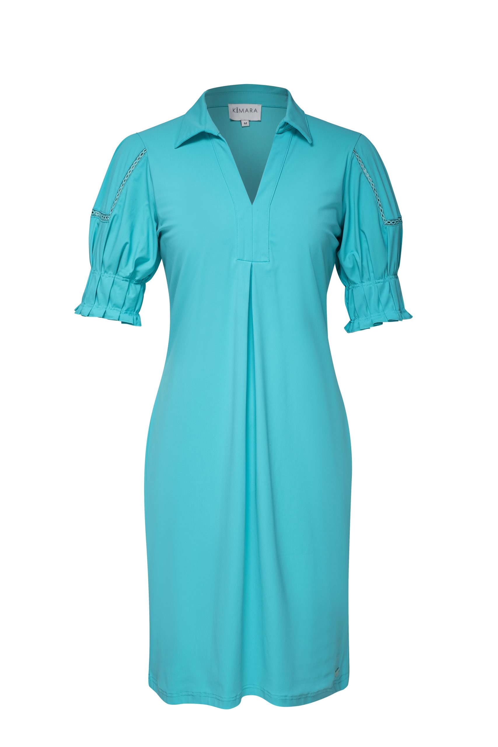 Ontdek de elegante Nikki Dress, gemaakt van comfortabele travelstof. Deze jurk heeft korte mouwen met geplooide details en kanten accenten op de schouders. De V-halslijn met een kleine kraag en plooien aan de voorkant onder de halslijn zorgen voor een verfijnde en stijlvolle uitstraling. De Nikki Dress is verkrijgbaar in de kleuren Aqua en Sky Blue, perfect voor zowel casual als formele gelegenheden. Combineer deze jurk met elegante accessoires en schoenen voor een complete en modieuze look.