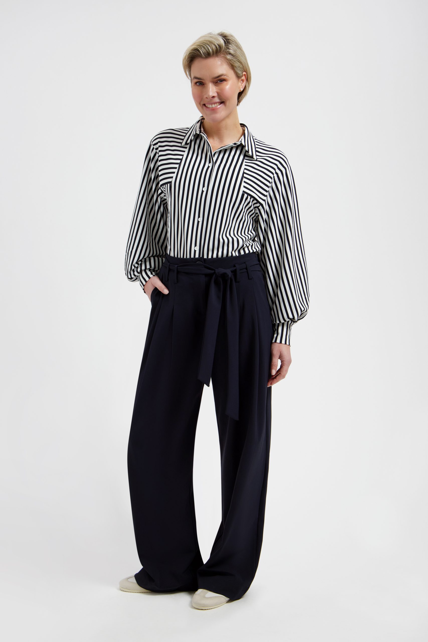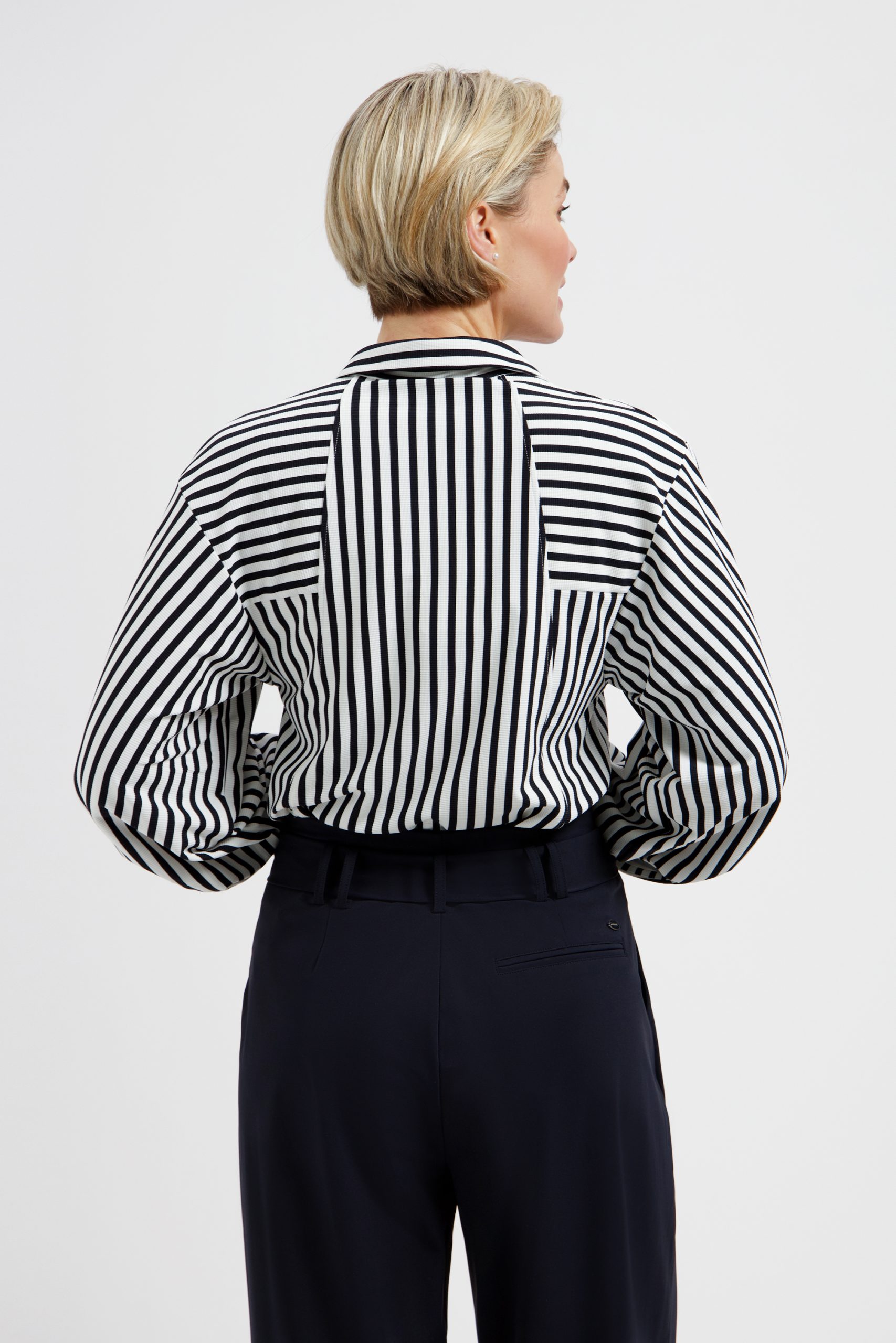 De blouse is gemaakt van comfortabele travelstof met stretch, waardoor hij heerlijk draagt en mooi in model blijft. De stof is ademend en kreukvrij, zodat je er de hele dag verzorgd uitziet. De Gem Blouse heeft een klassieke kraag en een knoopsluiting aan de voorzijde. De subtiele details op het voorpand en de licht gepofte mouwen met manchetten geven de blouse een elegante en verfijnde uitstraling.
