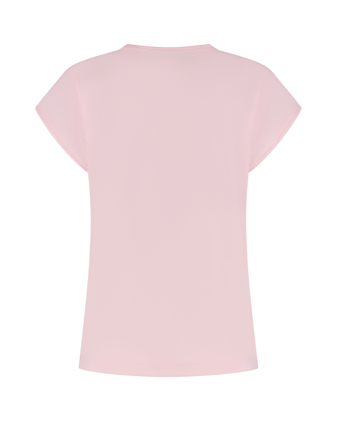 Deze top is gemaakt van comfortabele travelstof met stretch, waardoor hij prettig draagt en mooi aansluit op het lichaam. De stof is kreukvrij en ademend, waardoor je er de hele dag verzorgd uitziet zonder dat je je zorgen hoeft te maken over kreukels. De V-hals en de soepel vallende korte mouwen zorgen voor een elegante en flatterende look.