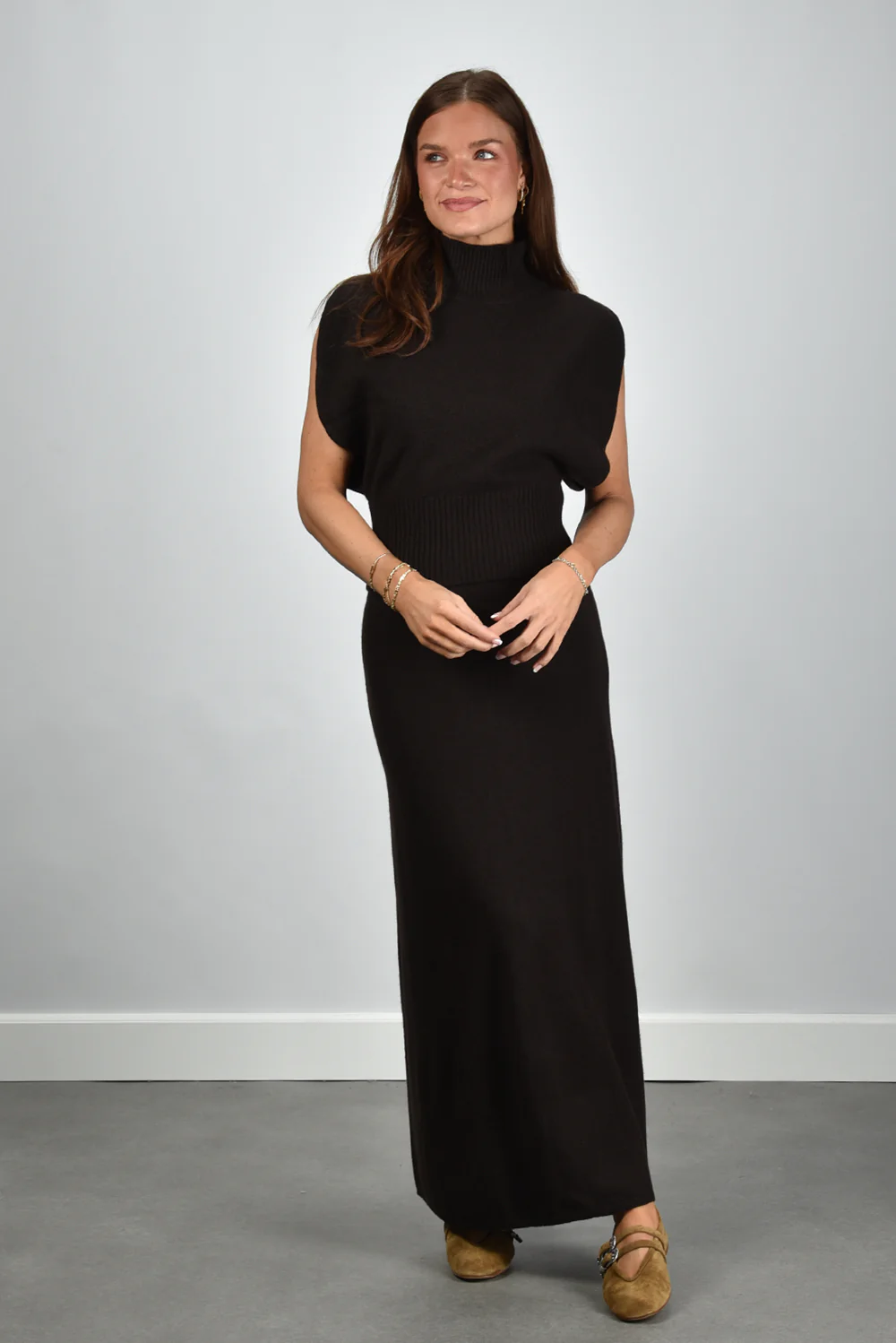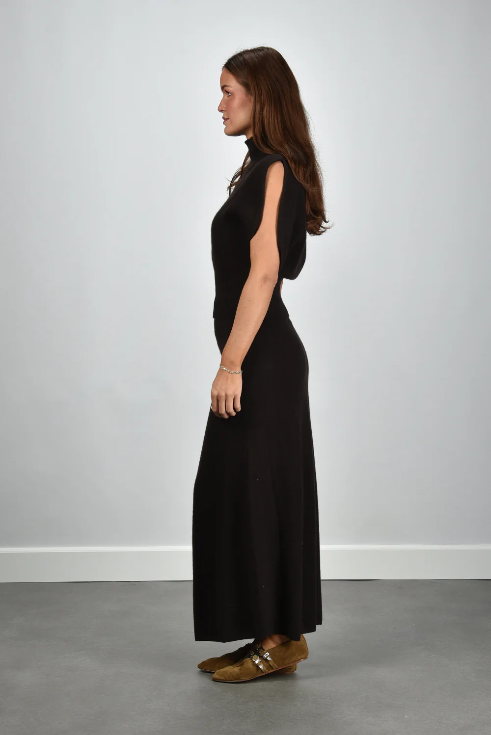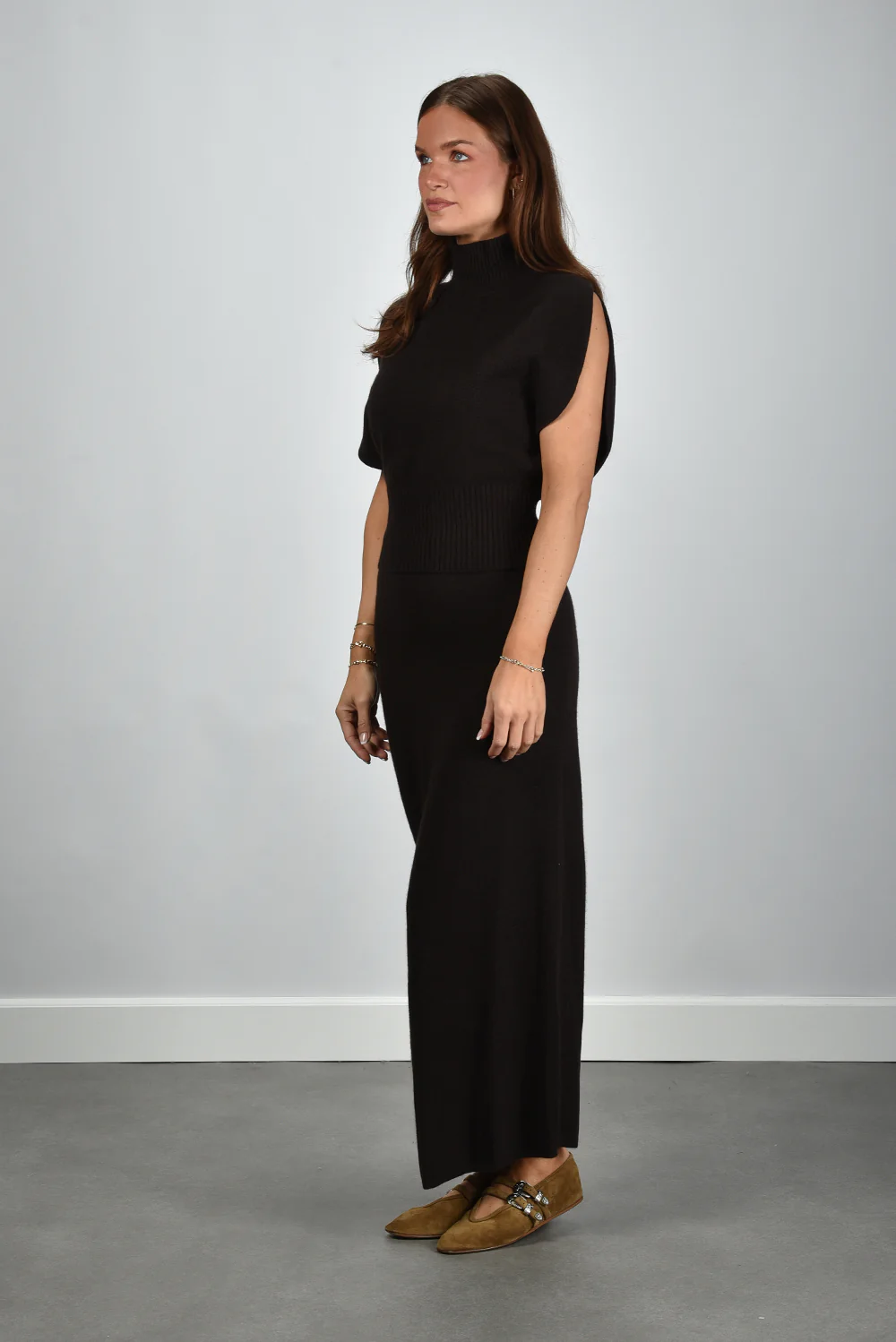 De cashmere top Zaya van Lisa Yang is een warme, luxueuze basis die naadloos aansluit op je garderobe. De hoge col sluit zacht aan, terwijl de brede, afgeronde schouders zorgen voor een modern, vrouwelijk lijnenspel. De brede geribde tailleband geeft net genoeg structuur en accentueert het silhouet op een subtiele manier. Gemaakt van 100% cashmere, voelbaar zacht en fijn van kwaliteit. De tint dark oak geeft deze top een diepe, rijke nuance die prachtig combineert met natuurlijke kleuren en lichte materialen. Mooi met bijvoorbeeld de Le Monde Beryl ballerina’s Claudia voor een rustige, subtiele look. De top valt normaal op maat en draagt licht en soepel, zoals je van Lisa Yang gewend bent.