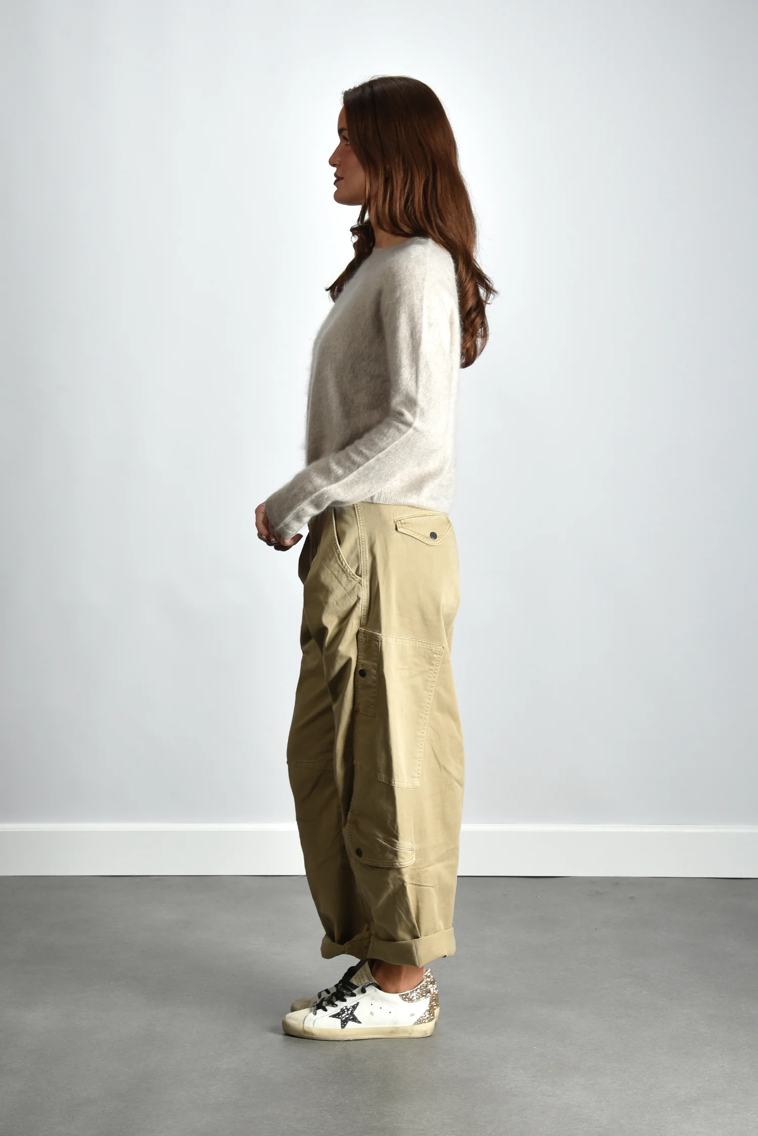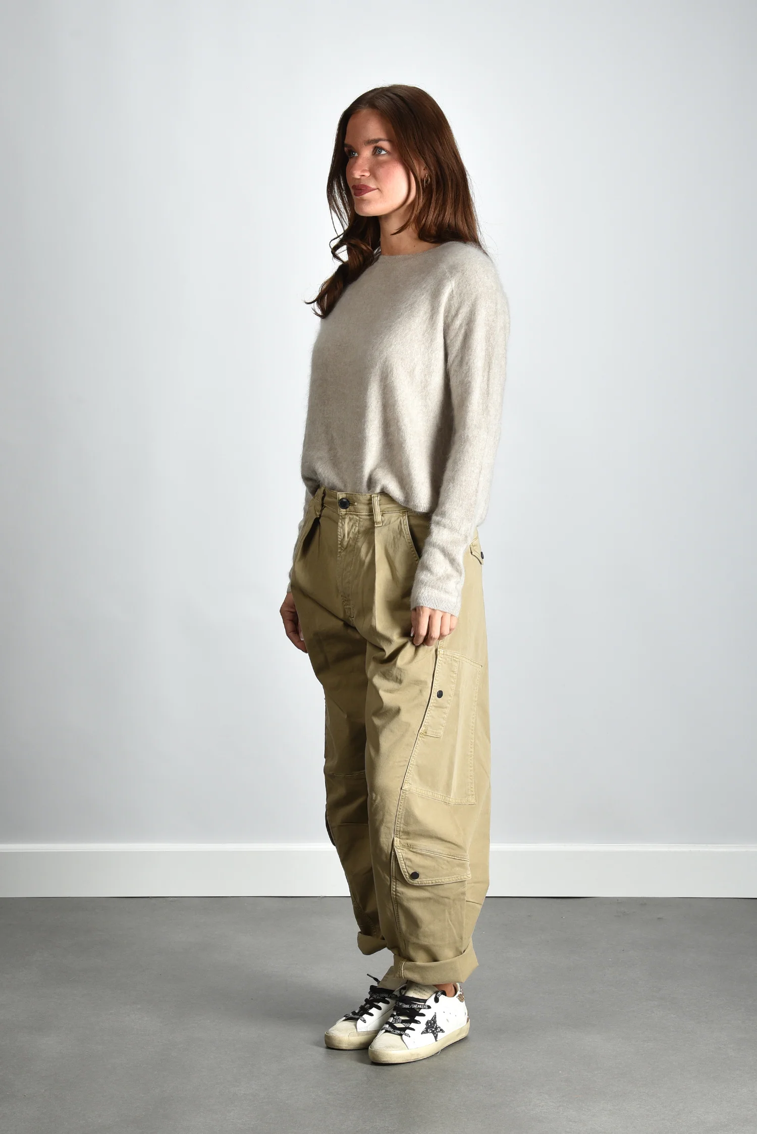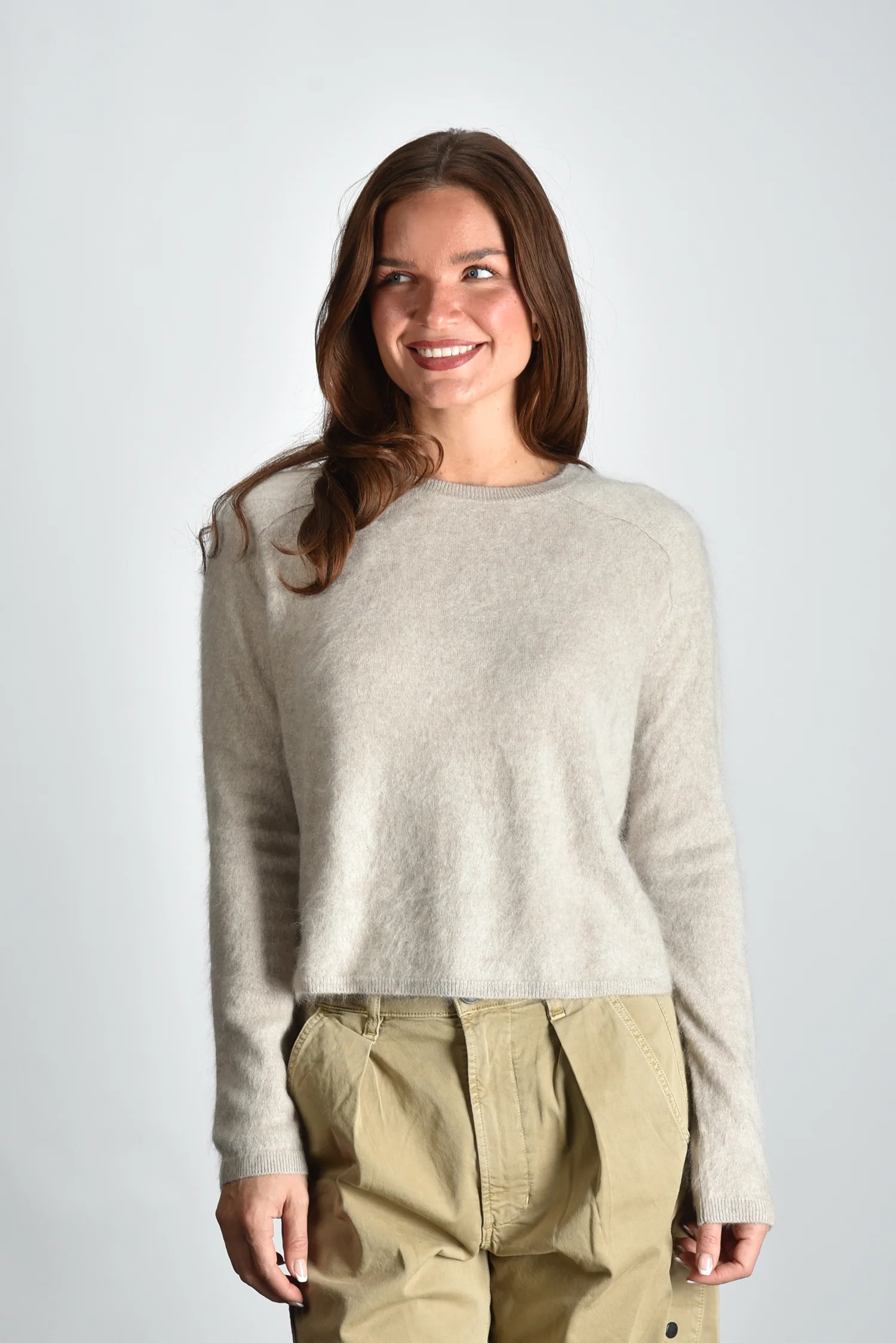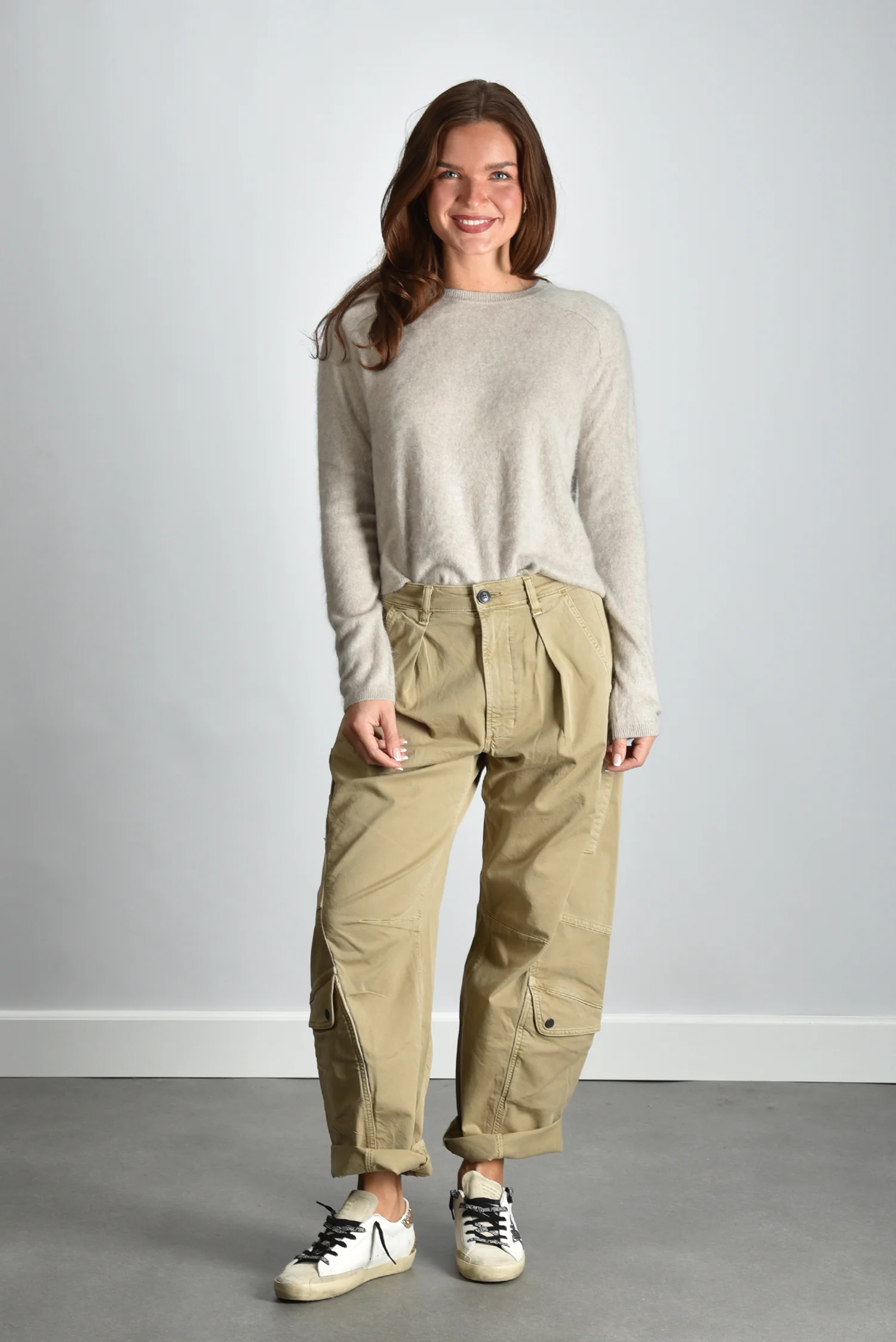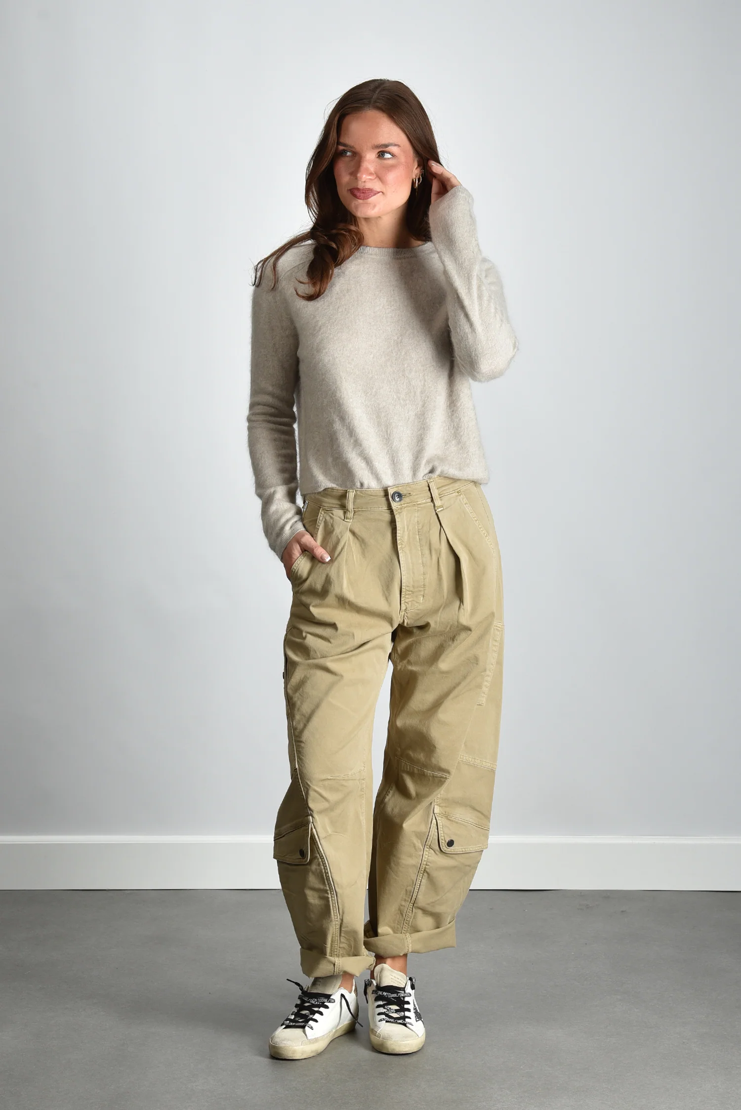 De trui Lexia van Lisa Yang is een klassiek model in een zachte beige tint die ook wel sand brushed wordt genoemd. Het fijne, pure kasjmier voelt soepel en licht aan, met een structuur die meteen kwaliteit verraadt. De ronde hals en smalle boorden geven het ontwerp een ingetogen vorm die gemakkelijk te dragen is. Deze trui valt mooi op maat en heeft een relaxed silhouet dat vanzelf aansluit bij de stijl van Lisa Yang. Voor een moderne, natuurlijke look combineer je de Lexia met de Citizens of Humanity broek Marcelle Low Slung Cargo in burnished quartz voor een rustige tint op tint set.