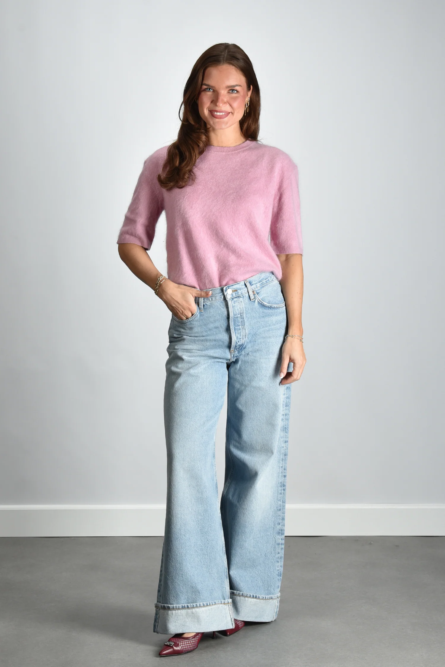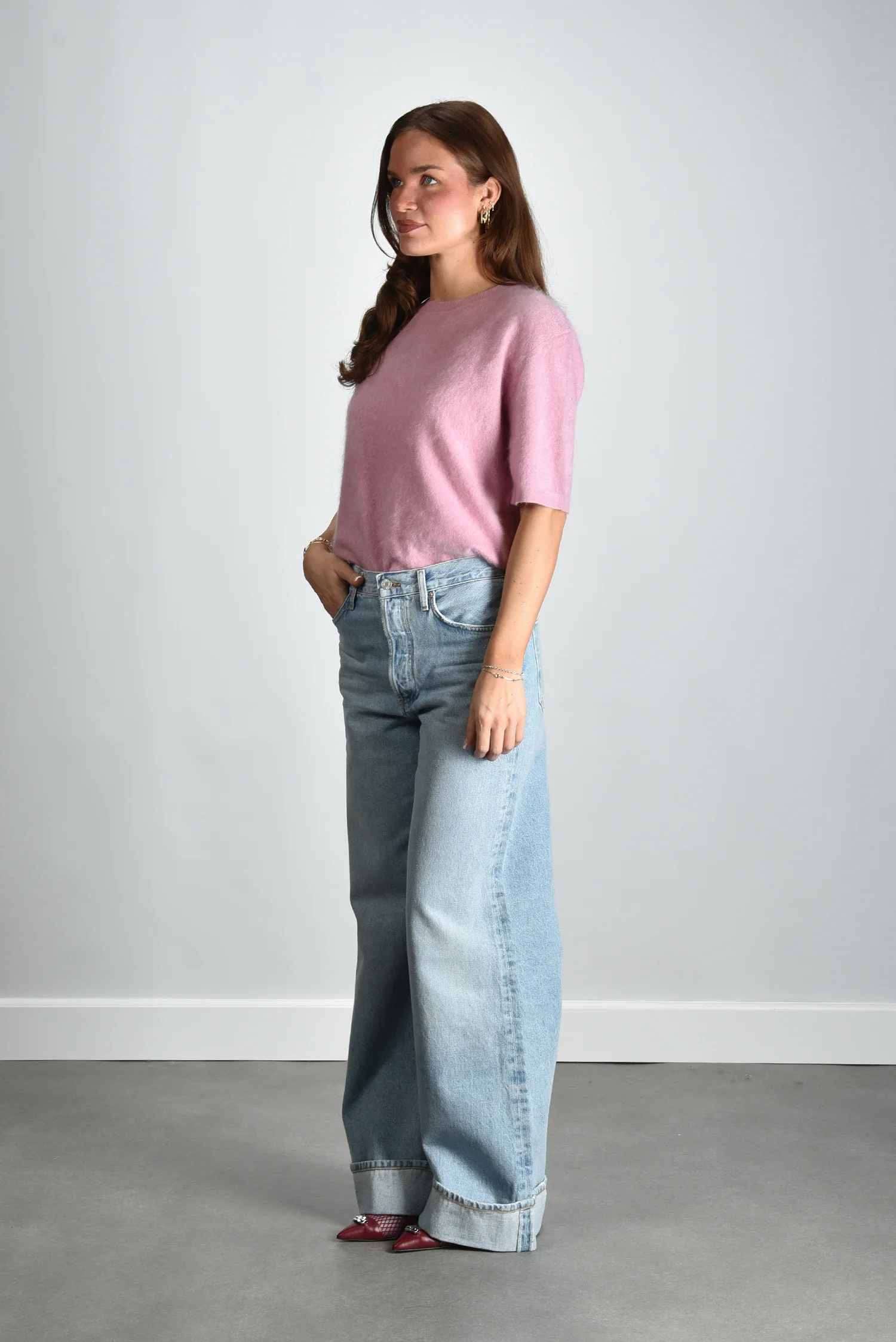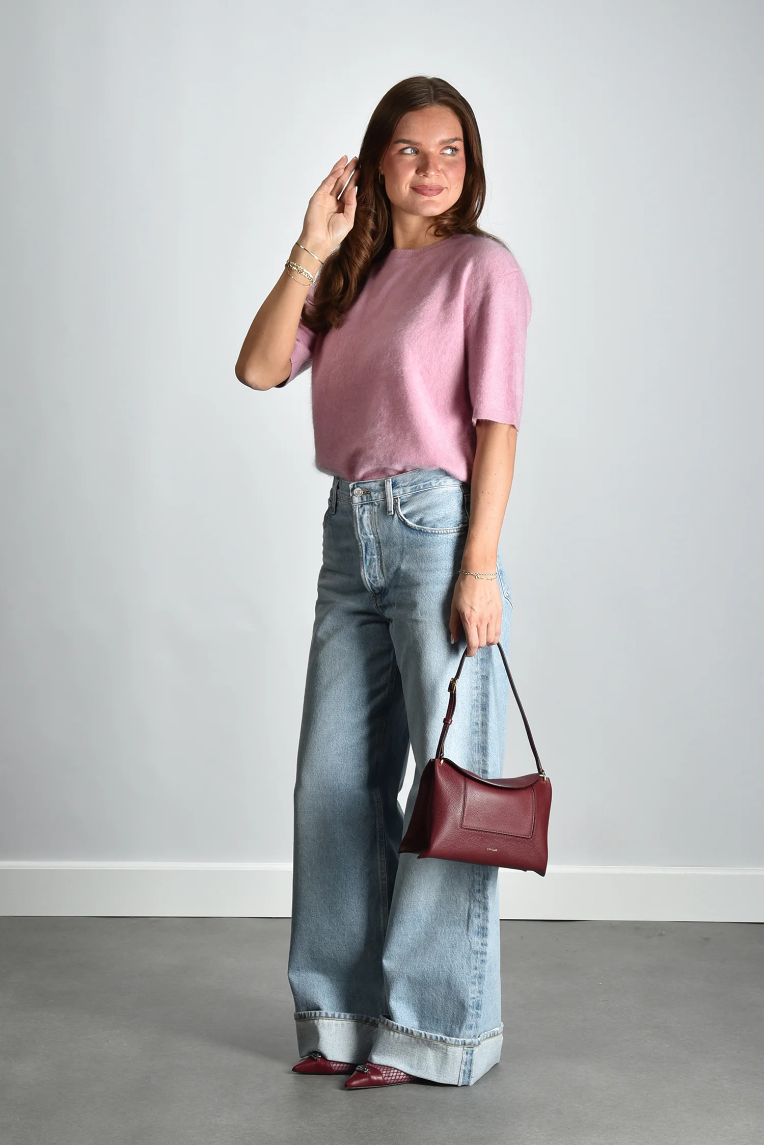 De trui Maren van Lisa Yang voelt direct bijzonder door het fijne kasjmier. De zachte, roze tint, petal brushed, geeft een frisse zachtheid zonder te zoet te worden. De halflange mouwen vallen net boven de elleboog en maken het silhouet luchtig en vrouwelijk. De stof is licht, pluizig en voelt soepel tegen de huid. Deze trui valt normaal op maat en past mooi bij een slanke broek of een soepele rok. Combineer met de Wandler crossbody Penelope Slouch acai crust voor een rustige, luxe uitstraling. Lisa Yang staat bekend om haar pure kasjmiercollecties die comfort en stijl op een vanzelfsprekende manier samenbrengen in stukken die seizoen na seizoen meegaan.