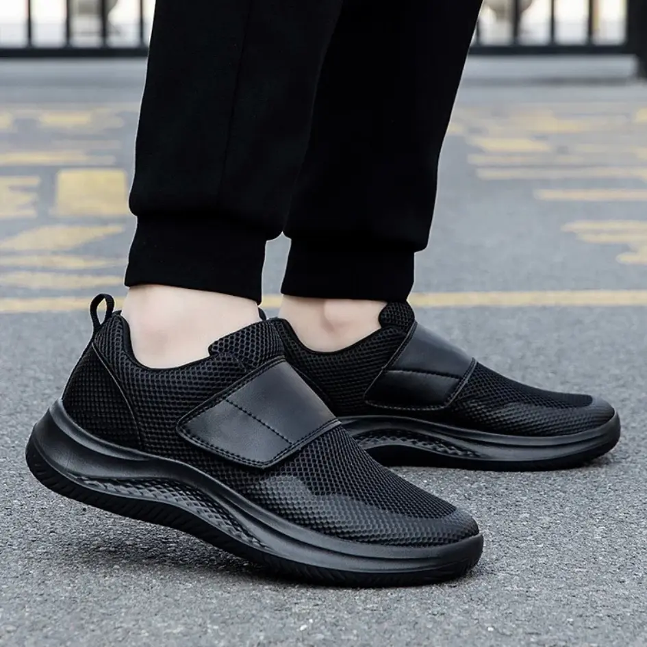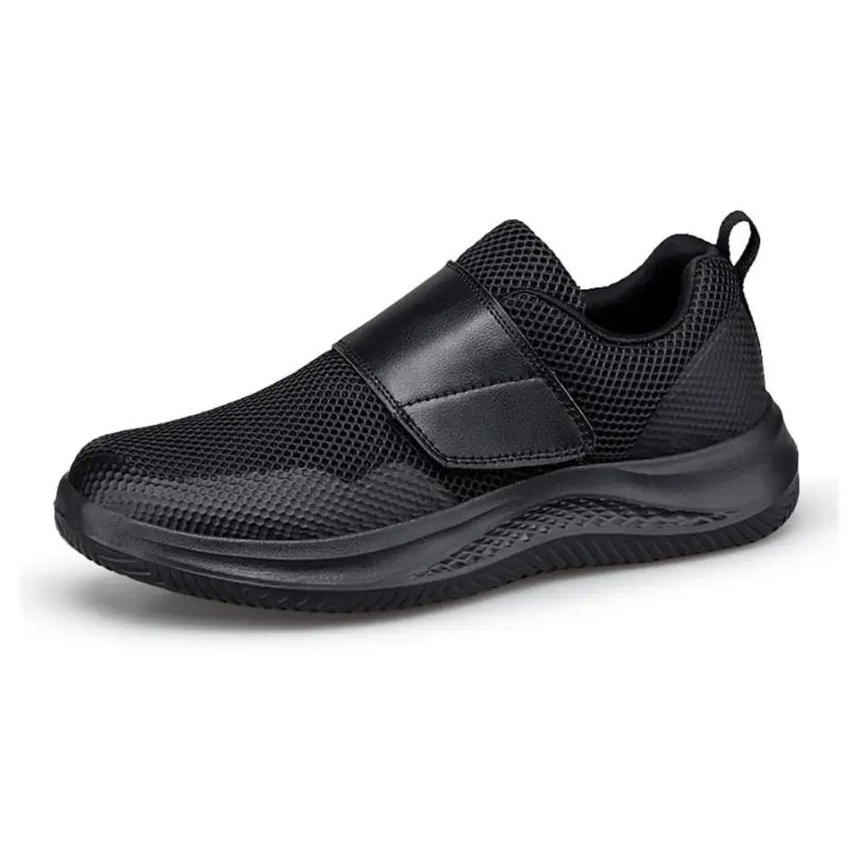 Deze orthopedische comfortschoenen voor heren zijn ontworpen met extra breedte en verstelbare klittenbandsluiting, zodat ze eenvoudig aan te trekken zijn en altijd goed aansluiten. Het ademende mesh bovenwerk houdt de voeten fris.