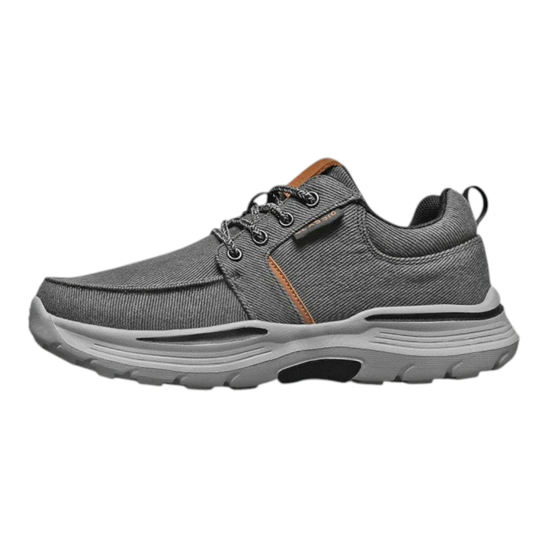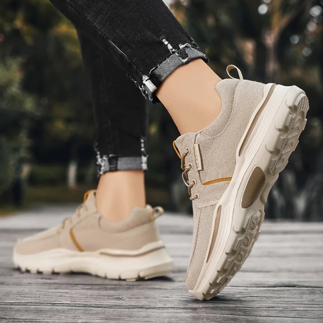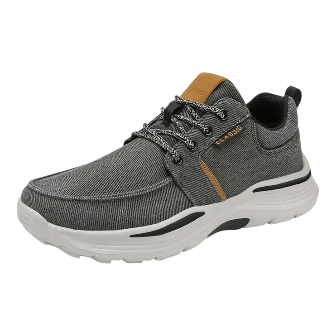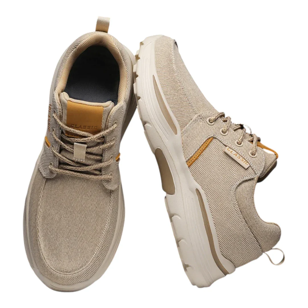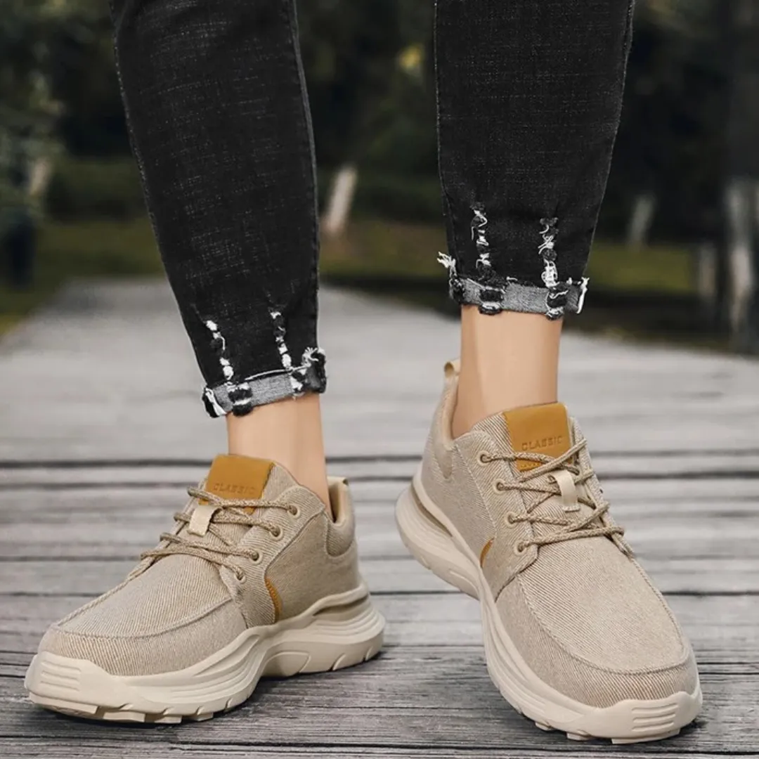 Deze stijlvolle heren sneakers combineren een luchtig canvas bovenwerk met een stevige zool voor optimale demping en draagcomfort. Dankzij het ademende materiaal blijven je voeten fris, ideaal voor dagelijks gebruik in het najaar en voorjaar. De ronde neus en casual uitstraling maken deze schoenen veelzijdig en eenvoudig te combineren met iedere outfit.
