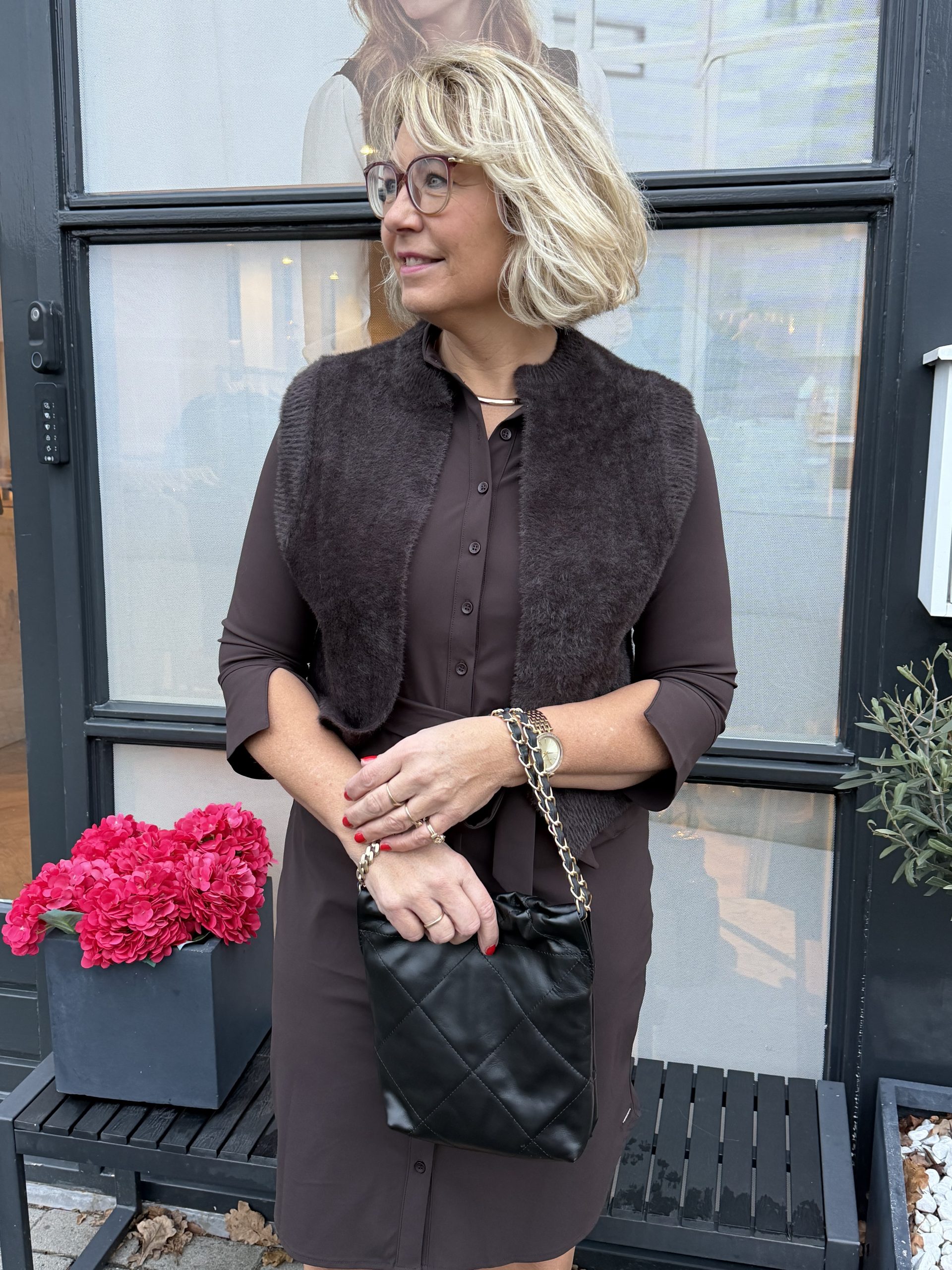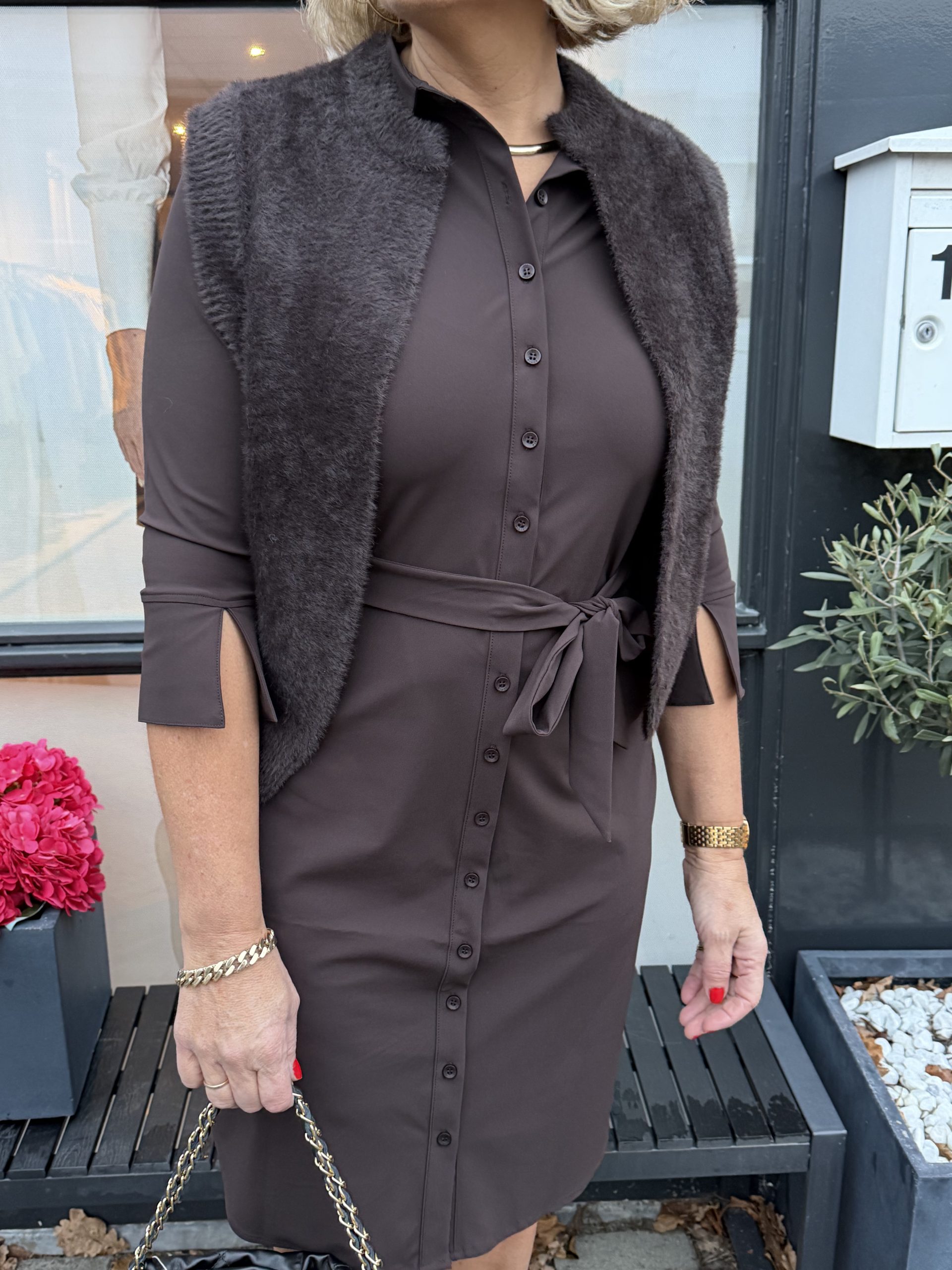 Mi Piace – Vest Hairy Mouwloos – Espresso