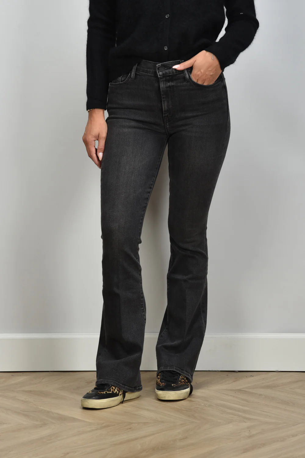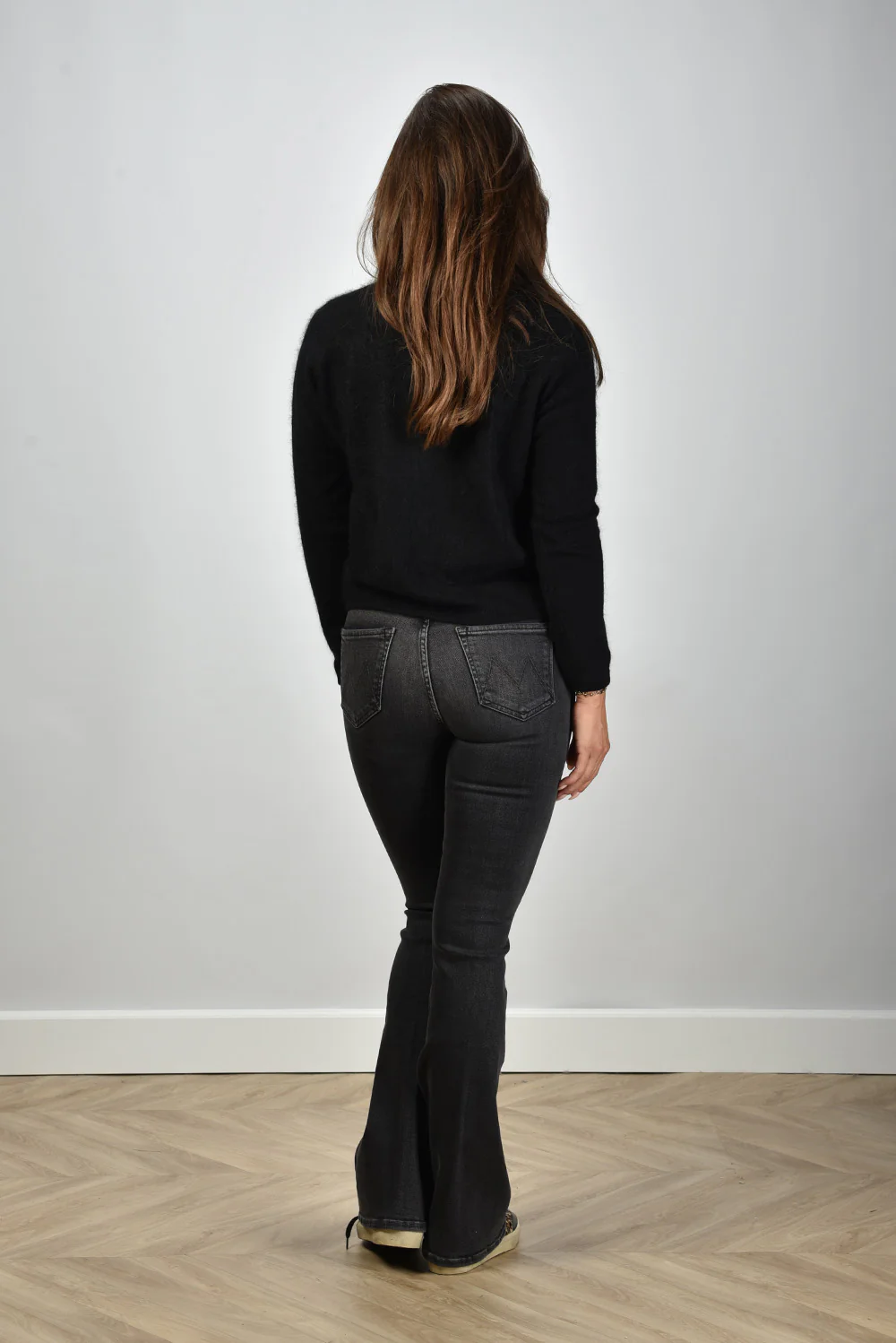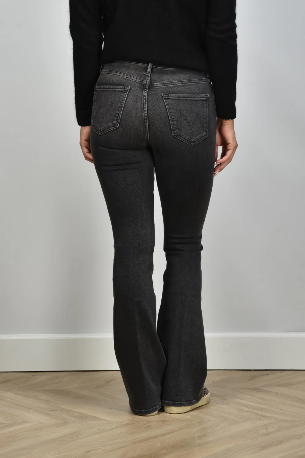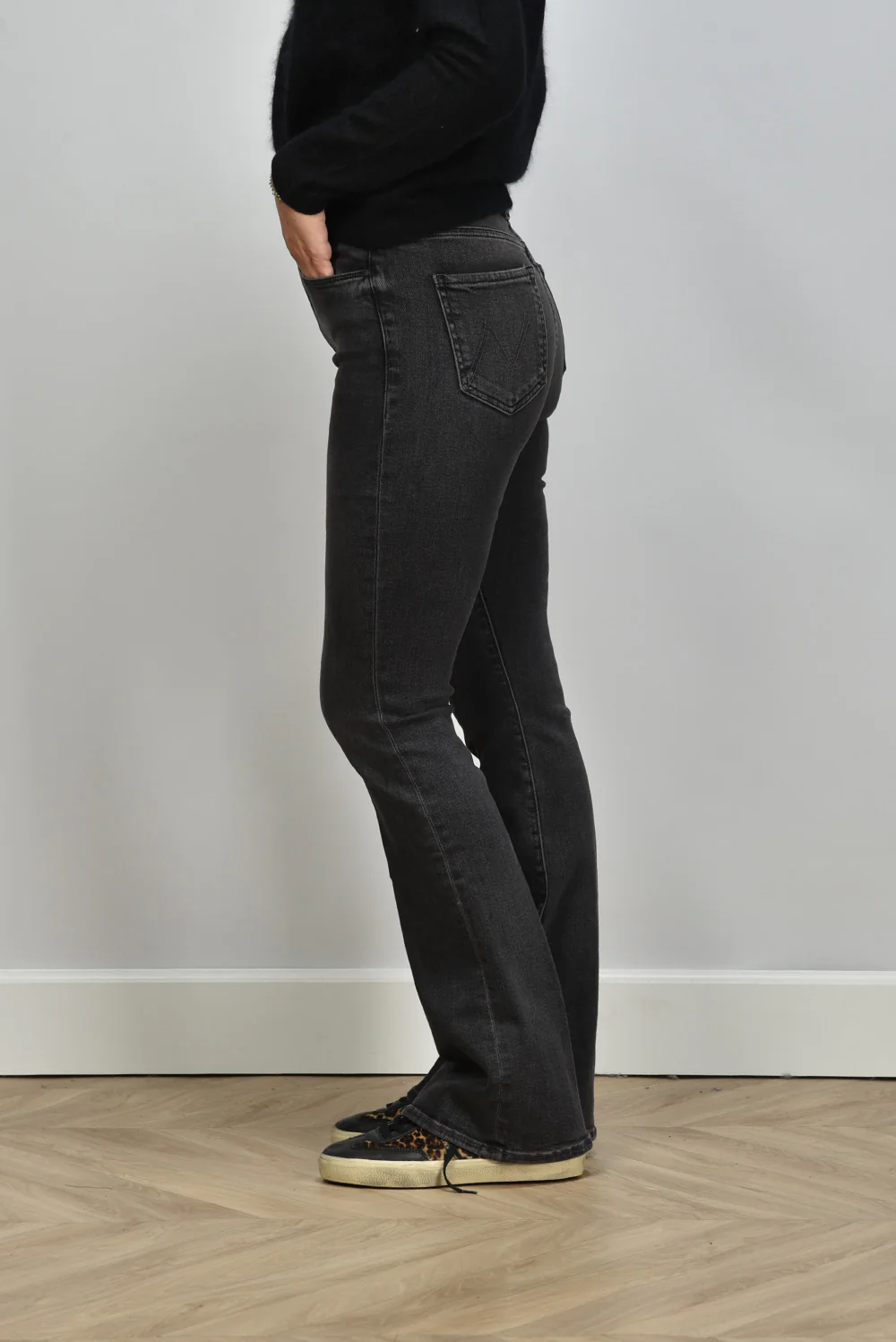 De jeans Weekender can call you my phone van Mother heeft een hoge taille en een subtiel uitlopend pijpmodel. De donkergrijze wassing met lichte vervaging op de bovenbenen geeft de jeans een karaktervolle, gedragen look. De stof voelt soepel aan door de mix van katoen, modal en een beetje stretch, waardoor hij fijn aansluit zonder te strak te zitten. Deze flare valt normaal op maat en sluit mooi aan rond het middel. Draag hem met het Les Tricots de Lea vest Gigy 37042 noir voor een stoere, vrouwelijke combinatie. Mother staat bekend om zijn jeans met een relaxte uitstraling en hoogwaardige stoffen, en dat merk je direct bij dit model.