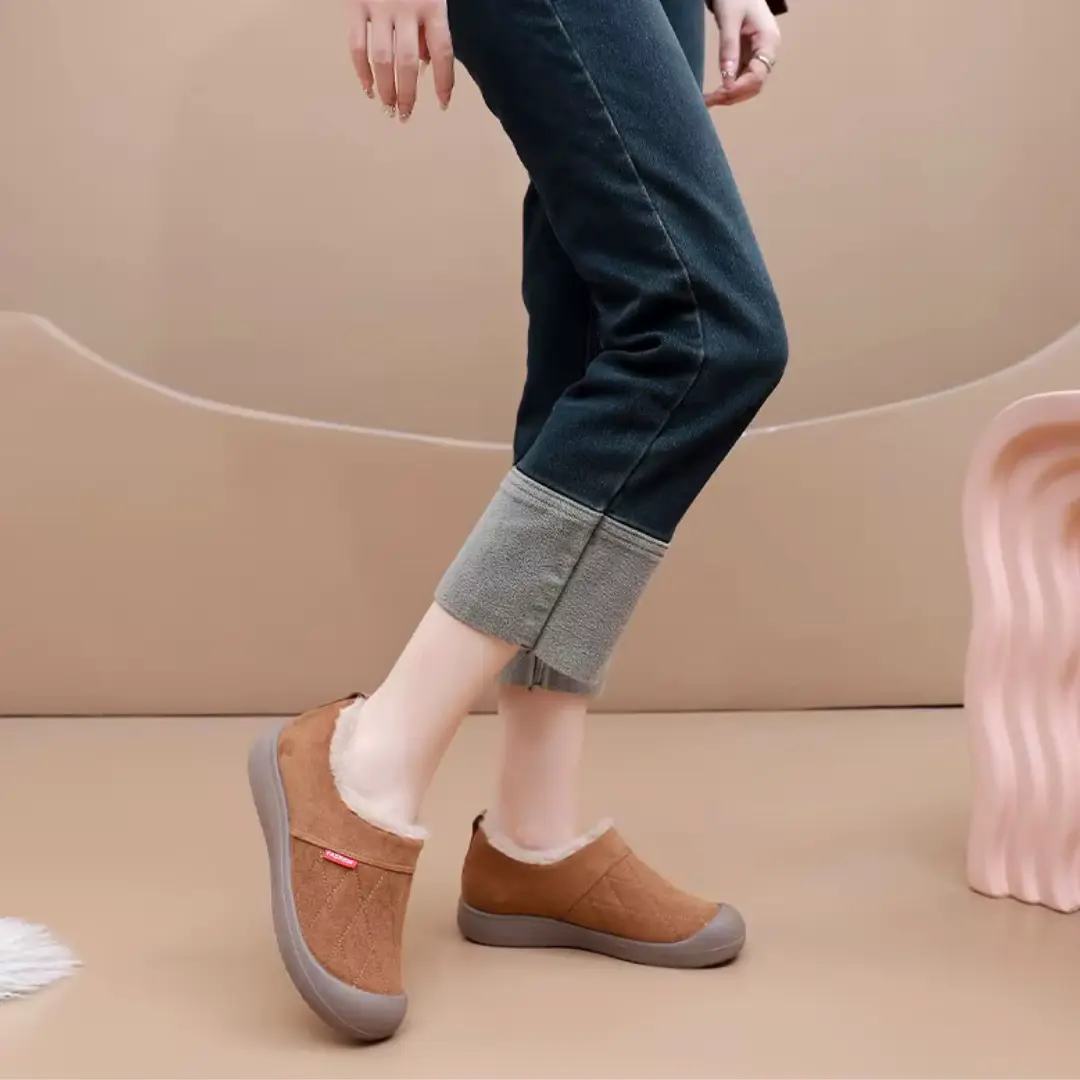 De stevige PU zool geeft betrouwbare grip, waardoor je stabiel blijft op gladde vloeren. Het zachte bovenmateriaal sluit soepel aan en voelt fijn bij langdurig dragen. Zo geniet je van warmte, lichtheid en een comfortabele pasvorm voor elke winterdag.