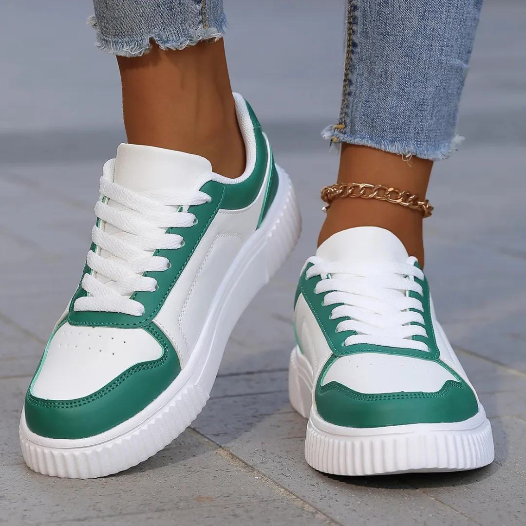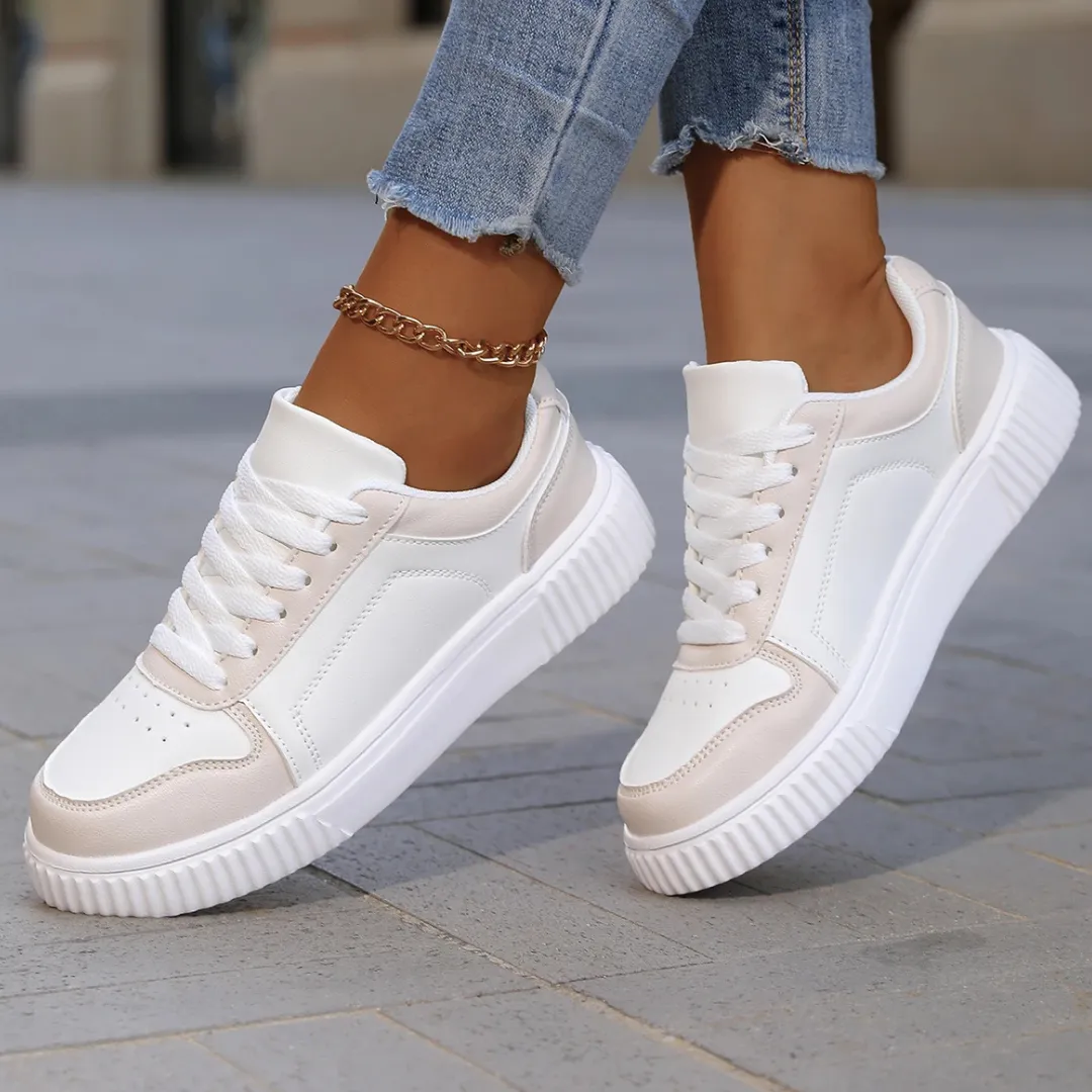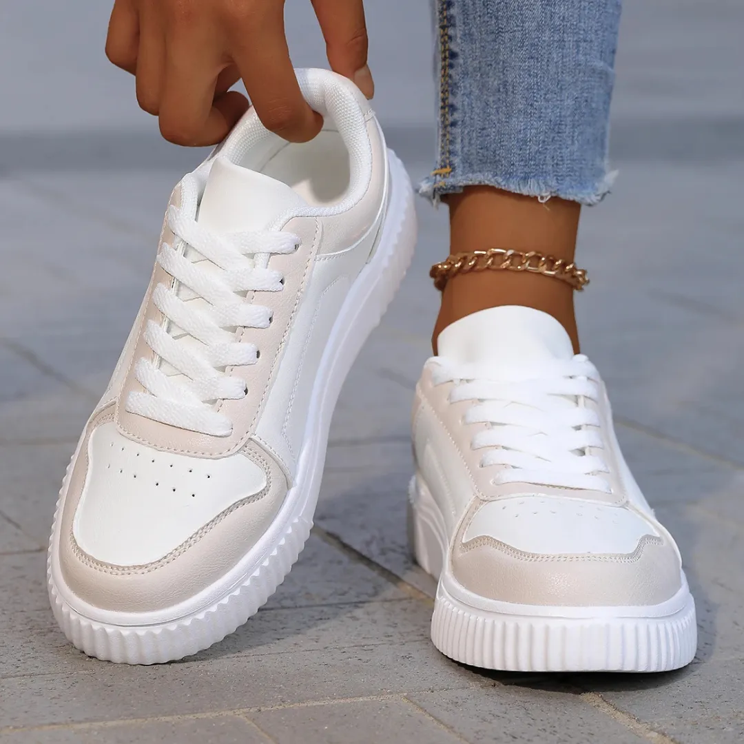 Het ademende bovenwerk van polyester houdt je voeten fris, ook tijdens langere dagen. De stevige rubberen zool biedt betrouwbare grip en stabiliteit, ideaal voor dagelijks gebruik. Met hun frisse kleurenspel in wit en lichtblauw en tijdloos design passen deze trendy dames sneakers bij elke outfit – van casual tot sportief.