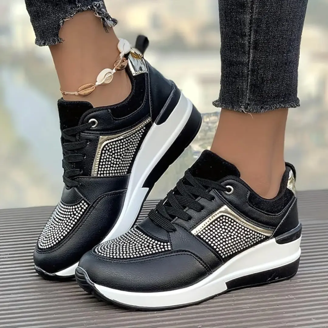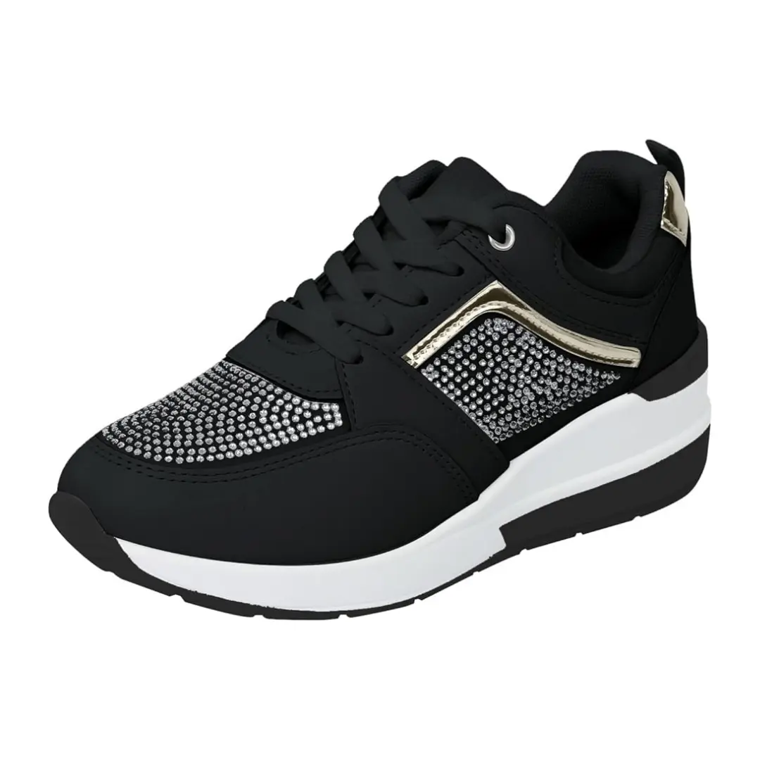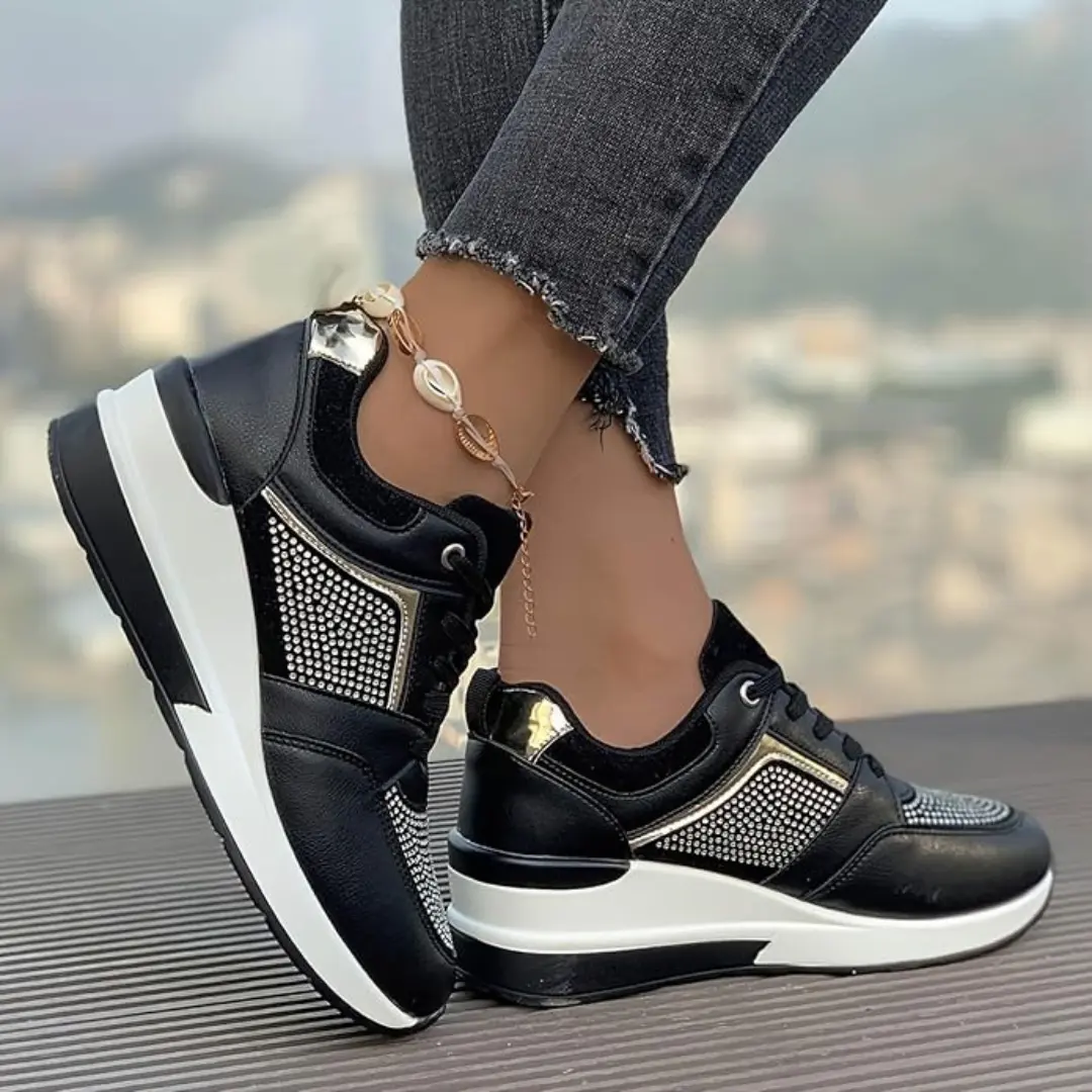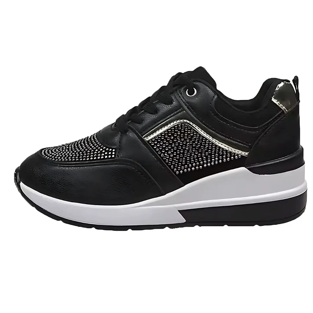 Op zoek naar sneakers die comfort combineren met een vleugje glamour? Maak kennis met Oliva: de perfecte mix van sportief en chic. Deze damessneakers met sleehak zijn afgewerkt met glitters en subtiele goudaccenten.