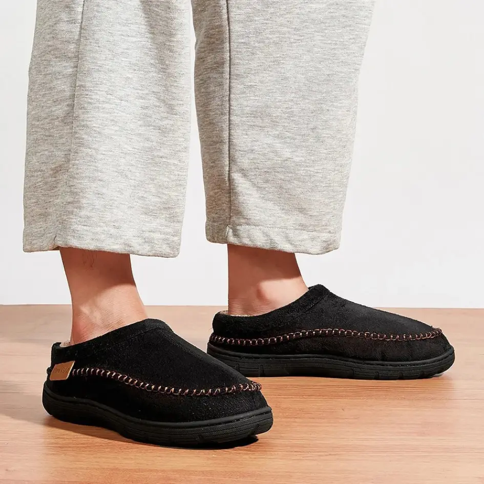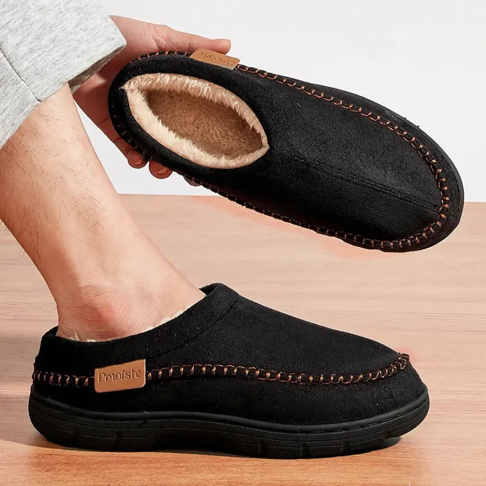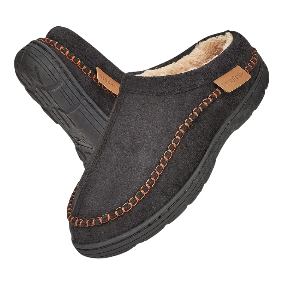 Deze herenpantoffels combineren comfort met een zachte pluche voering voor een warme en comfortabele pasvorm. De nette stiksels en de gesloten neus zorgen voor een strakke, stevige afwerking die lang meegaat.