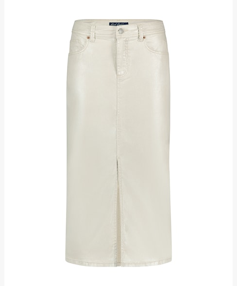 De Sibelle skirt sparkle is een denim midi rok met een glanzende coating. Deze rok heeft een regular fit, een split aan de voorkant en is verkrijgbaar in de kleuren dark sand, pearl & zilver. Het model is 1.78 en draagt een maat 36.