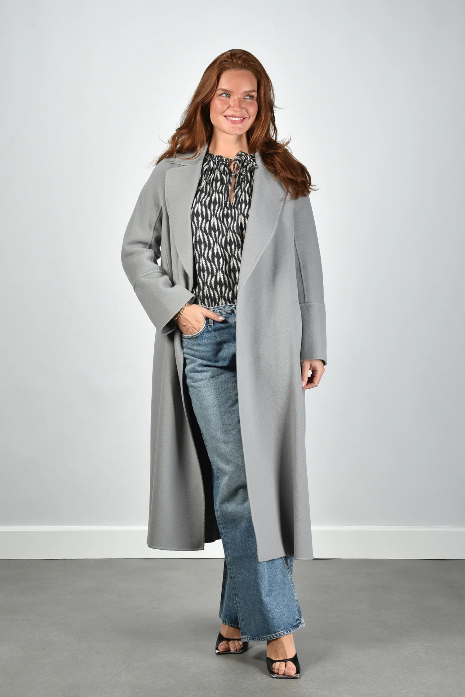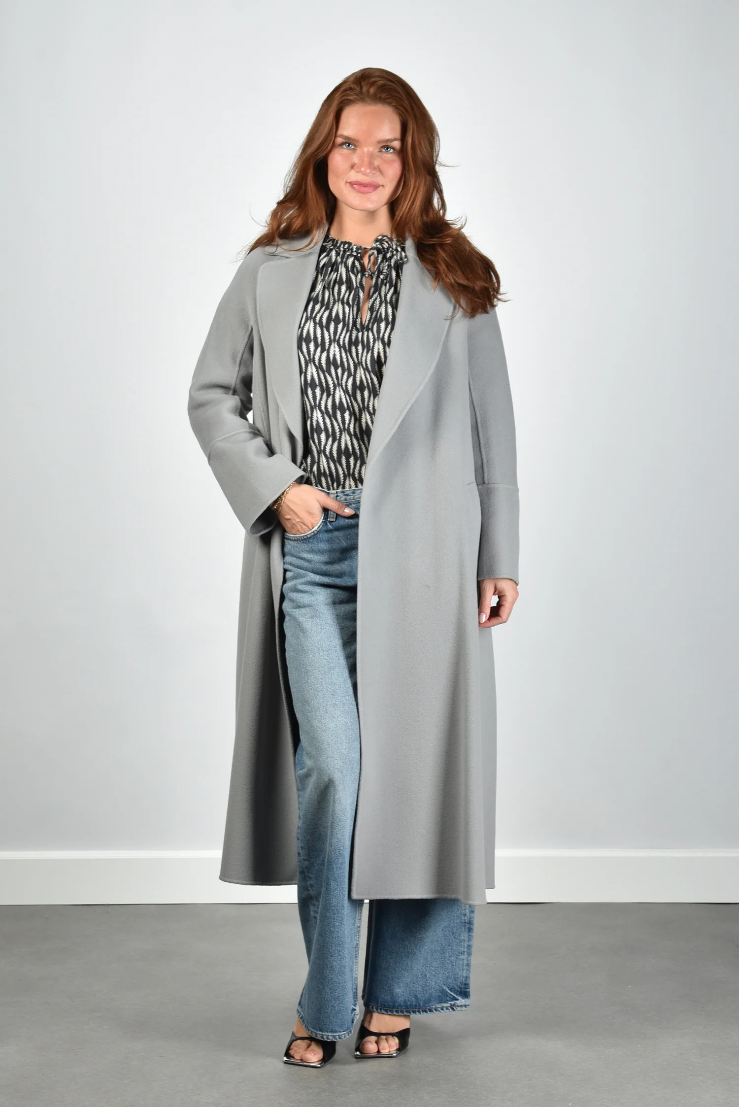 De jas Melisa van S Max Mara heeft de klassieke Italiaanse snit waar het huis zo bekend om staat. Deze lange wollen jas valt soepel langs het lichaam en reikt tot ruim over de knie. De brede reverskraag geeft het openvallende model extra karakter, terwijl de ceintuur in de taille zorgt voor een mooi silhouet. Gemaakt van 100% wol voelt het materiaal stevig maar zacht aan, ideaal voor koelere dagen. De kleur avio, een stijlvolle blauwgrijze tint, maakt de jas veelzijdig en onderscheidend tegelijk. Draag de Melisa met de Morobe sandalen Mimi 05 black voor een elegante balans tussen stoer en vrouwelijk.