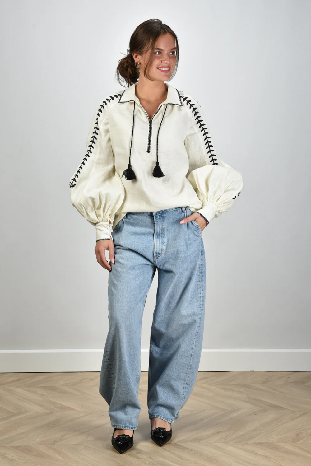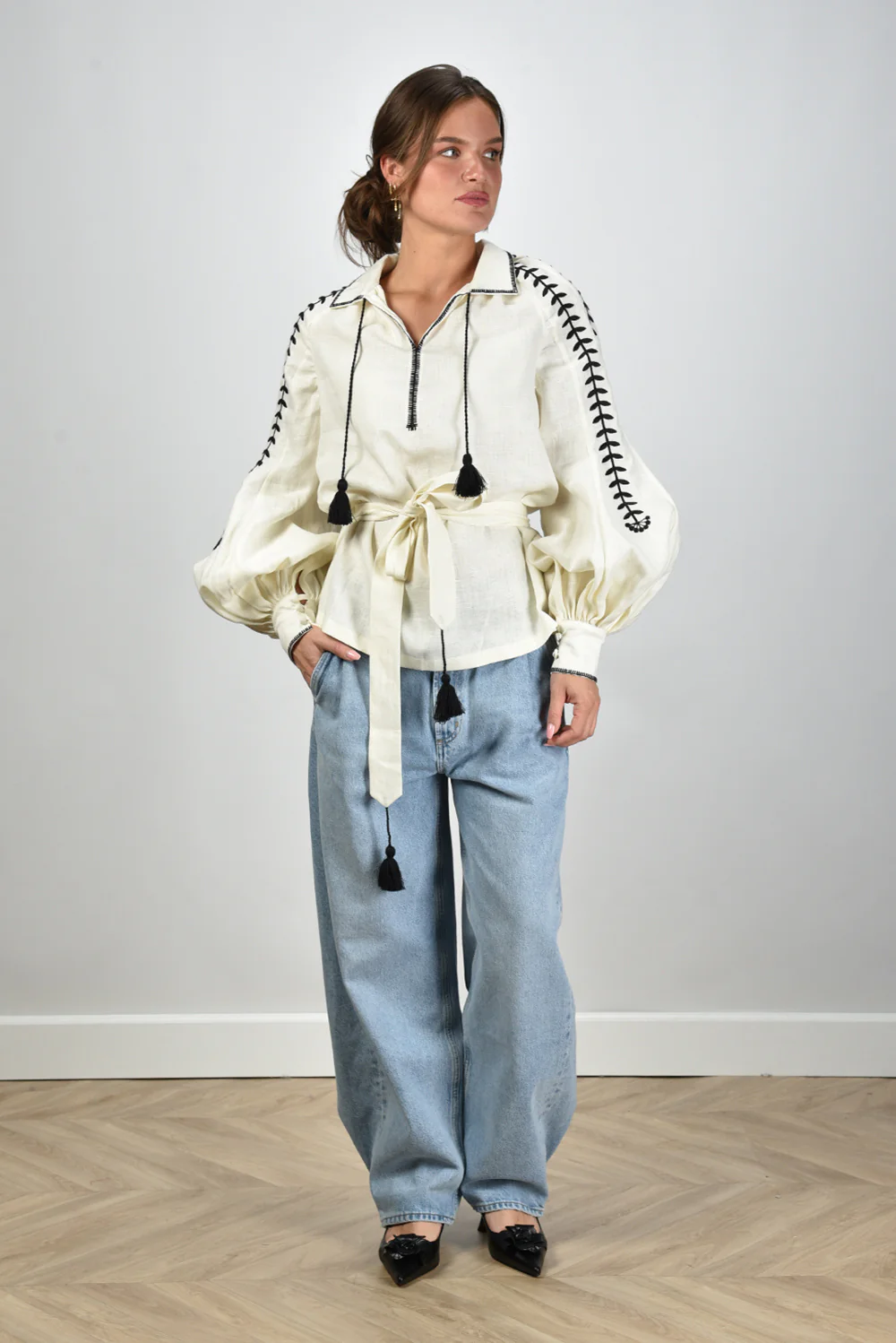 Sage & Ivy blouse Gudrun beige/black