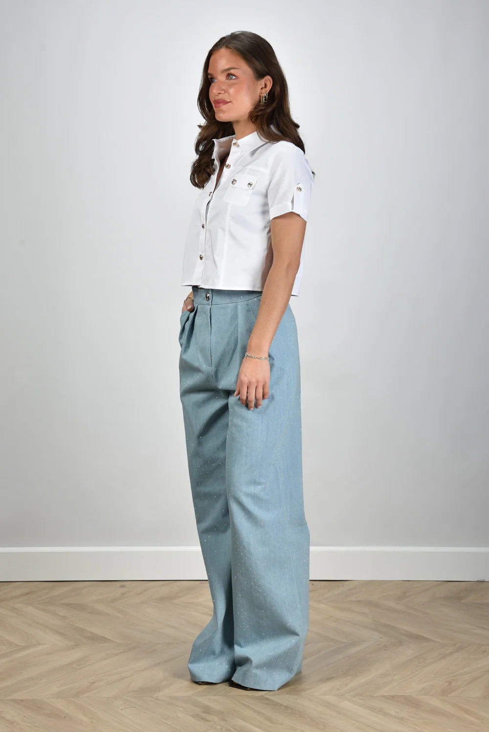 Zie hier de Sage & Ivy blouse Mave in wit, vervaardigd uit 100% katoen voor een ademend comfort. Dit model biedt een normale pasvorm en is ideaal voor zowel casual als formele gelegenheden. Lise draagt maat 38/M/28 bij een lengte van 1,73m. Artikelnummer: MAVE.