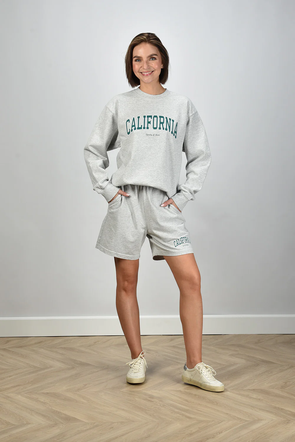 De trui California van Sporty & Rich heeft een ontspannen vorm die goed aansluit bij een casual stijl. Het heather gray katoen voelt stevig en zacht tegelijk. Voorop staat een groene California print die duidelijk aanwezig is zonder overheersend te zijn. De hals is rond en sluit prettig aan, terwijl de pasvorm losjes valt met iets langere mouwen. Deze trui valt op maat, dus je kunt gewoon je eigen maat kiezen. Mooi om te dragen met een jeans of met de Wandler crossbody Penelope Slouch voor een nonchalante combinatie die verzorgd oogt.