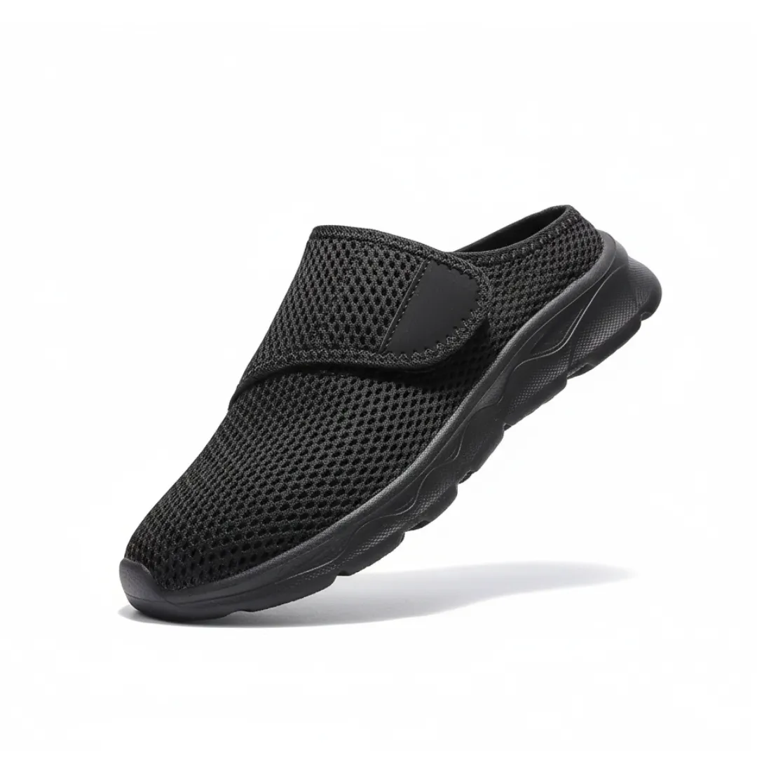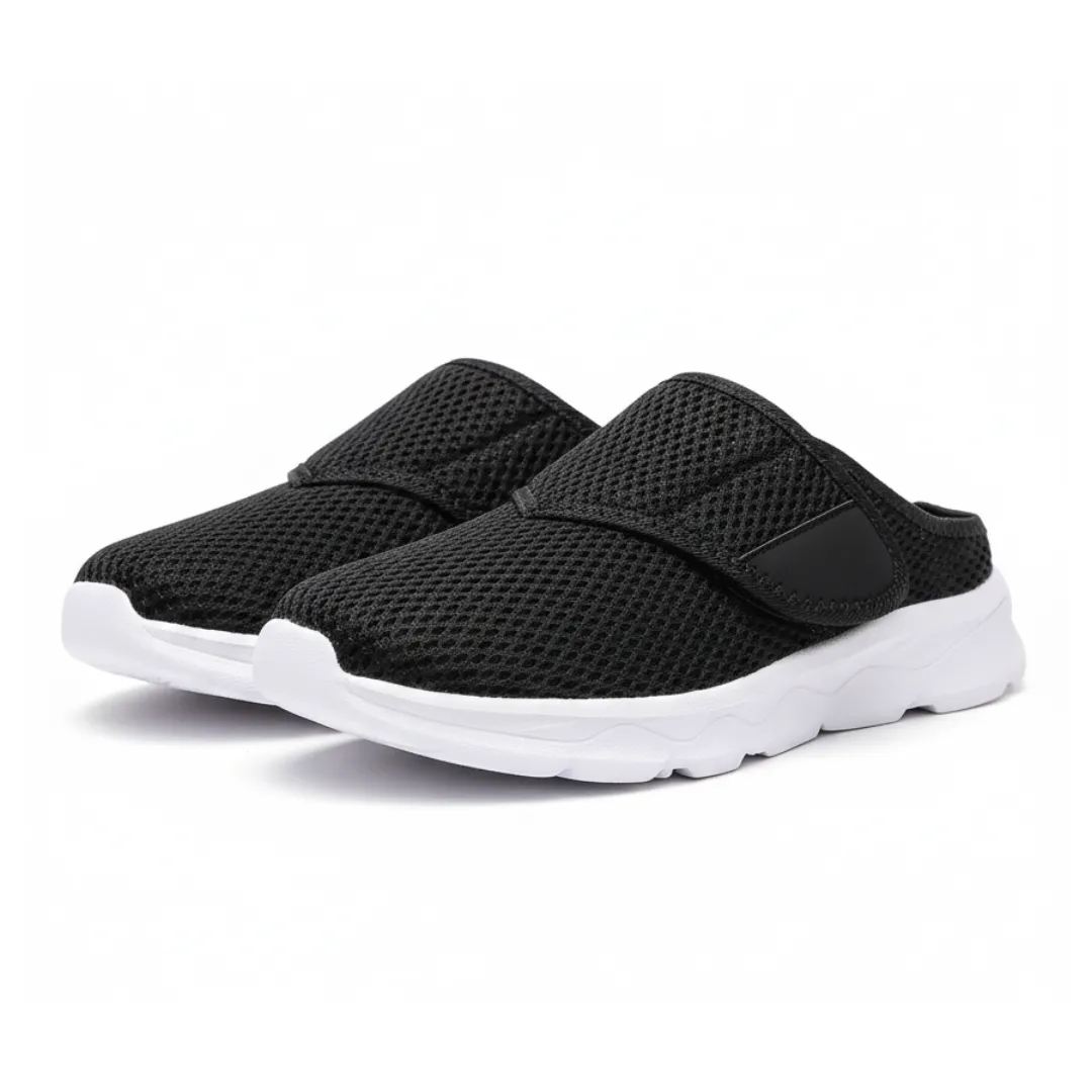 De verstelbare klittenbandsluiting biedt ruimte aan gevoelige of gezwollen voeten en zorgt voor een persoonlijke pasvorm zonder drukpunten. Ideaal voor vrouwen met diabetes of gevoelige voeten die comfort en stabiliteit zoeken bij dagelijks gebruik in huis.
