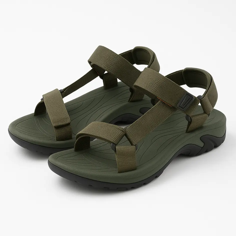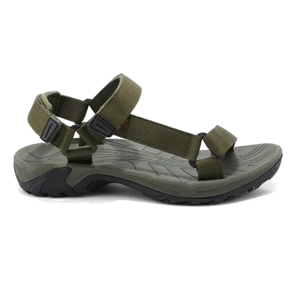Deze herensandaal is ontworpen voor comfort en praktisch gebruik. De verstelbare klittenbandsluiting zorgt voor een stevige pasvorm rond hiel en wreef. Het lichte PU-bovenwerk draagt soepel en is makkelijk te reinigen. De open constructie houdt de voet luchtig tijdens warme dagen.