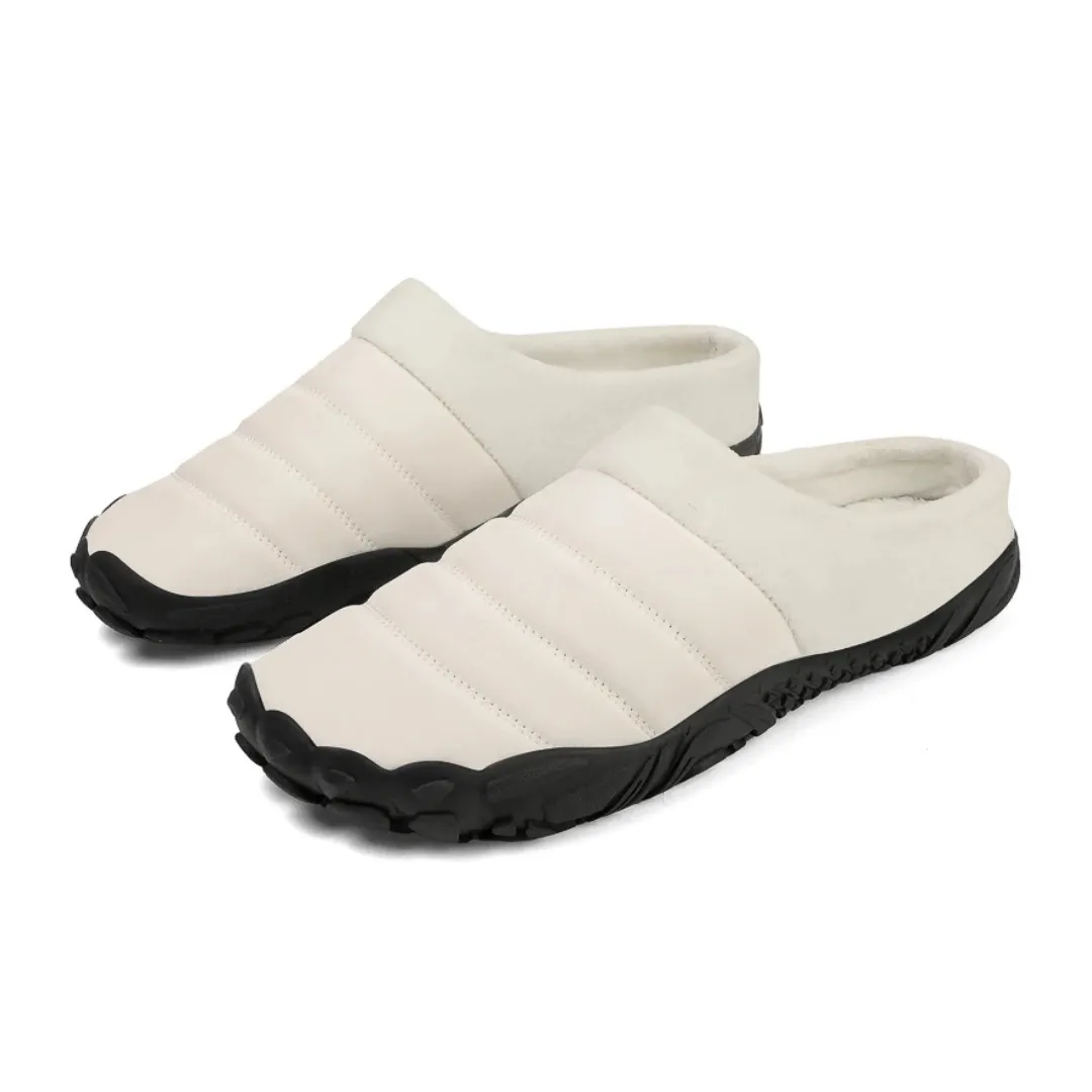 Stap in warme zachtheid met de Toby Barefoot Pantoffels. De pluche voering omsluit je voeten comfortabel en houdt ze behaaglijk warm op koude dagen. Het barefoot ontwerp heeft een dunne platte zool zonder verhoging en geen steunzool, zodat je voeten natuurlijk kunnen afwikkelen en je een direct grondgevoel ervaart.