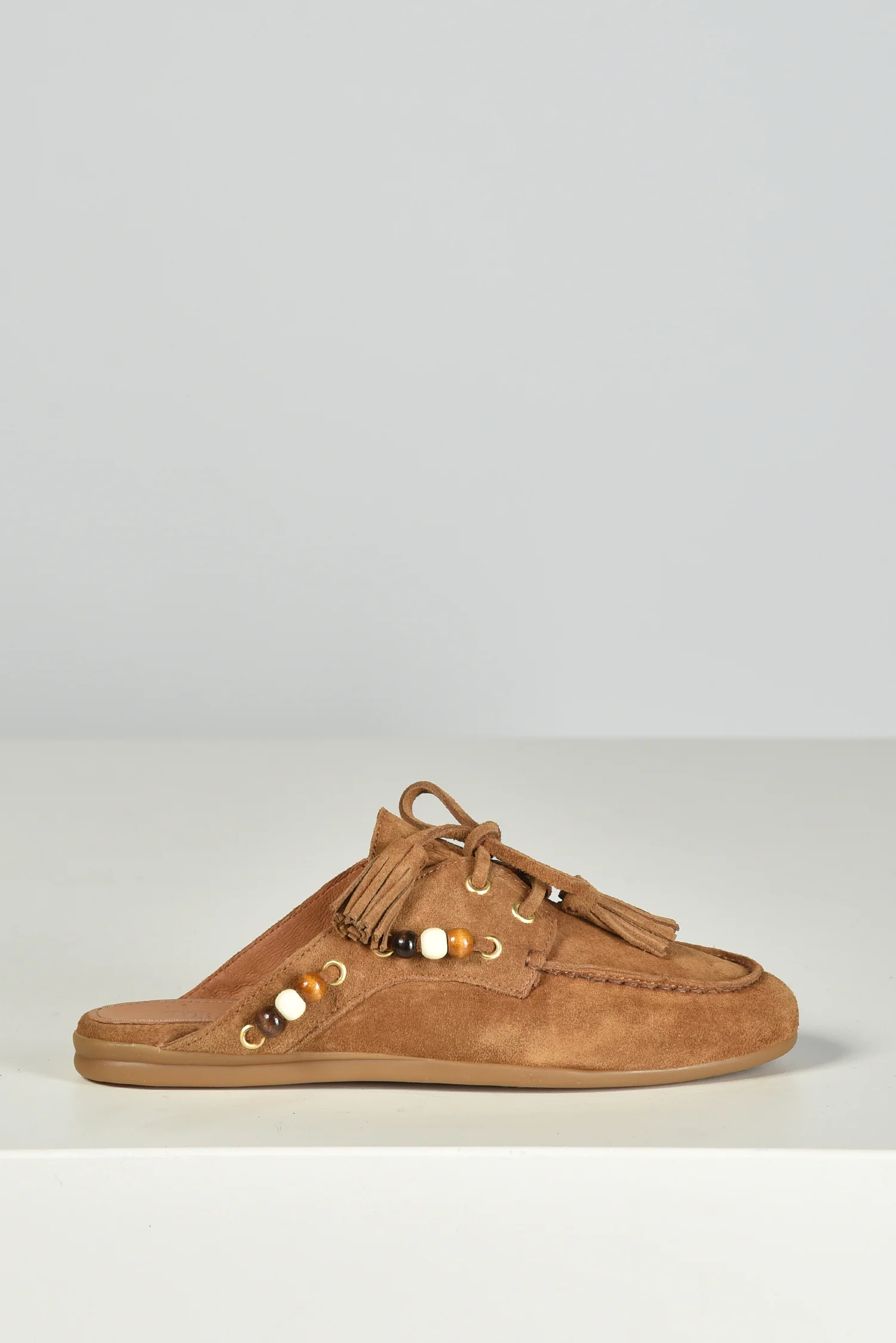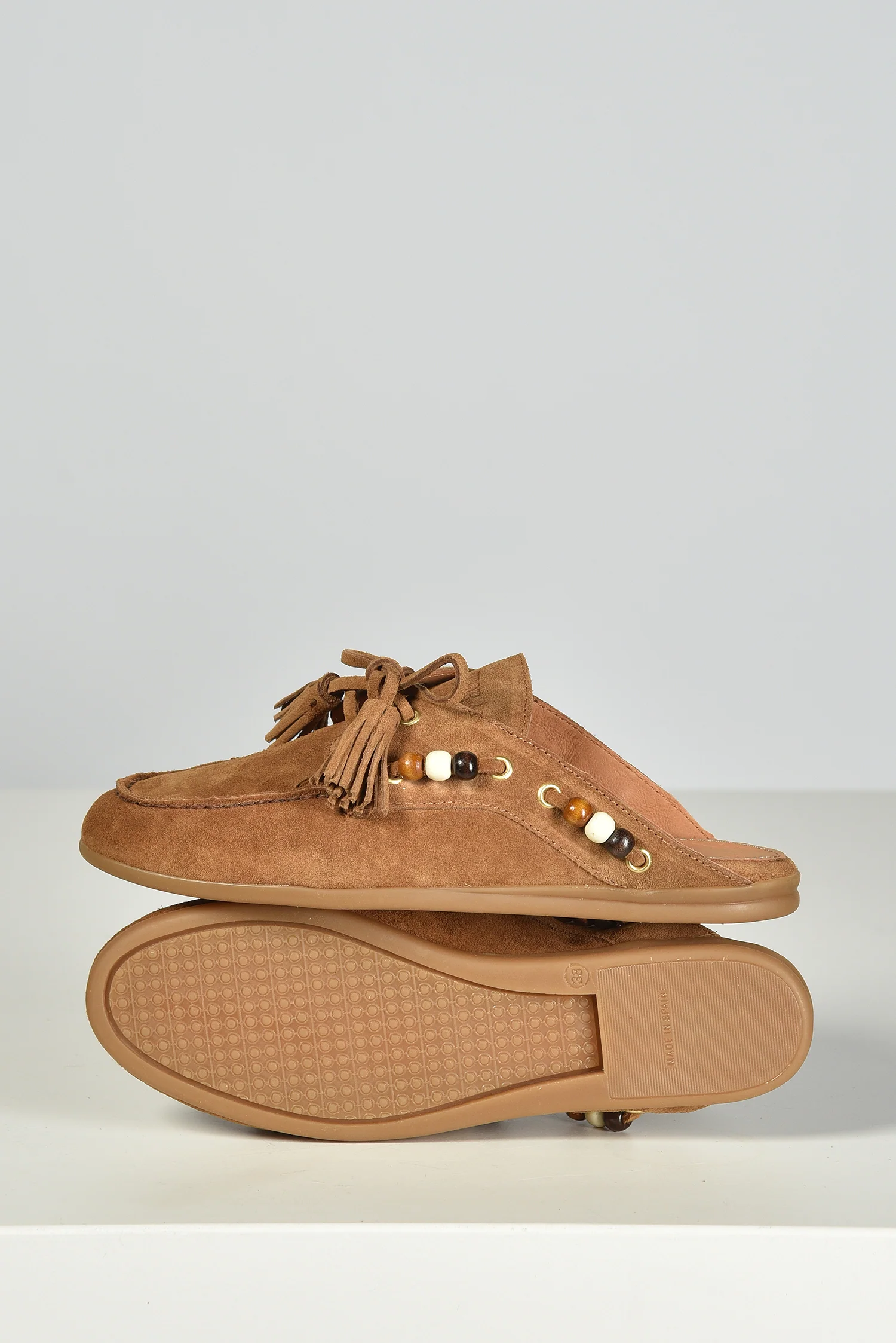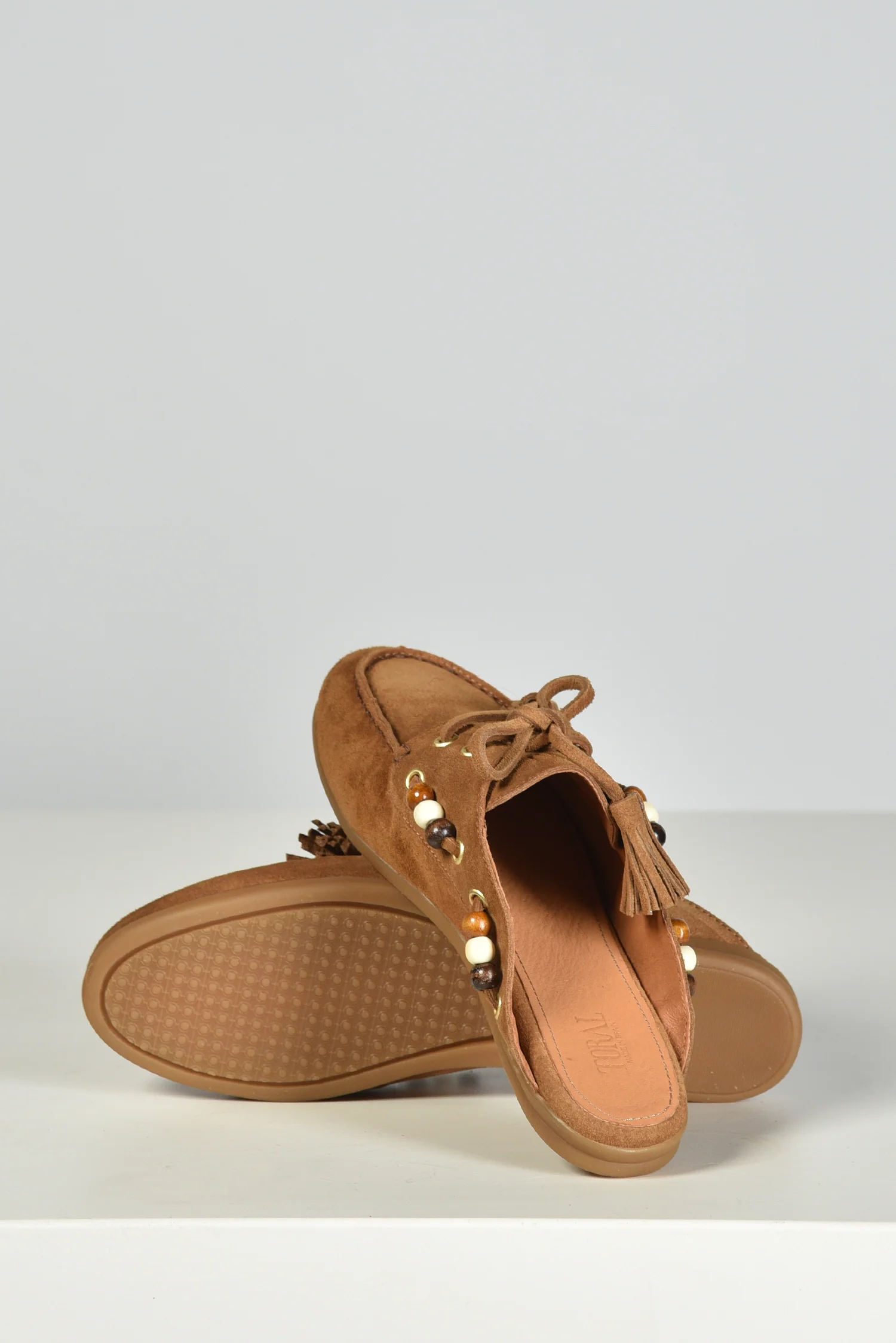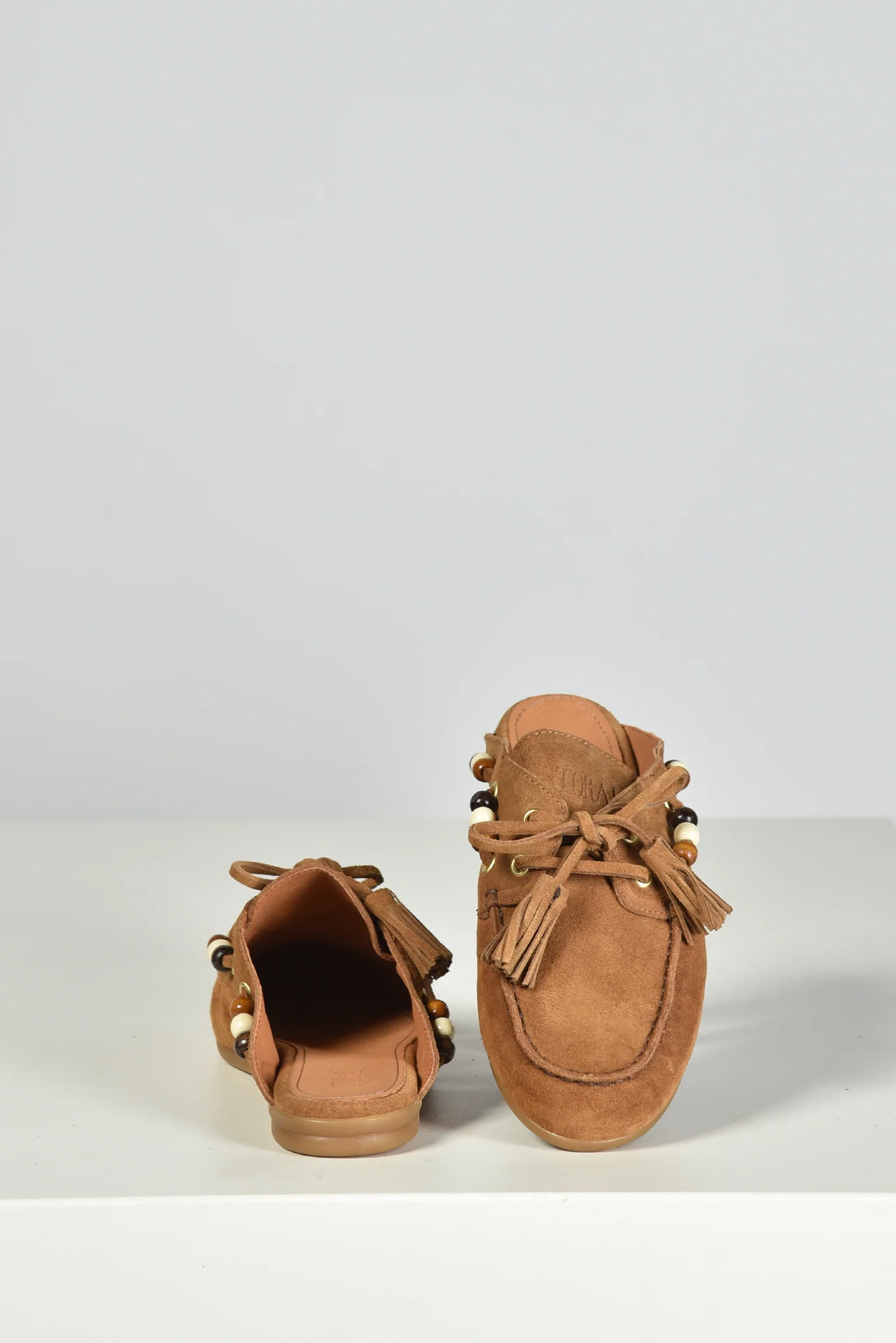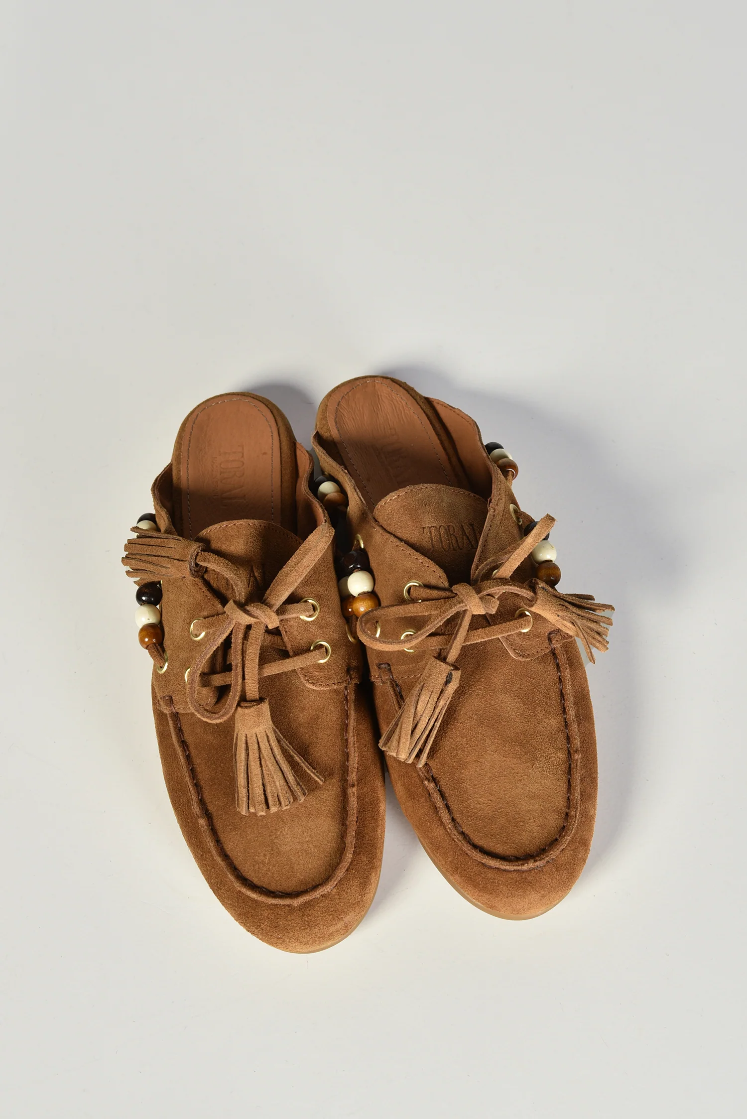 De loafers TL-KILLIAN cognac van Toral trekken meteen de aandacht door hun open hiel en kleurrijke details. De instapvorm maakt ze praktisch, terwijl het soepele leer zich prettig vormt naar de voet. Langs de zijkant zijn kralen in warme tinten geregen door kleine gouden oogjes, wat een subtiele speelsheid toevoegt. Aan de voorkant geven een strikje en kwastjes de loafer extra karakter. De cognackleur past goed bij lichte en donkere tinten en maakt dit paar verrassend veelzijdig. Combineer ze bijvoorbeeld met de Toral loafers TL-KILLIAN WINTER nero voor een stijlvolle afwisseling per seizoen. Vallen normaal op maat.
