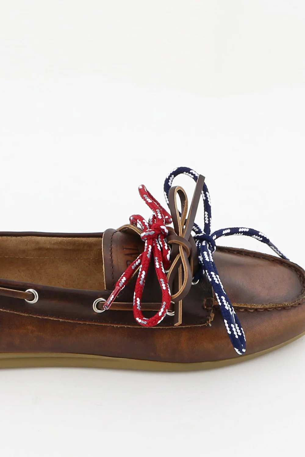 Dit zijn de loafers met veters karneol bruin van Toral, met een donkerbruine leerlook die soepel oogt en een subtiel kleurverloop laat zien. De veters in rood, blauw en bruin geven het bovenwerk een speels accent en vallen mooi op tegen het CUIR karneol. Langs de zijkant zitten kleine zilverkleurige oogjes waar de veter rond de hiel doorloopt, wat de vorm van de schoen mooi volgt. Het leer voelt stevig aan en vormt geleidelijk mee bij het dragen. Deze loafers vallen normaal op maat en sluiten daardoor prettig aan zonder verrassingen. Toral staat bekend om stijlvolle ontwerpen met duidelijke lijnen en dat zie je hier goed terug.