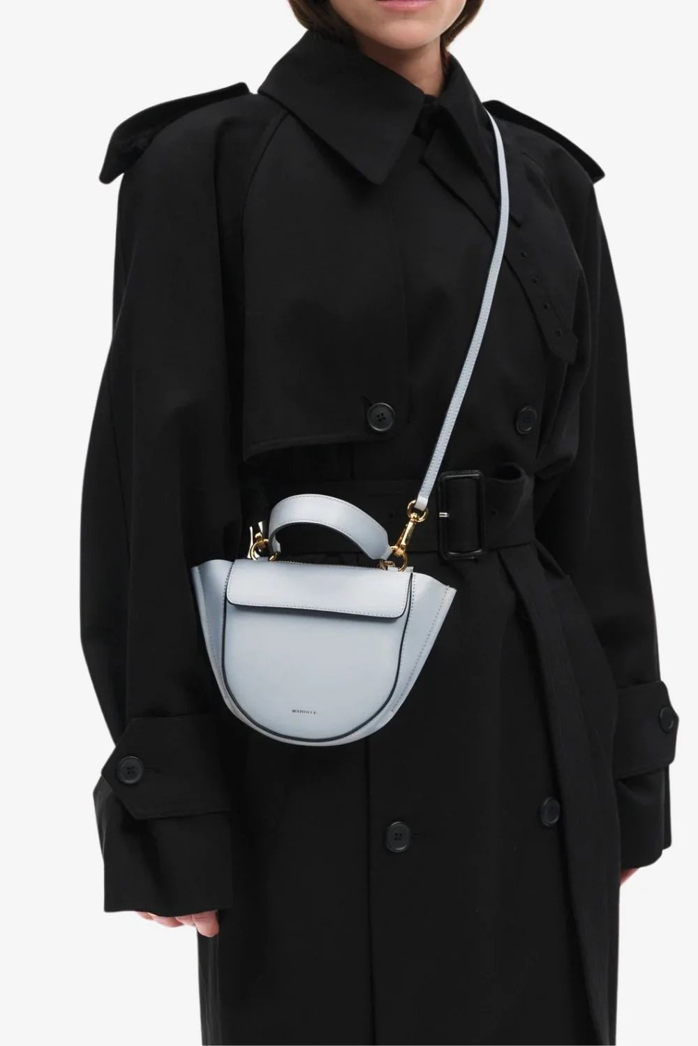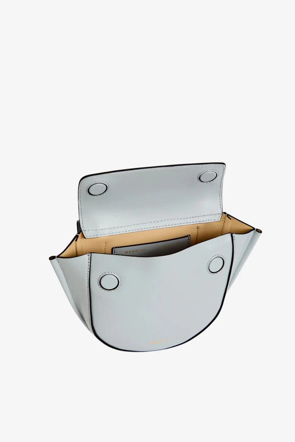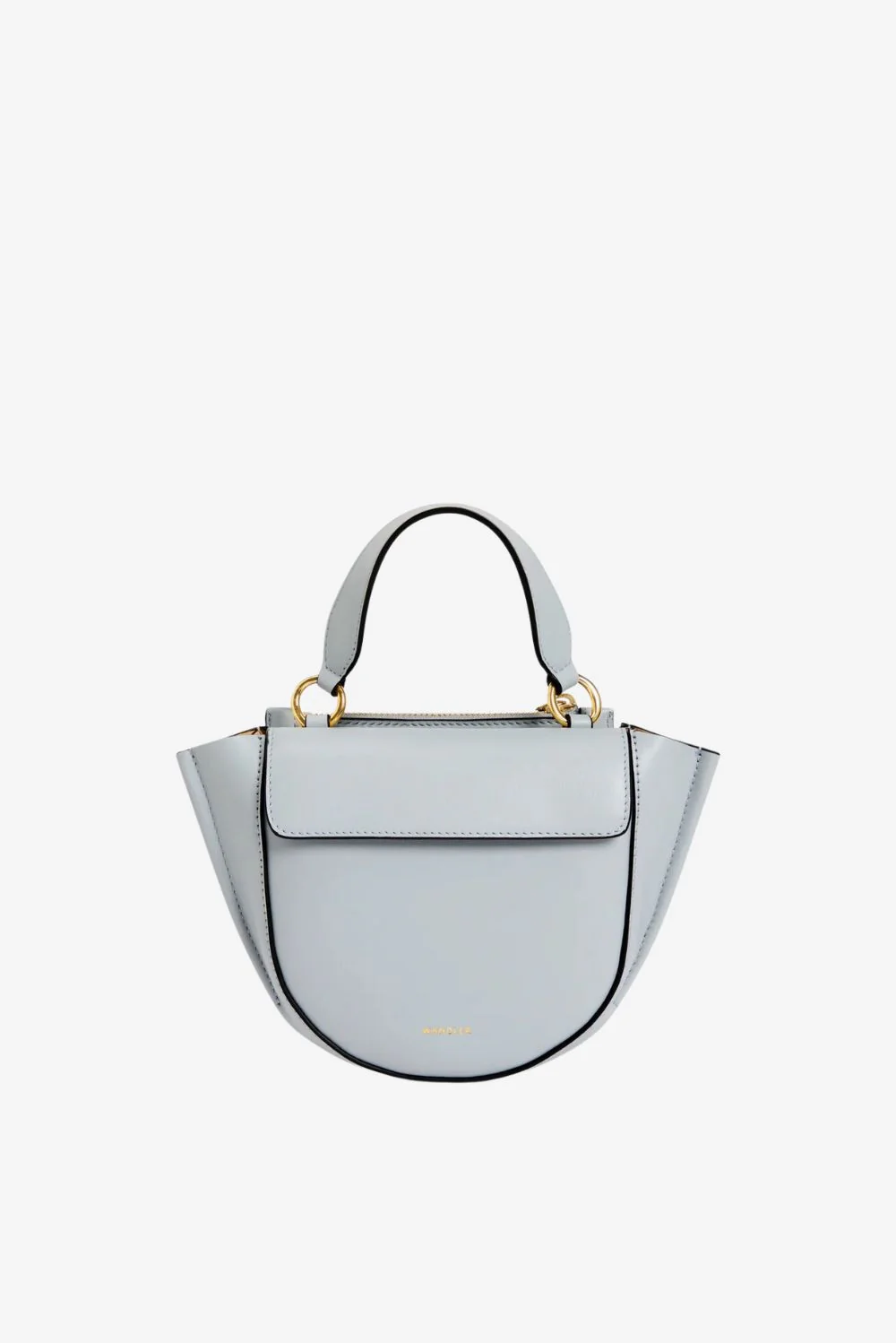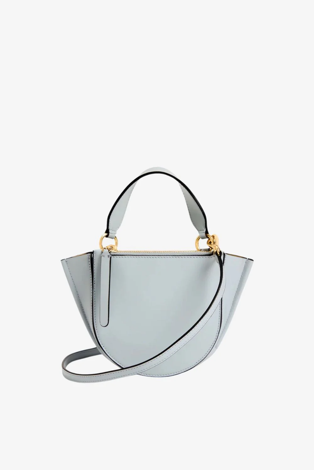 De crossbody Hortensia Piccola steel van Wandler is een compacte tas met karakter. Het halfronde silhouet met strakke klep oogt helder en modern. De goudkleurige ringdetails aan de handgreep geven een subtiele glans en versterken de sculpturale vorm. De zijkanten lopen iets schuin uit, wat de tas een speelse lijn geeft zonder haar heldere stijl te verliezen. Vervaardigd uit Italiaans kalfsleer dat stevig aanvoelt en soepel blijft in gebruik. Elke tas wordt met de hand gemaakt in Italië, waar Wandler haar bekende vakmanschap tot in detail doorvoert. Dankzij het formaat past de Hortensia Piccola eenvoudig overdag of ’s avonds, en blijft ze praktisch door de verstelbare schouderband. Draag haar naast de Wandler crossbody Hortensia Piccola in black voor een stijlvolle variatie binnen dezelfde iconische lijn.