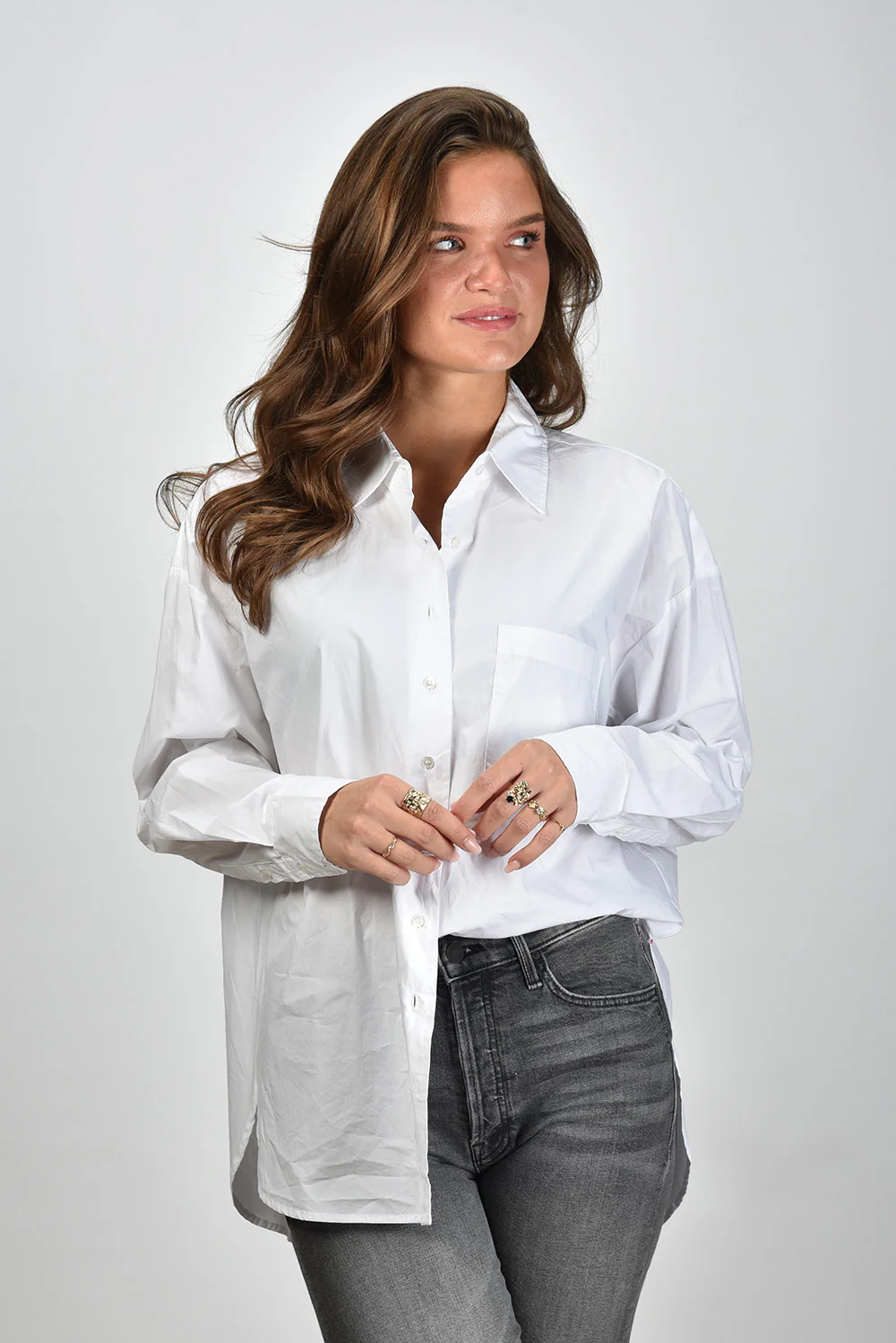 Zie hier de Xirena blouse Sydney in wit, een elegante keuze voor elke garderobe. Gemaakt van 100% katoen biedt deze blouse een normale pasvorm en ultiem comfort. Lise draagt maat 38/M/28 bij een lengte van 1,73m. Koud wassen aanbevolen. Artikelnummer: X5AVC006-WHT-White.