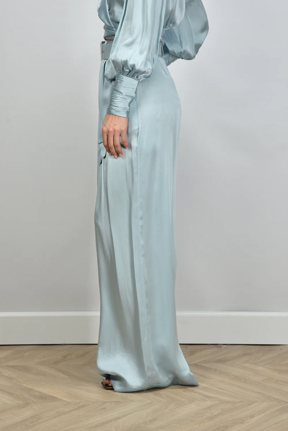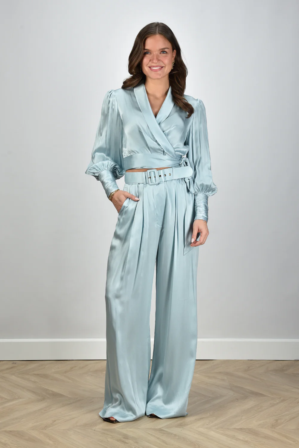 Zie hier de elegante Zimmermann broek Silk Tuck in Light Blue, vervaardigd uit 100% zijde voor een luxueuze uitstraling. Dit model biedt een normale pasvorm en is ideaal voor zowel formele als informele gelegenheden. Lise draagt maat M bij een lengte van 1,73m. Artikelnummer: 2151PS25R-LBL-Light Blue.