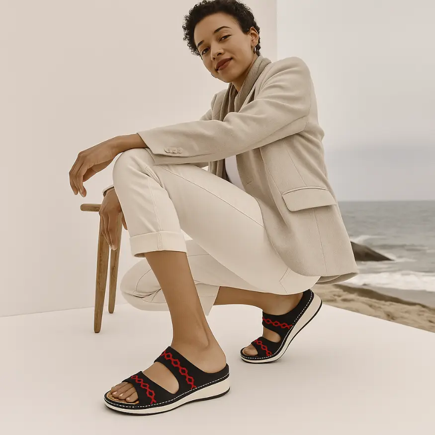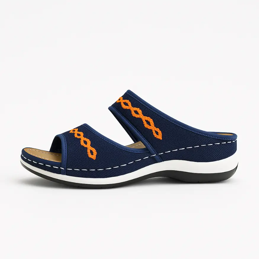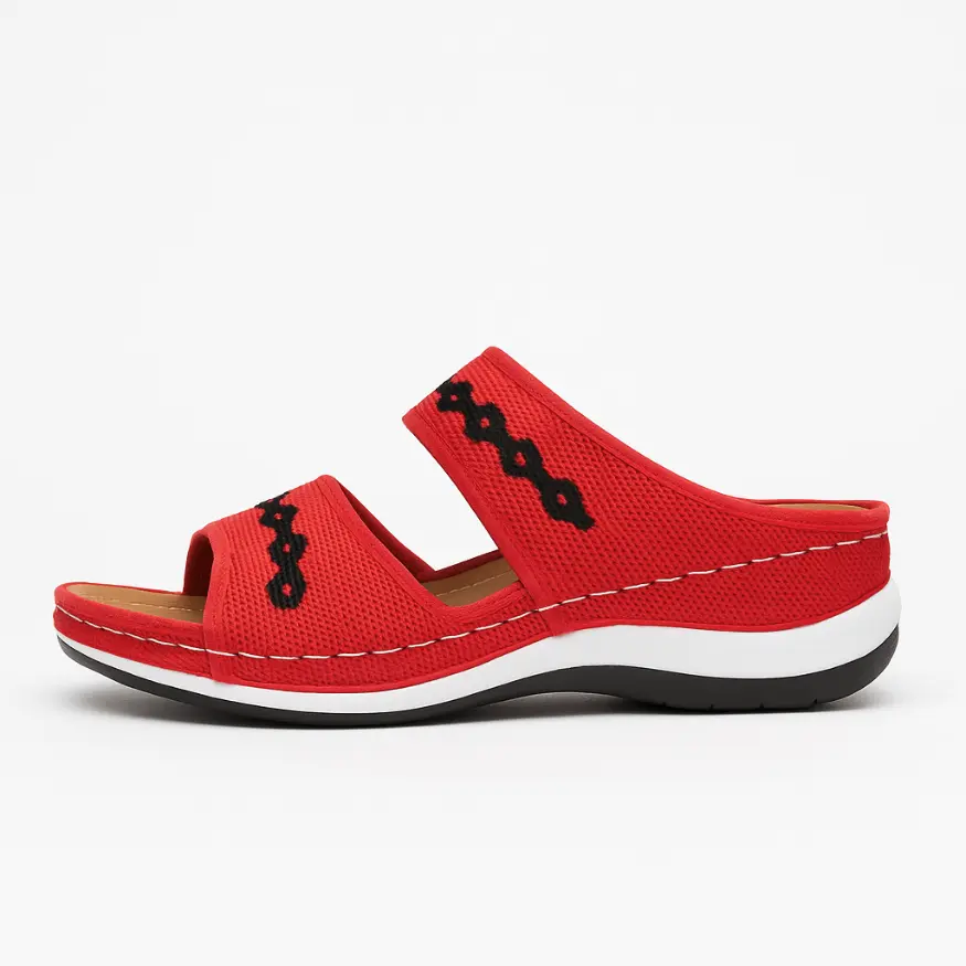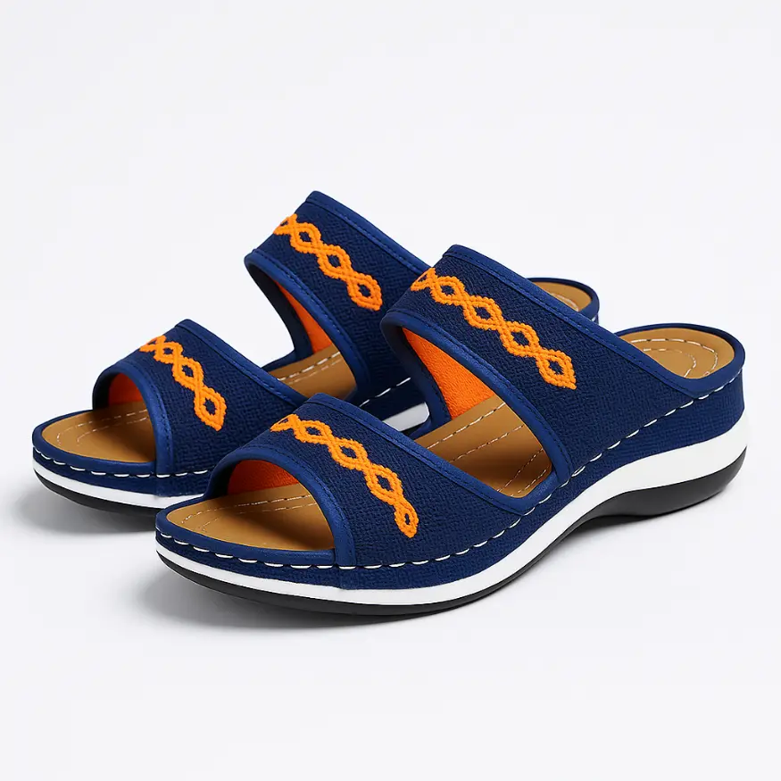 Deze comfortabele sandalen zijn ontworpen met een dubbellaags bandontwerp en een zachte voering die de voet op natuurlijke wijze ondersteunt zonder drukpunten. De lichtgewichte zool met subtiele verhoging en dempende werking biedt stabiliteit en verlichting bij langdurig staan of lopen waardoor ze ideaal zijn als orthopedische keuze voor dagelijks gebruik.